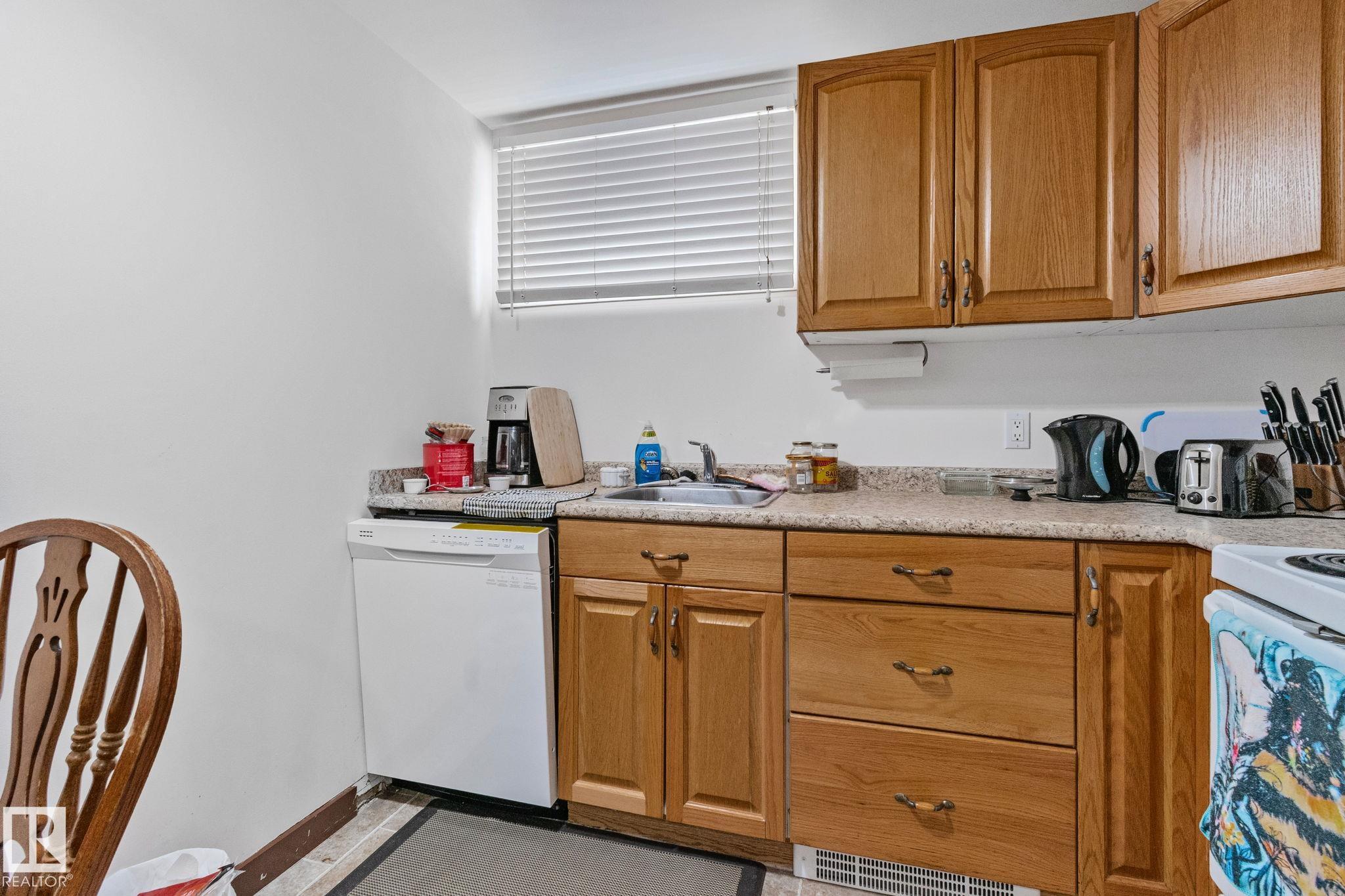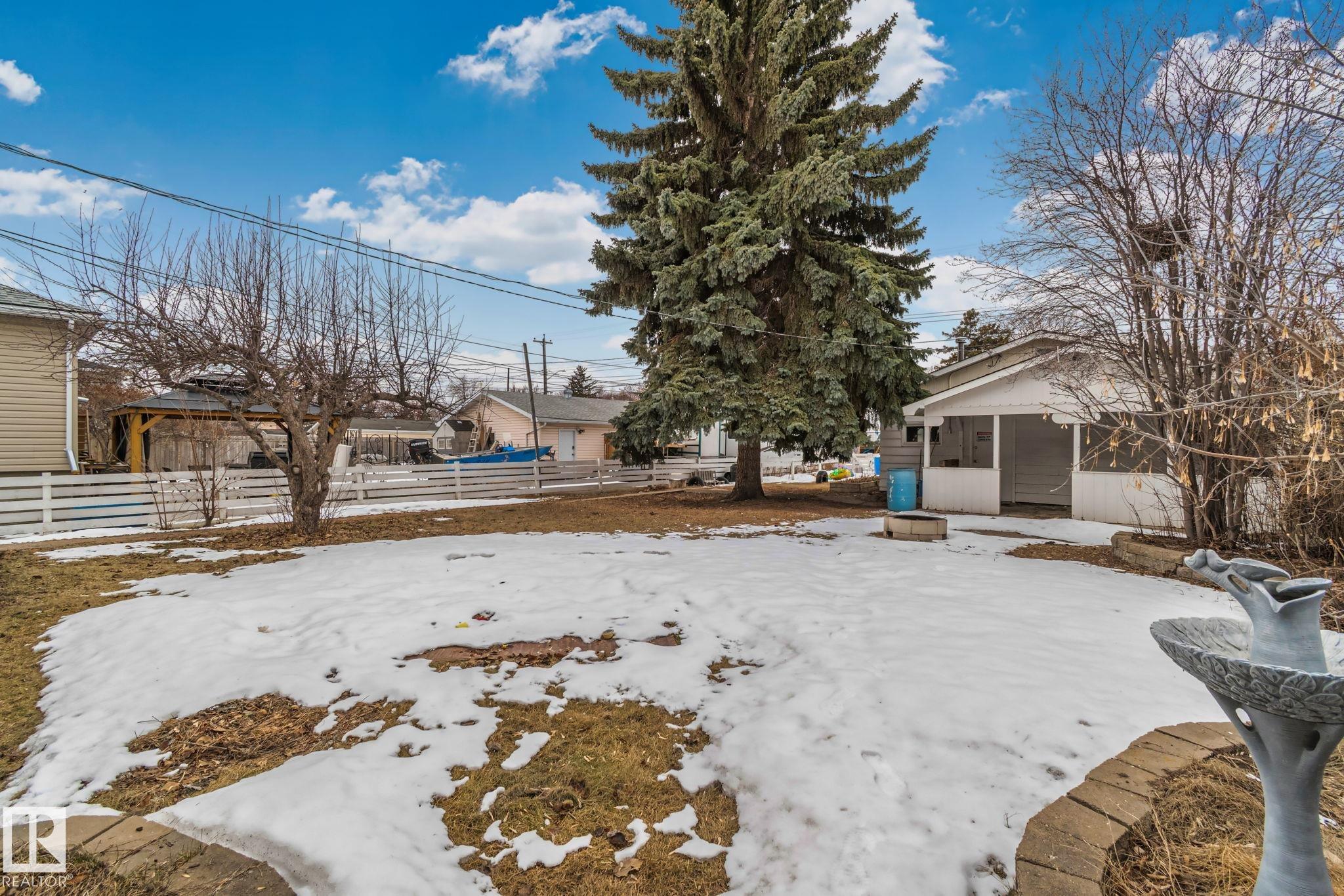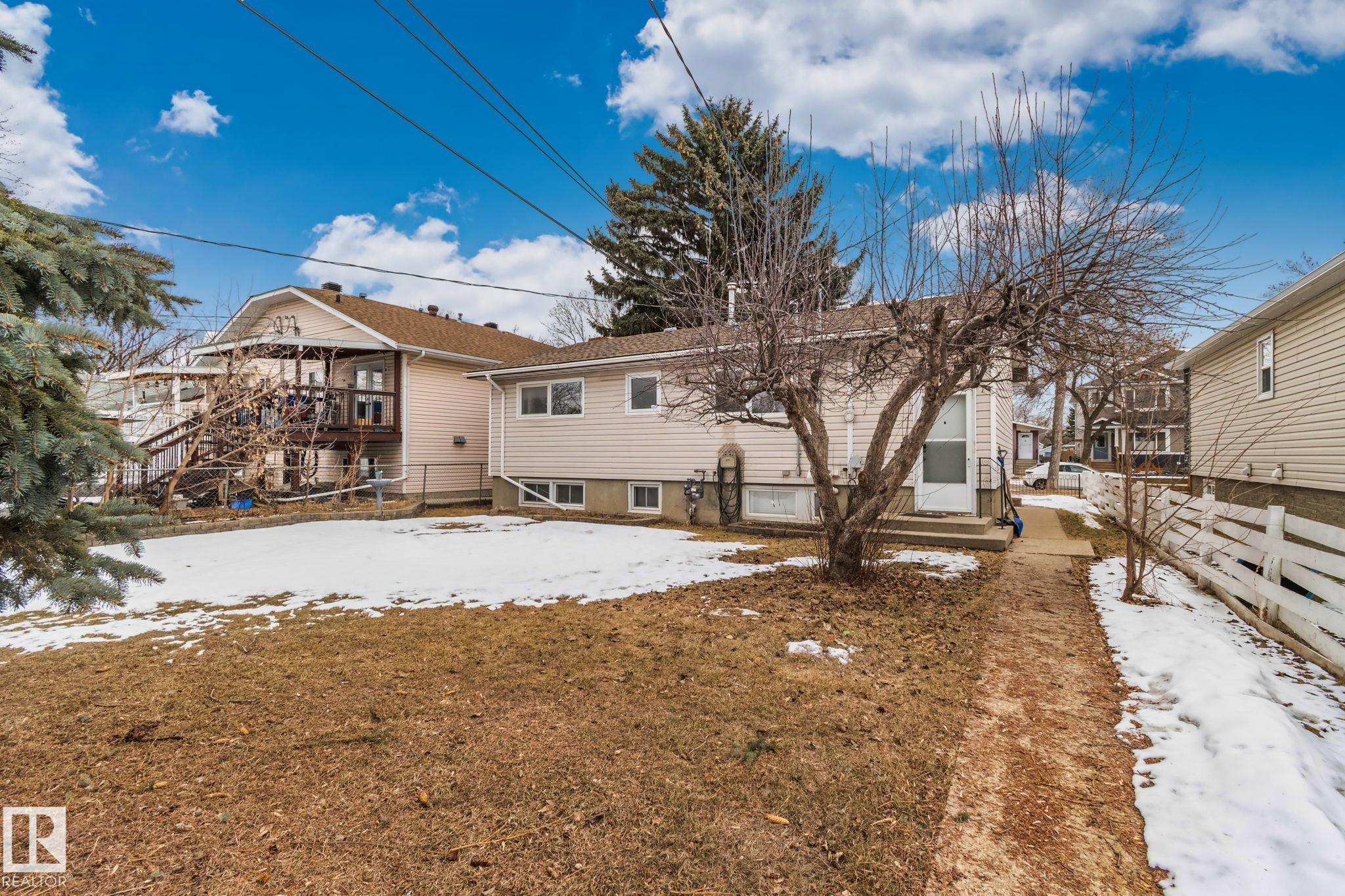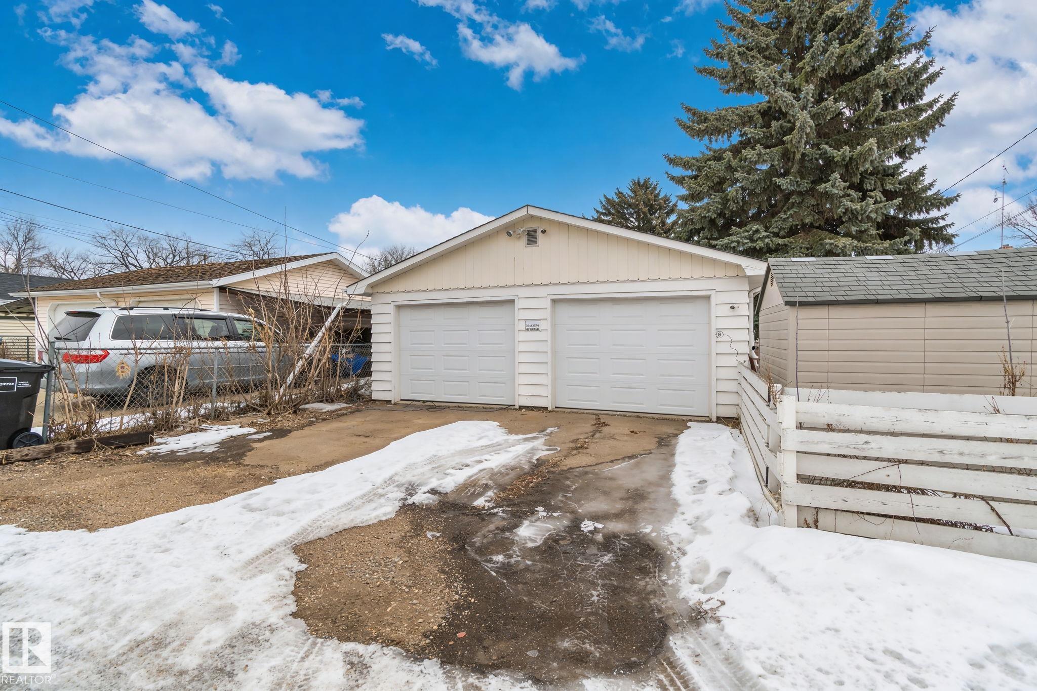 Perfect for Investors and Developers. Lot size: 7490.82 Sq Ft lot is Zoned RF3 (small scale infill development). Close to NAIT, Concordia University, bus routes, bike lanes. 3 bedroom bungalow, 2 bedroom basement suite w/separate entry. Seller discloses there is no secondary suite permit, but it is permitted to rent rooms individually. Basement was renovated in 2024. Natural light, East facing. Original hardwood floors. Kitchen has large window overlooking the backyard. Kitchens were renovated in 2017. Double detached garage, w/new concrete floors, 40 A 220 V, gas line for heat, verandah. Fully fenced (wrought iron in front), mature trees. Good mix of homes and infill development in area. This house is suitable as a primary residence, as revenue property, or for infill development.