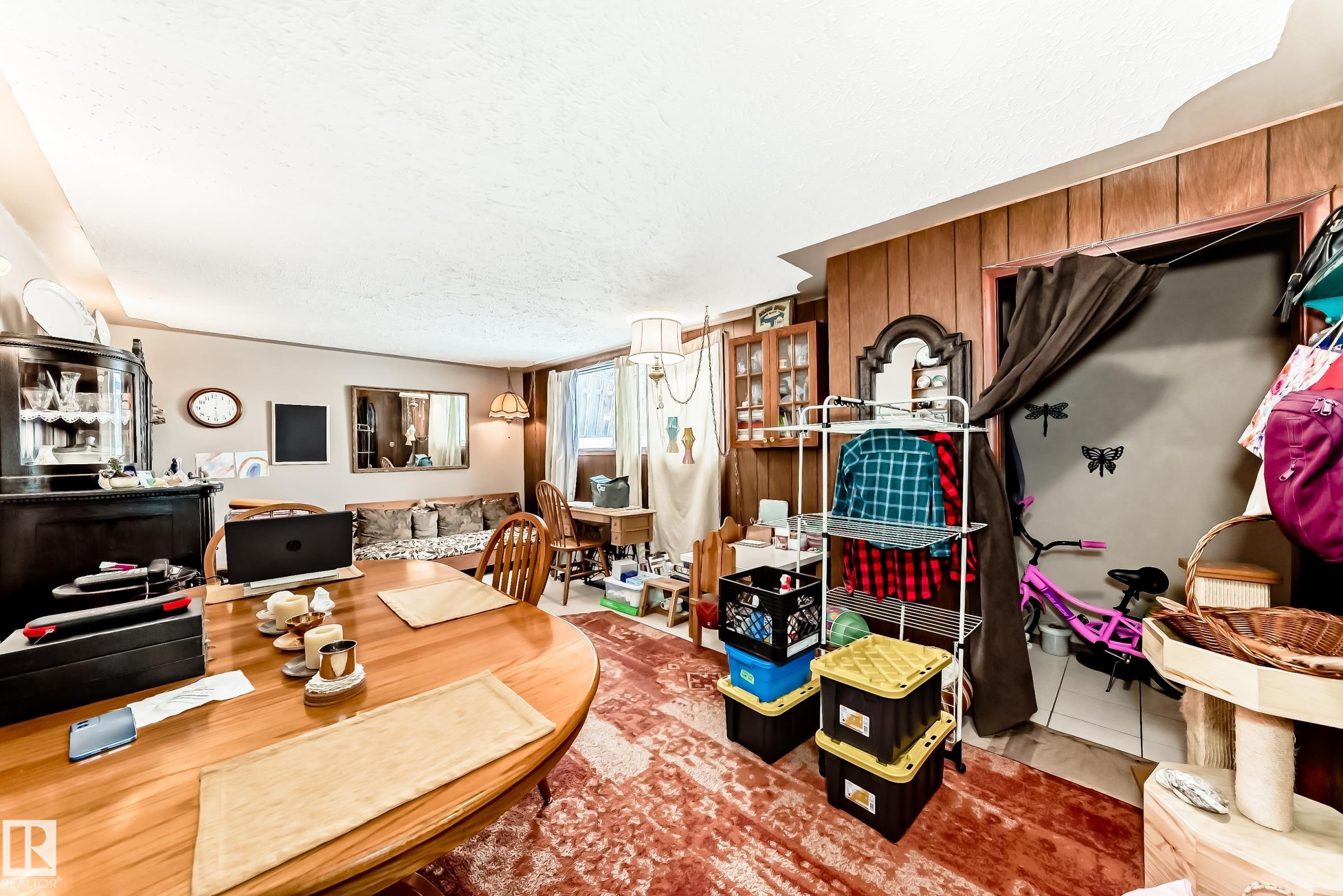 This a rare investment opportunity is here to own this 1,185 sq ft Raised Bungalow with a total 4 bedroom, 2 bathroom, 1963 built home located on a quiet street in the Eastwood neighborhood. The main floor has 2 large bedrooms, full bathroom, large living room, dining room, separate laundry, and spacious kitchen. This main floor and basement of the home has lots of natural light from the large windows throughout, hardwood flooring, new carpet, and more. The basement has a fully functional bright kitchen, modern living room, 2 bedrooms, 4pc bathroom plus laundry and storage area. This home has a Separate front and rear entrance to the basement of the home for private access. The property has a large private fenced backyard with double detached garage and shed. The property has a good location close to schools, transportation, shopping, and numerous amenities close by. It is just a short drive to the Yellowhead Trail and the Anthony Henday.