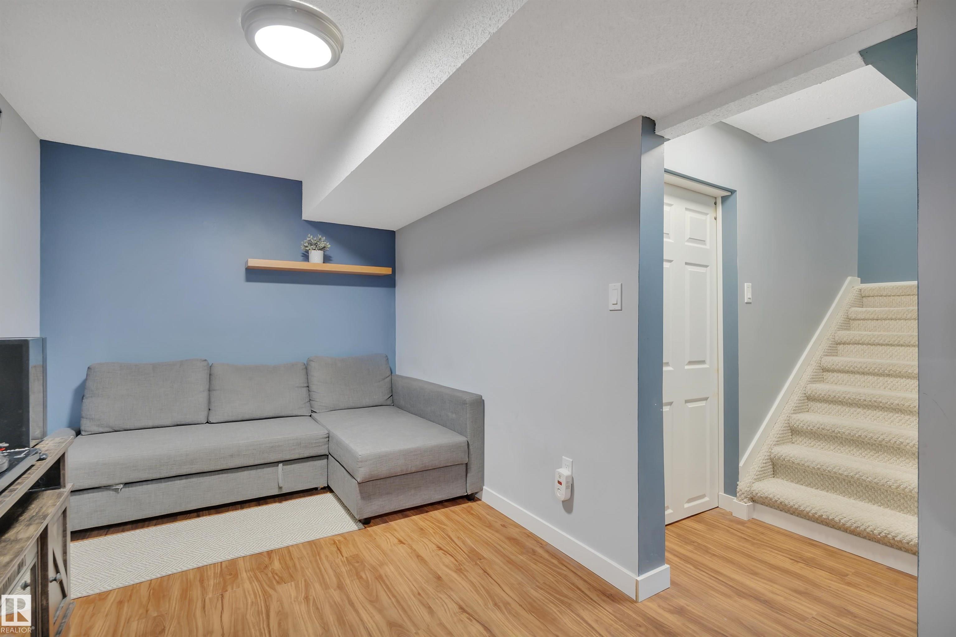 Welcome to this beautifully maintained end-unit townhouse that perfectly blends comfort and style! Featuring newer roof, siding, windows, and vinyl fencing, this home is move-in ready and full of charm. The main floor offers a sunken living room with a brick mantle, complemented by warm oak flooring throughout. Step outside to a private, fully fenced yard complete with a new concrete patio, ideal for relaxing or entertaining. The spacious kitchen shines with updated white cabinetry, modern countertops, and brand-new stainless steel appliances. Upstairs, you'll find three bedrooms with rich laminate flooring and a stunning 5-piece bathroom featuring double sinks and a granite countertop. The fully finished basement adds versatile space with a cozy den or workspace, a TV room, and a large laundry/storage area. Bonus: your parking stall is right outside your door! With a convenient 2-piece bath on the main level, this home truly offers comfort, function, and style in one delightful package.