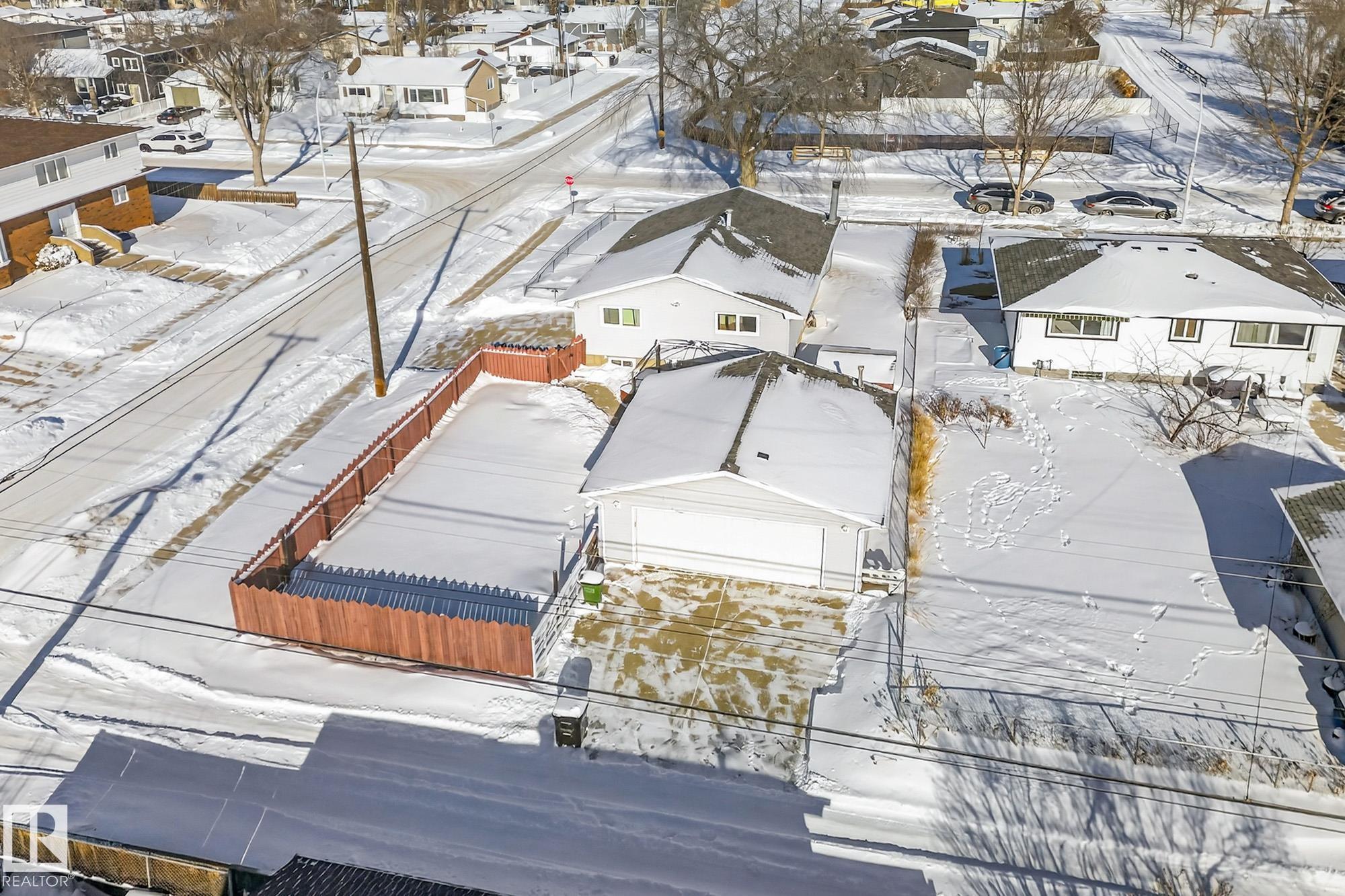 In the charming community of Beverly Heights, this bungalow is located on a quiet, tree-lined avenue & perfectly positioned on a prime 50x120 corner lot across from John Olinyk Park. Offering exceptional value, this is the perfect opportunity for a growing family, renovation enthusiast, or redevelopment investor. Enjoy being just minutes from local favourites like Fox Burger, Kind Ice Cream and within walking distance to the beautiful River Valley with scenic trails & stunning Edmonton skyline views. The well-maintained home offers 4 beds, 2 baths & over 1006 sqft of above-grade living space, plus a separate side entry for added convenience. The updated kitchen features stainless steel appliances, stylish countertops & a tile backsplash. The lower level provides additional living space with a wet bar and workshop. Major upgrades include vinyl windows, a new HWT & 100 amp service. Completing the property is a large double detached garage and double driveway for extra parking. A fantastic opportunity!