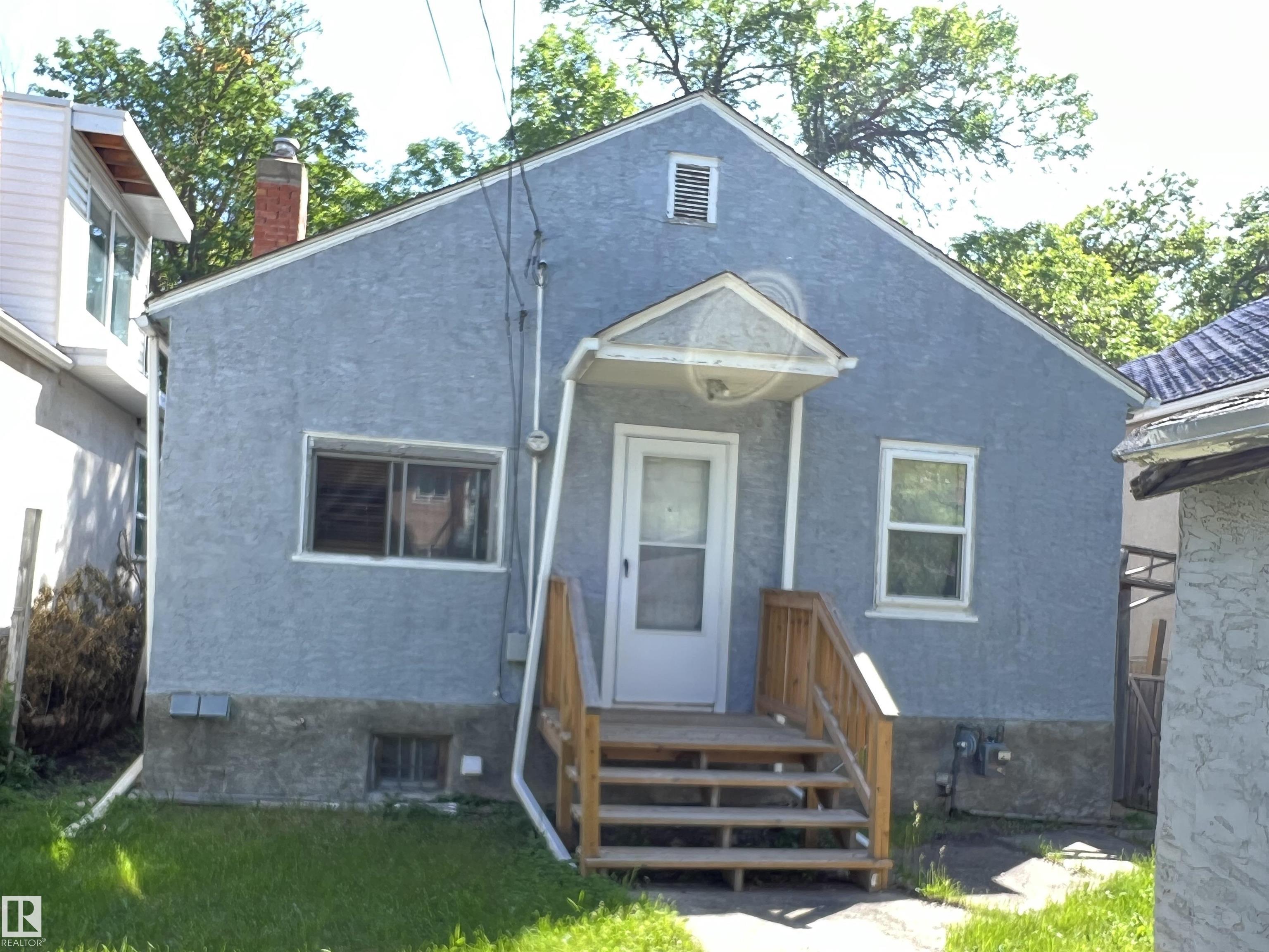 Investors & starter home buyers' alert! Build your own equity! Live in or rent it. Welcome to this lovely bungalow single detached house situated across from a park & near the river valley! Main floor greets you with bright living room and hardwood floorings throughout. kitchen offers white-color cabinets, ceramic tile floorings adjacent to eating area. 2 sizable bedrooms & a 4pc bathroom. Good-sized yard where you can relax and enjoy with back lane to a single detached garage. Easy access to public transportation, playground, school, downtown, Royal Alex Hospital, Kingsway Garden Mall & all amenities. Come check this out and make this house YOURS!