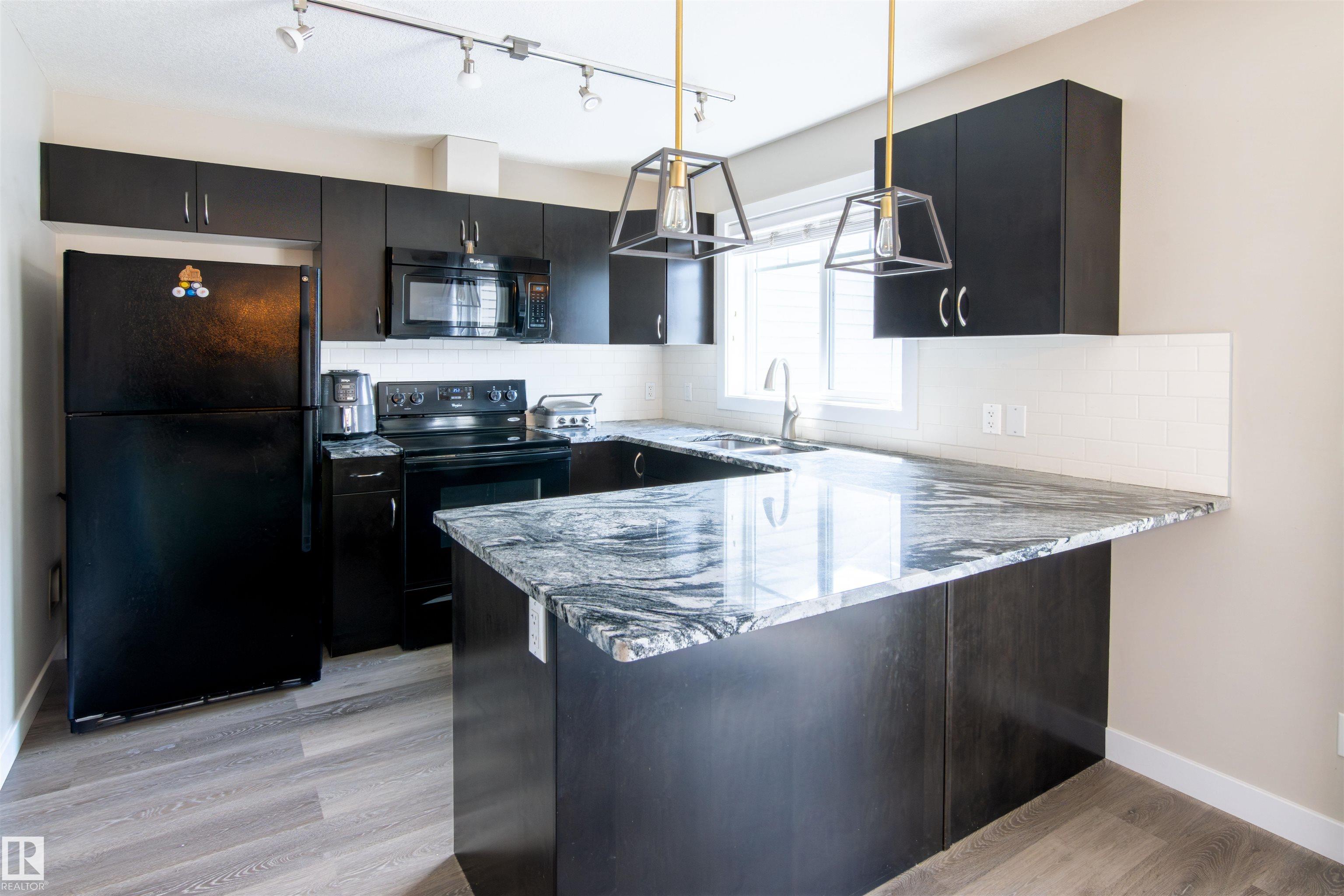 Welcome to your new home in vibrant Carlton! This stylish 3 bed, 2.5 bath townhome is perfect for first-time buyers--offering low condo fees in a well-managed, family-friendly complex & A/C. Step into an open-concept main floor with a gorgeous kitchen featuring granite counters, rich dark cabinets, a peninsula eat-up island, and designer lighting. The dining area opens to a sunny balcony--perfect for morning coffee or evening BBQs. The bright, spacious living room and convenient 2-pce bath complete the main level. Upstairs, the primary suite boasts a walk-in closet and private ensuite, plus two more generous bedrooms. The lower level offers direct access to an oversized garage, a laundry room, and tons of storage. Close to top-rated schools, parks, and all major shopping--this is the one you've been waiting for. Move in and love where you live!