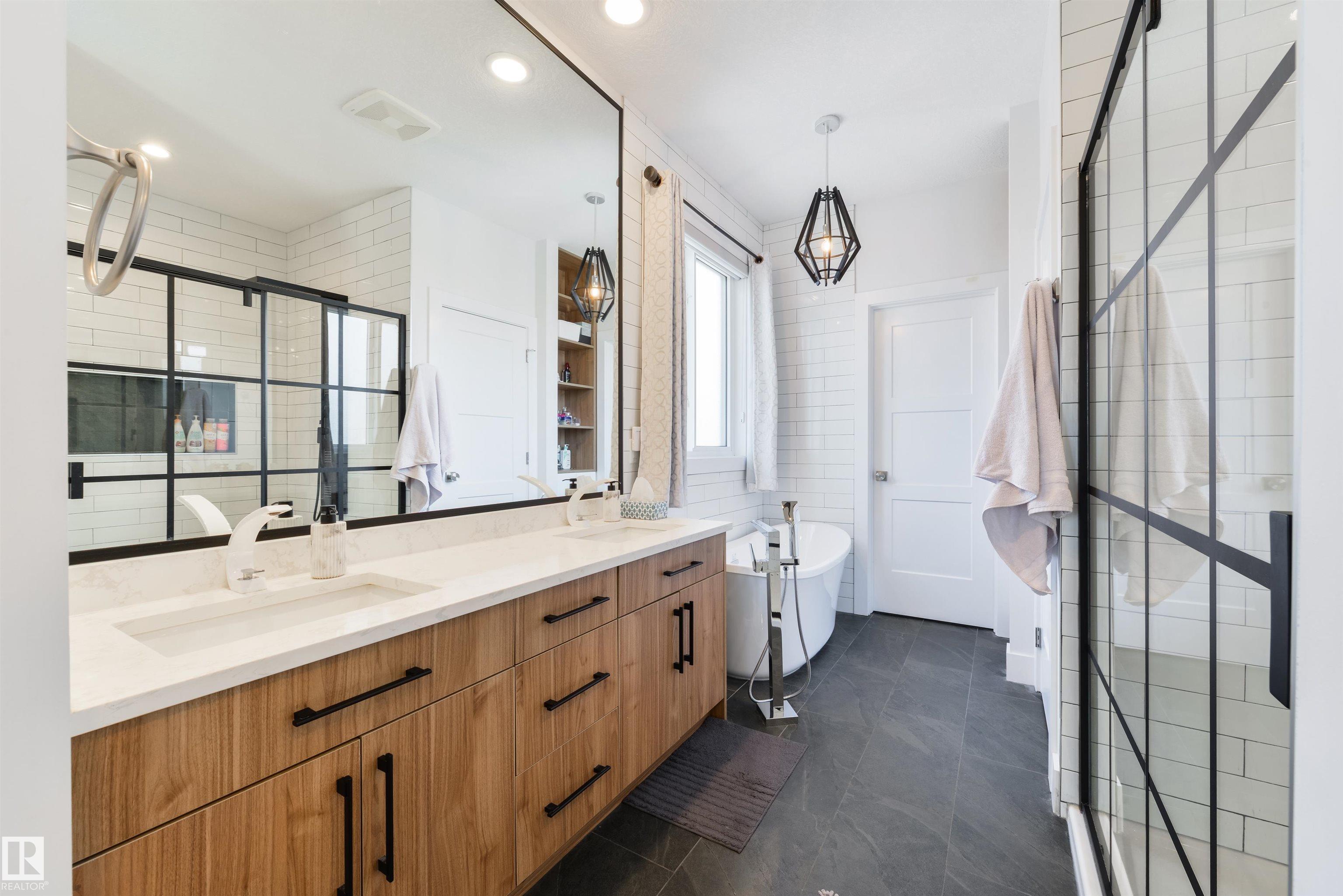 One of a kind custom bespoke home built to elevate everyday family life. Over 3600 sq ft of living space this stunning home features high end finishes and an expertly designed floor plan. Custom details and surplus of windows bringing an tons of sunlight throughout. The open concept main floor boasts an upscale kitchen with custom cabinetry, large island, quartz countertops & spice kitchen. The bright and spacious living room features a stunning fireplace and ceiling feature. A large mudroom, full bath, bedroom/office and wet bar area complete the main floor. Upstairs is home to an expansive master bedroom with walk-in closet and spa-like 5 pc ensuite plus soaker tub. There are two additional bedrooms with one room having it's own ensuite. A third 5 pc bath, laundry room with built in cabinets and large bonus room with fireplace completes the second floor. Legal 2 bedroom basement suite creates another luxury living space with a creative layout. Fully landscaped yard, composite deck & o/s double garage.