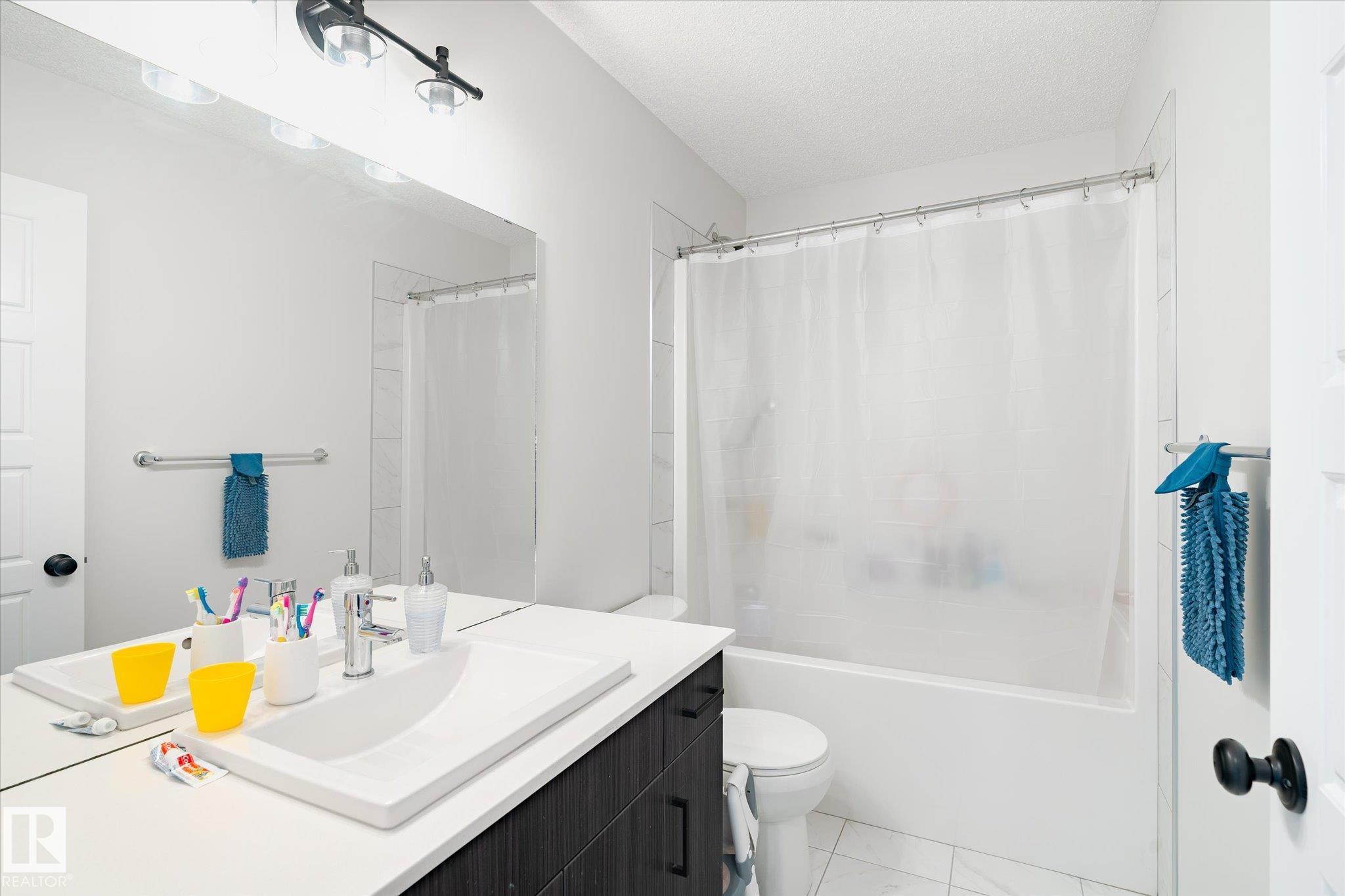 Welcome to this beautifully upgraded home in Crystallina Nera West! With 1693 sqft of modern living space, this home features an open-concept main floor with stylish vinyl plank flooring. As you enter, you're greeted by a nicely sized living room with custom shelving and an electric fireplace, creating a cozy and inviting atmosphere. The spacious kitchen boasts a large quartz island and quartz countertops throughout, complemented by an upgraded farm sink. The main floor also offers a chic 2-piece bathroom and a convenient laundry area. Upstairs, you'll find a large family room and three bedrooms, including a master suite with a generous walk-in closet and a 4-piece ensuite. All closets are California Closets, maximizing storage. A 4-piece bathroom completes the top floor, also featuring tile. The double detached garage (22x20) with a sub panel provides ample space. The fully landscaped backyard includes a deck perfect for relaxation. Located close to shopping & future school minutes away.