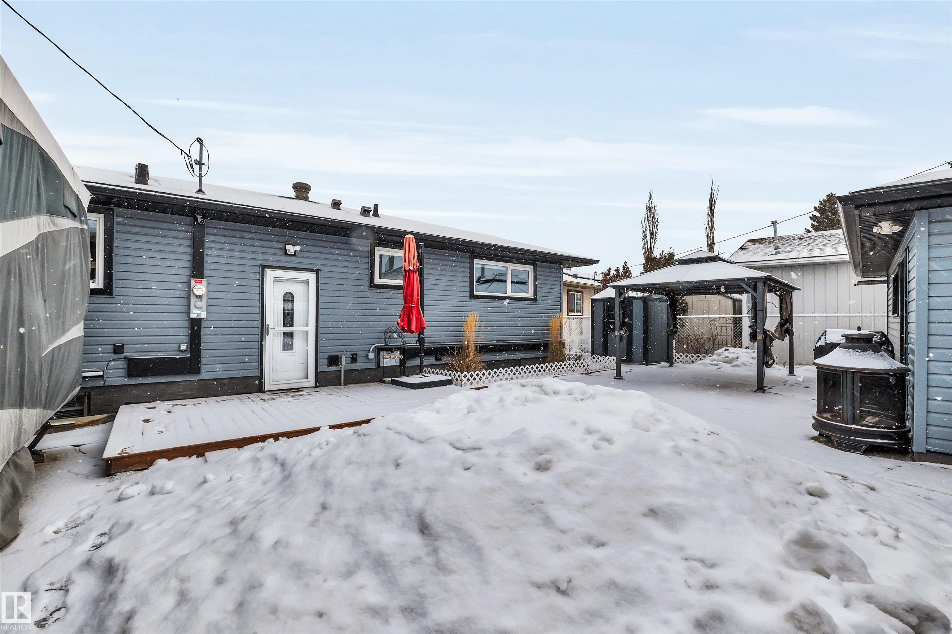 COMPLETE RENOVATION! This GEM will WOW you! Over 2000 sqft of living space w/2+1 bedrooms, 2 full bathrooms, across the street from a beautiful park with active community league, seasonal fireworks, skating rink and minutes to elementary school. The recent upgrades on this home are EXTENSIVE and include new vinyl/stone exterior w/upgraded insulation, triple pane windows up, SOLAR panels on house and garage, Central A/C, shingles, 2 x furnaces (suite potential), HWT, hardwood, carpet, kitchen & bathrooms, linear GAS fireplace, lighting fixtures, fresh paint, doors & hardware, plumbing, electrical (new panel), new 220V in the O/S HEATED garage, upgraded attic insulation, new front sidewalk, new Shed, new washer, dryer & fridge and the list goes on... Backyard is an oasis with cemented RV parking, Gazebo (it stays) great patio & deck! Basement has a separate entrance, WET bar and its own dedicated furnace. Stop looking at places that need work, this cannot be beat, move in relax and enjoy the good life.