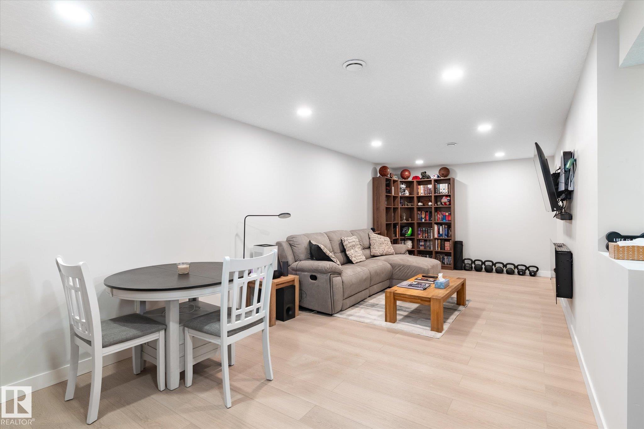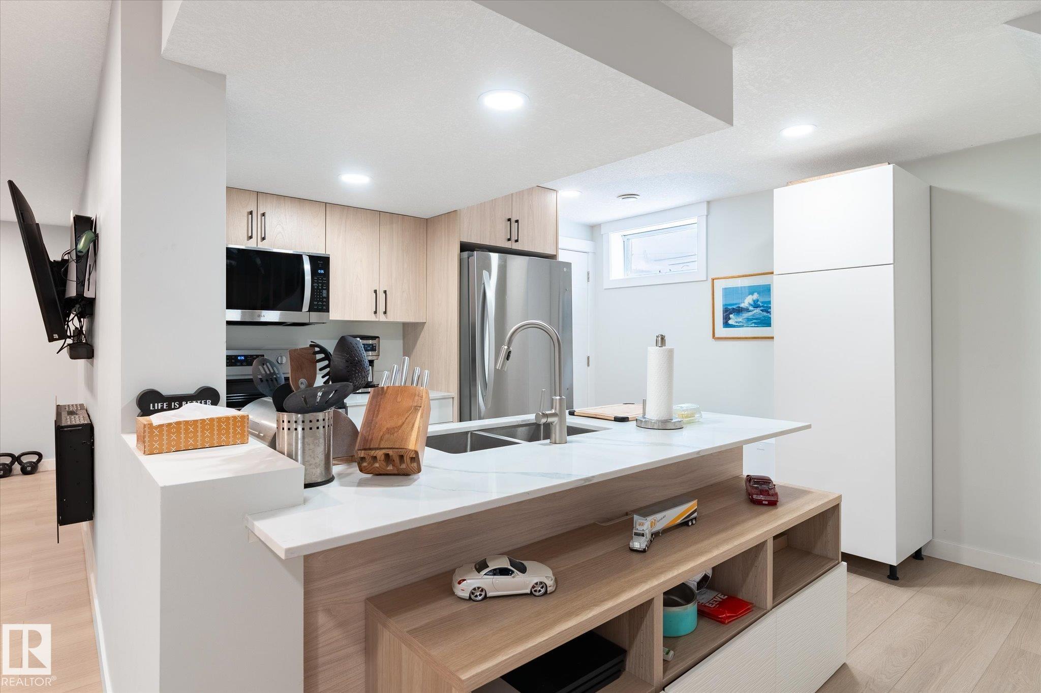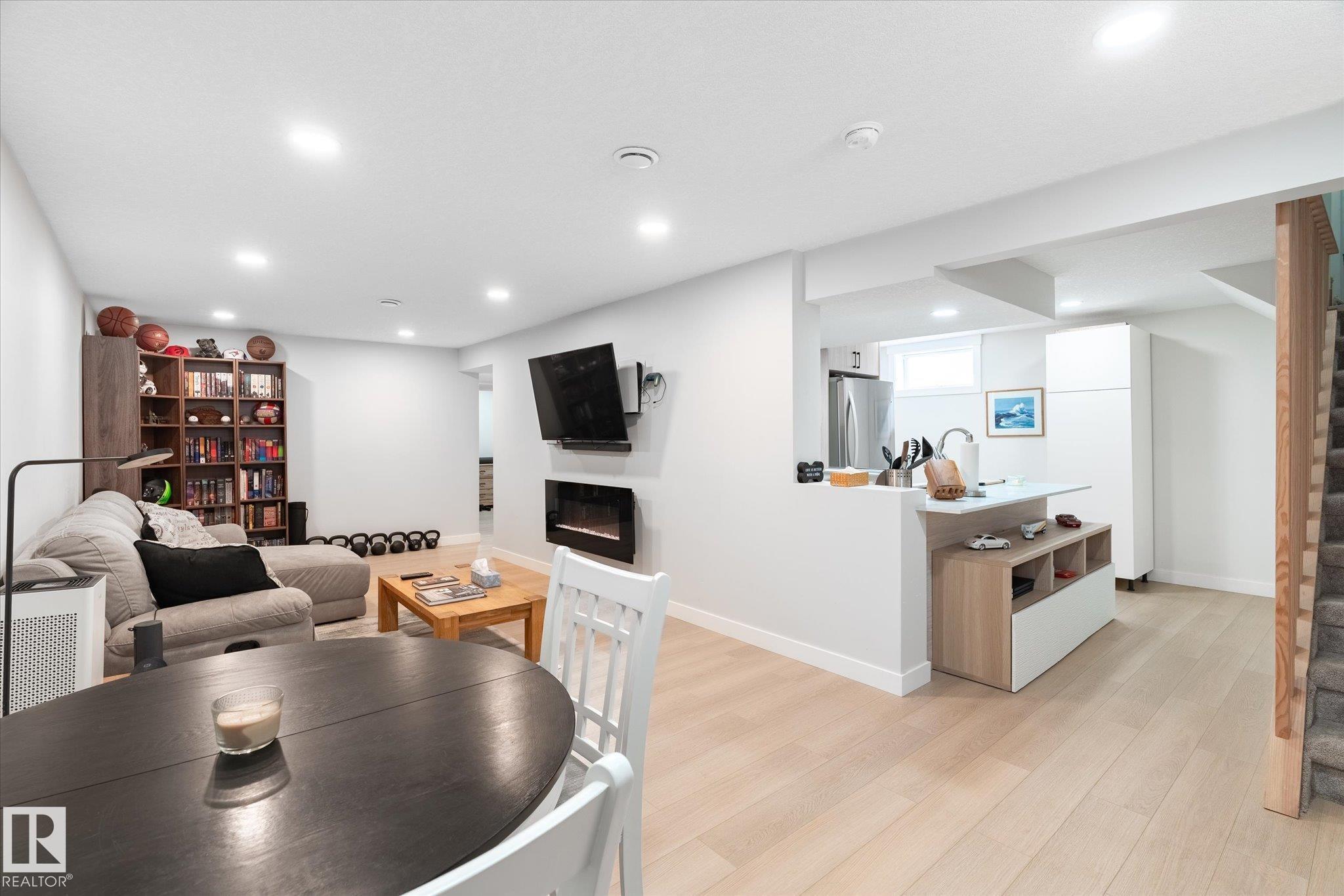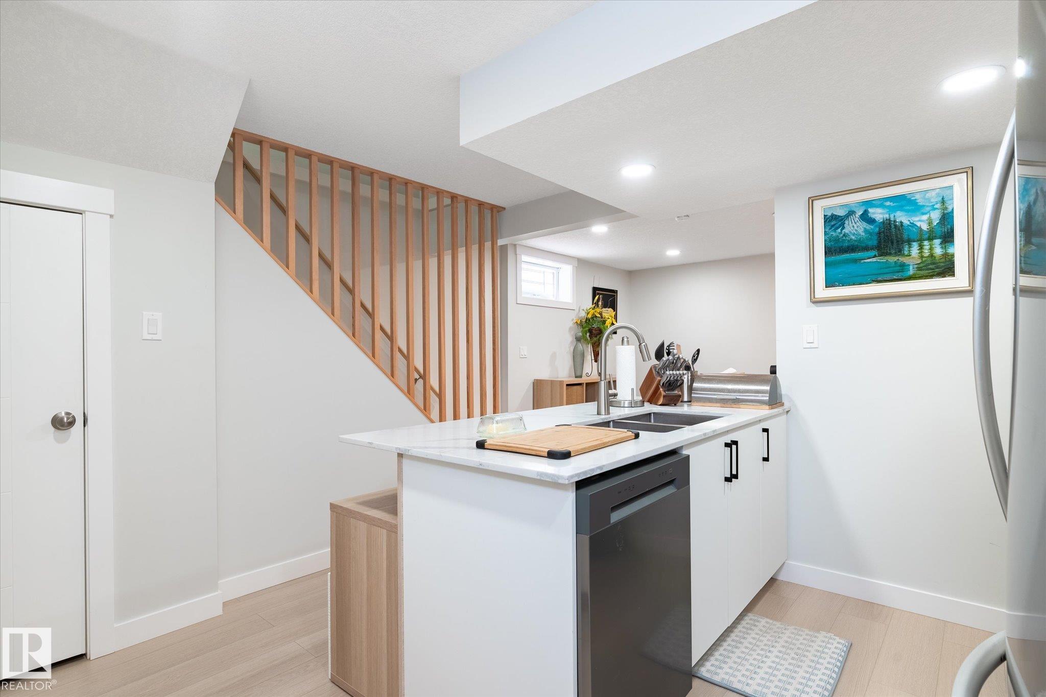 Professionally renovated with ample space for multi generational families! This elegant home has a total of 5 Bedrooms and 3 bathrooms! Main floor luxury vinyl plank flooring gleams and the spacious living room is anchored with a feature wall fireplace, renovated kitchen with quartz counters, coffee station and a pot filler. There are 3 large bedrooms upstairs and the master suite features a shower ensuite! There is main floor laundry (new washer / dryer) plus another laundry set downstairs. Fully finished basement has its own separate entrance and has 2 large bedrooms, with a second upgraded kitchen with pantry, laundry, family room with fireplace, and a bathroom with shower. Two furnaces so you won't fight over temperature upstairs and down! Outside is your fully fenced backyard and double garage. Other features include: newer shingles, Eaves, Lights, Windows, Plumbing, High Efficiency Furnace, new Central A/C, new sod in backyard, new siding and new blinds