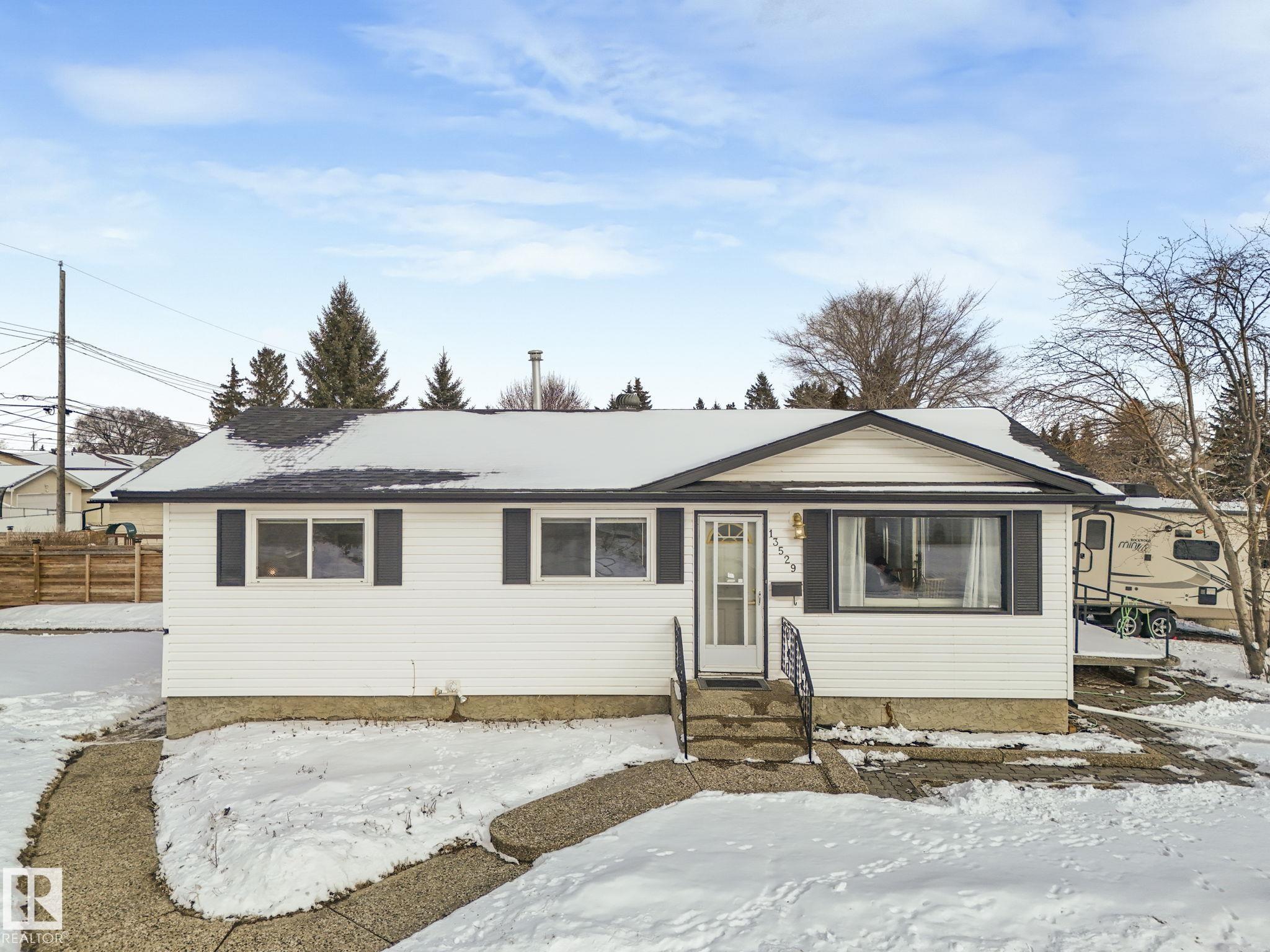 Some homes just feel right the moment you arrive, this one is no exception. Situated on a large corner lot across from the park in the Delwood neighbourhood. This four bedroom, two bathroom home is in one of Edmonton's most cherished community Step inside the main level and observe the abundance of natural light pouring through the large windows. The updated kitchen featuring modern finishes is the heart of the home With three bedrooms and a full bathroom, the main level offers space and comfort. A double detached heated garage offers storage and work space with dedicated RV parking. The new shingles mean you can move in with confidence. The fully finished basement has its own separate entrance, kitchen, bedroom, rec room and bathroom. Perfect for a in-law suite. With quick access to Yellowhead, Londonderry, the buzz of 97 street are all close at hand and a short drive to downtown. This is the complete package for first- time home buyers, growing families or savvy investors.