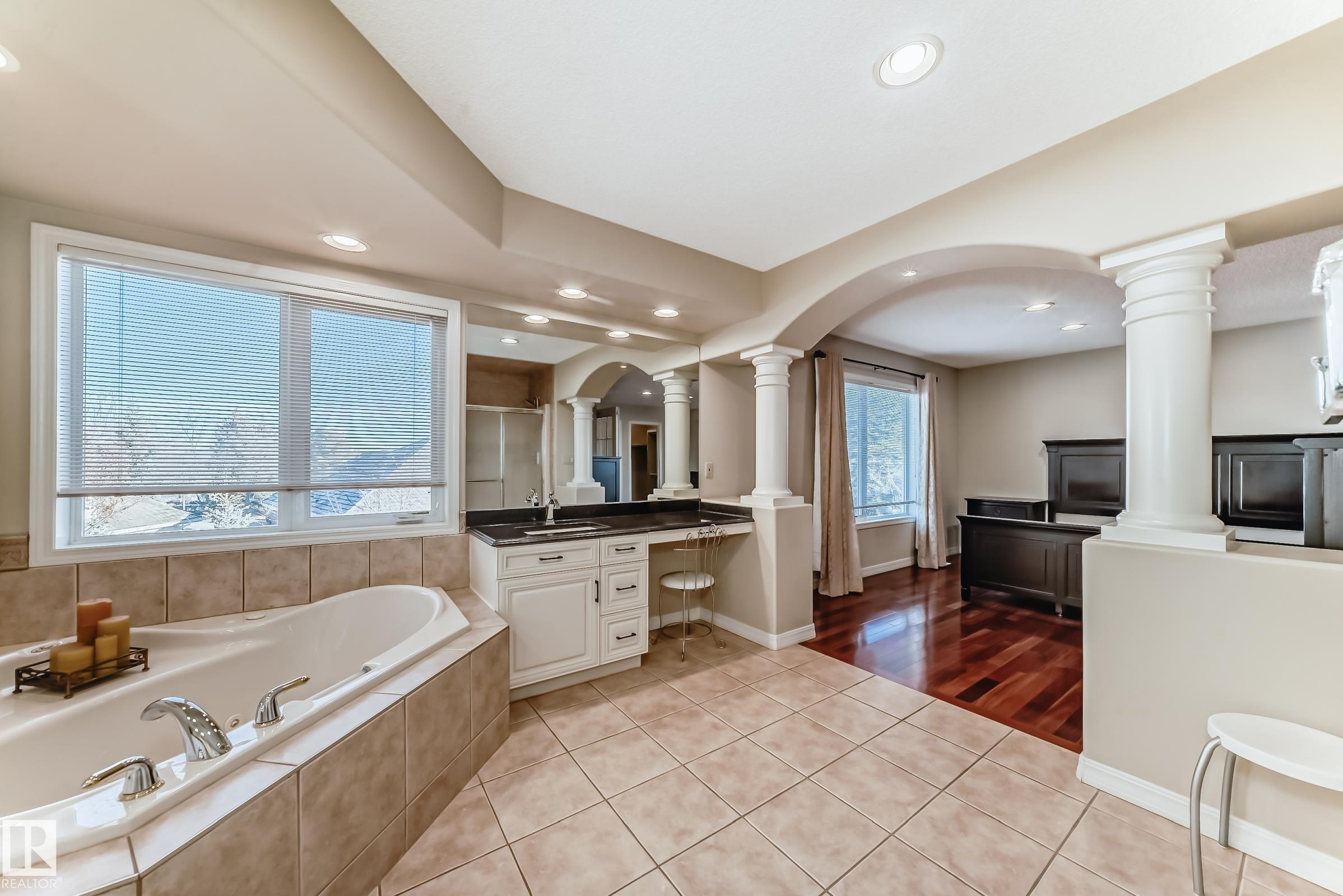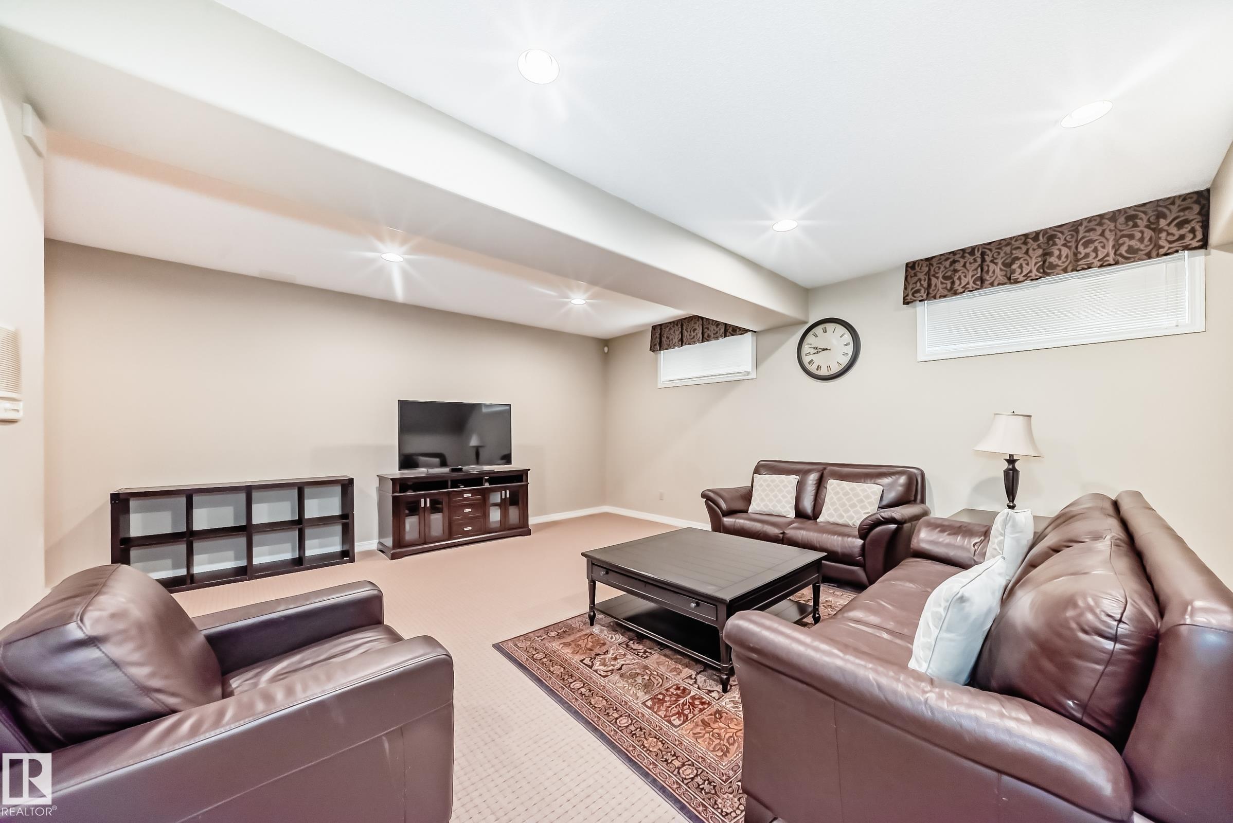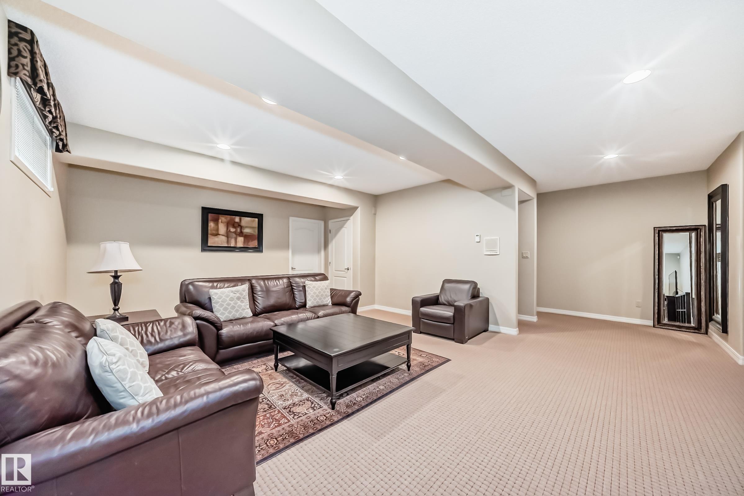 LUXURY EXECUTIVE LIVING in prestigious Donsdale Estates! This stunning 5-bed, 2-storey home offers in-floor heating throughout, dual A/C units and furnaces for exceptional temperature control, plus an irrigation system--perfect for a large family. A grand double-door entrance opens to soaring cathedral ceilings and an elegant living room with massive windows, flowing into the formal dining room. The gourmet kitchen features high-end white cabinetry, quartz counters, pantry and island, with a bright breakfast nook overlooking the cozy family room with fireplace. The main floor also includes a den/office, laundry and bath. Upstairs, enjoy a gorgeous primary suite with spa-like 5-pc ensuite, plus two additional bedrooms and full bath. The finished basement adds a spacious family room, two bedrooms, full bath and ample storage. Beautifully landscaped yard with cedar roof, maintenance-free deck, glass railings, fencing and paved path. Steps to the pond, gazebo and scenic walking trails--Welcome Home!