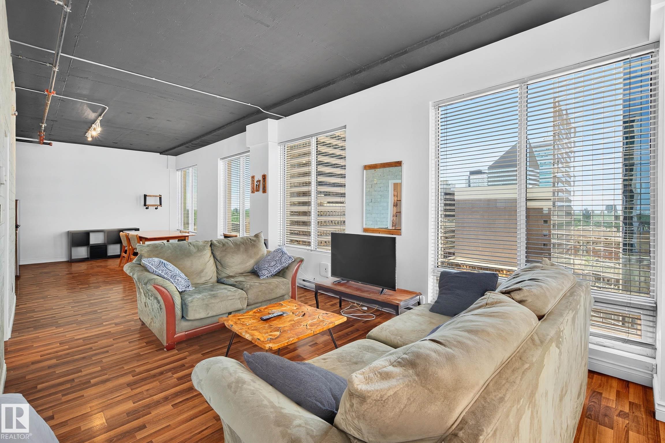 12th floor, FULLY FURNISHED and TURN-KEY READY CORNER-UNIT LOFT! INCREDIBLE INVESTMENT or FIRST TIME buyer OPPORTUNITY! AIRBNB COOPERATIVE building with an already high track record to maximize CASHFLOW! This unit has a current 4.8/5 rating with plenty of stellar reviews! AIR CONDITIONING, STUNNING 12th floor VIEWS, RARE and VALUABLE separate STORAGE, character BRICK walls and 6 LARGE WINDOWS! Stainless steel appliances, rustic decor and FULLY FURNISHED. Almost 600sqft and located perfectly with LRT access to everywhere you need to go, U of A, NAIT, Grant Macewan or throughout the core of Downtown. Steps to the River Valley, shops, restaurants its hard to beat the VALUE this property has to offer!