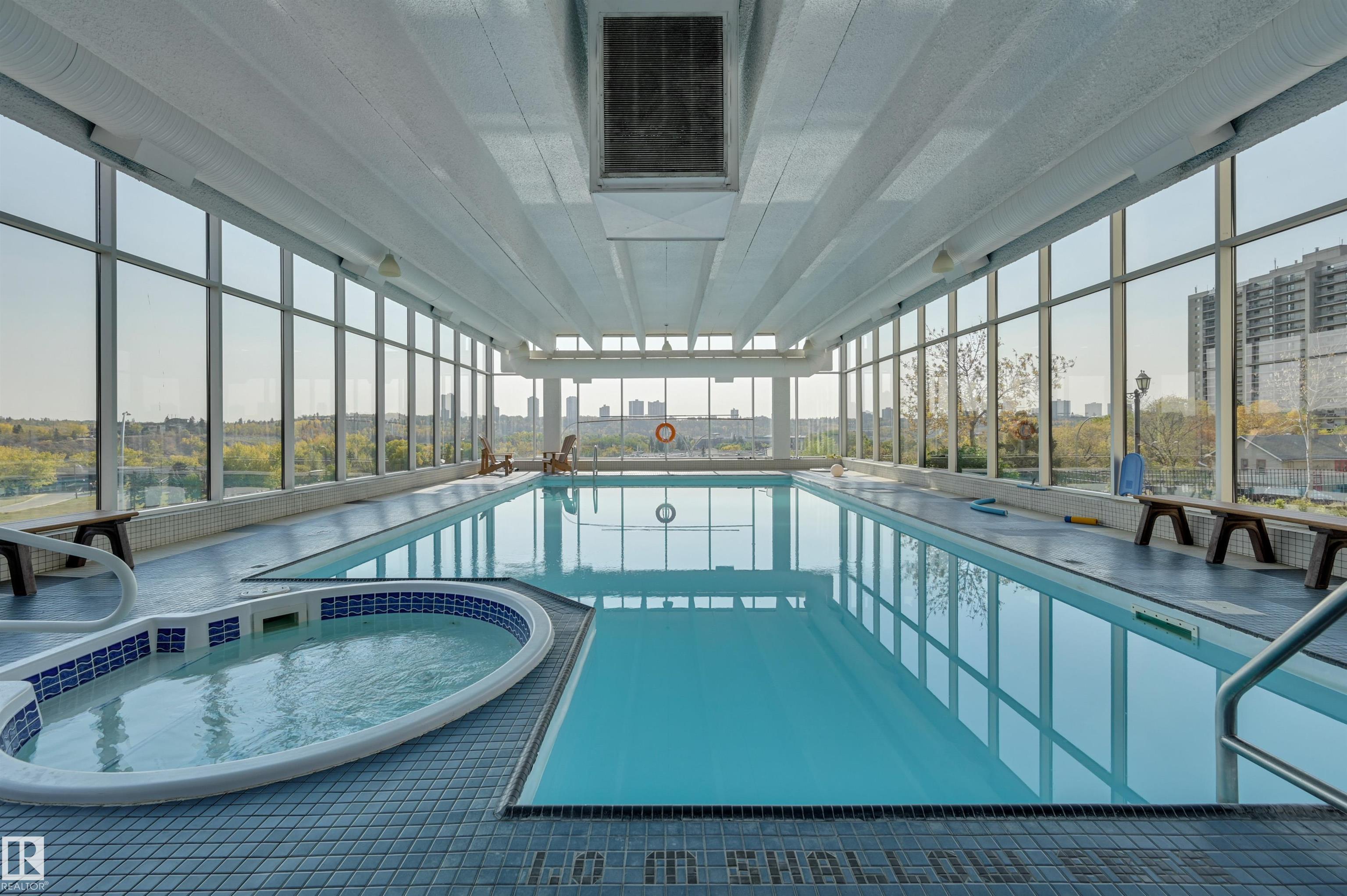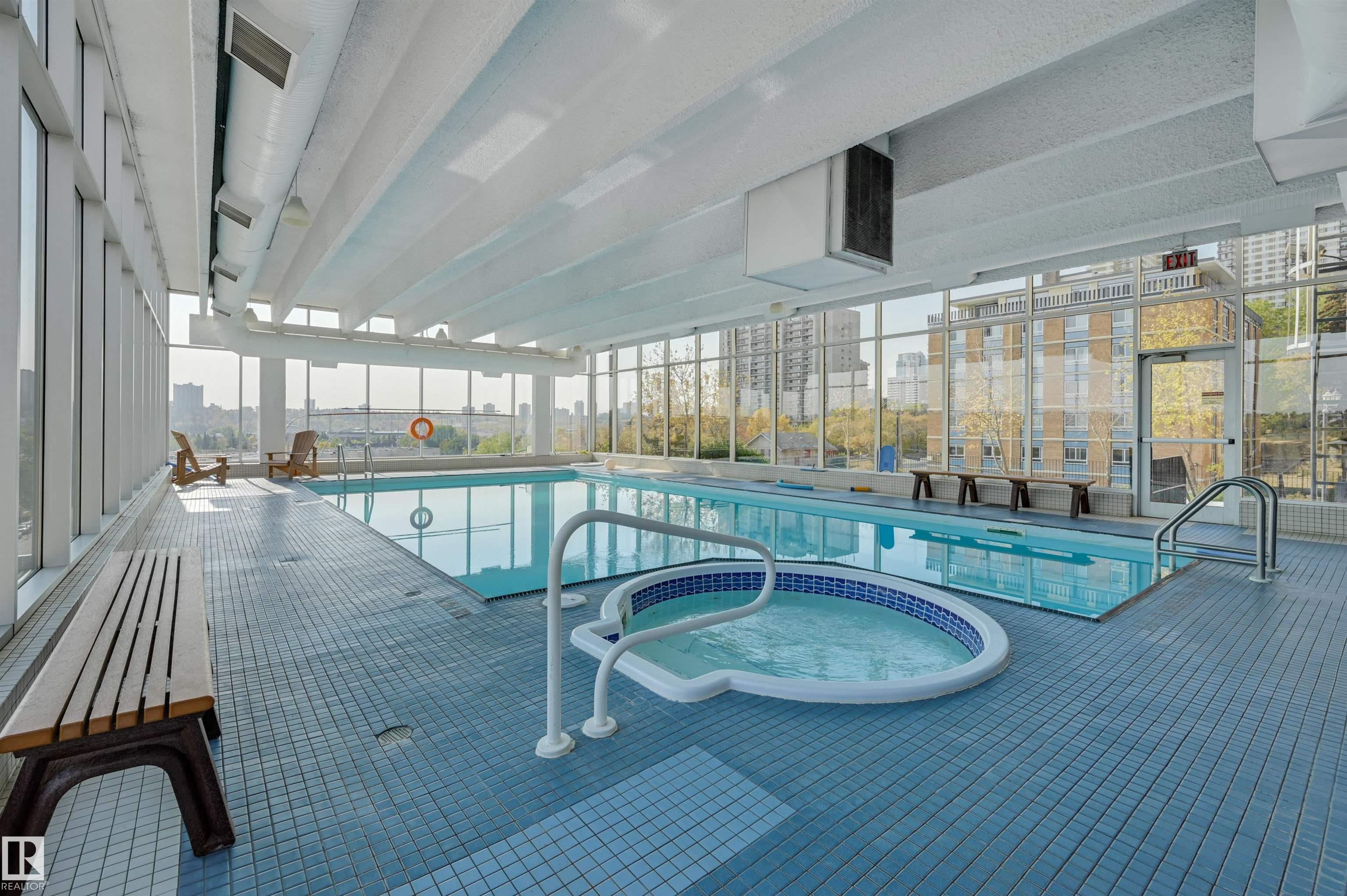 Downtown living awaits! This 1 bed + 1 bath condo is ready for your vision + touch. With east facing windows, your living room will soak up the sun in the upcoming summer months. A large patio with a storage room is perfect to tuck away bicycles or seasonal decor. Your galley style kitchen has ample space for cupboards and stylish countertops! Rest assured with your heated underground titled parking stall. Your primary bedroom has a private entrance to your patio where you can take in the city views from the comfort of your bed! Enjoy the amenities of living here, including an indoor pool, exercise room, sauna, party room and much more! Close to some of Edmonton's best dining and cafes, as well as public transit and the River Valley, you can enjoy city living at its finest.