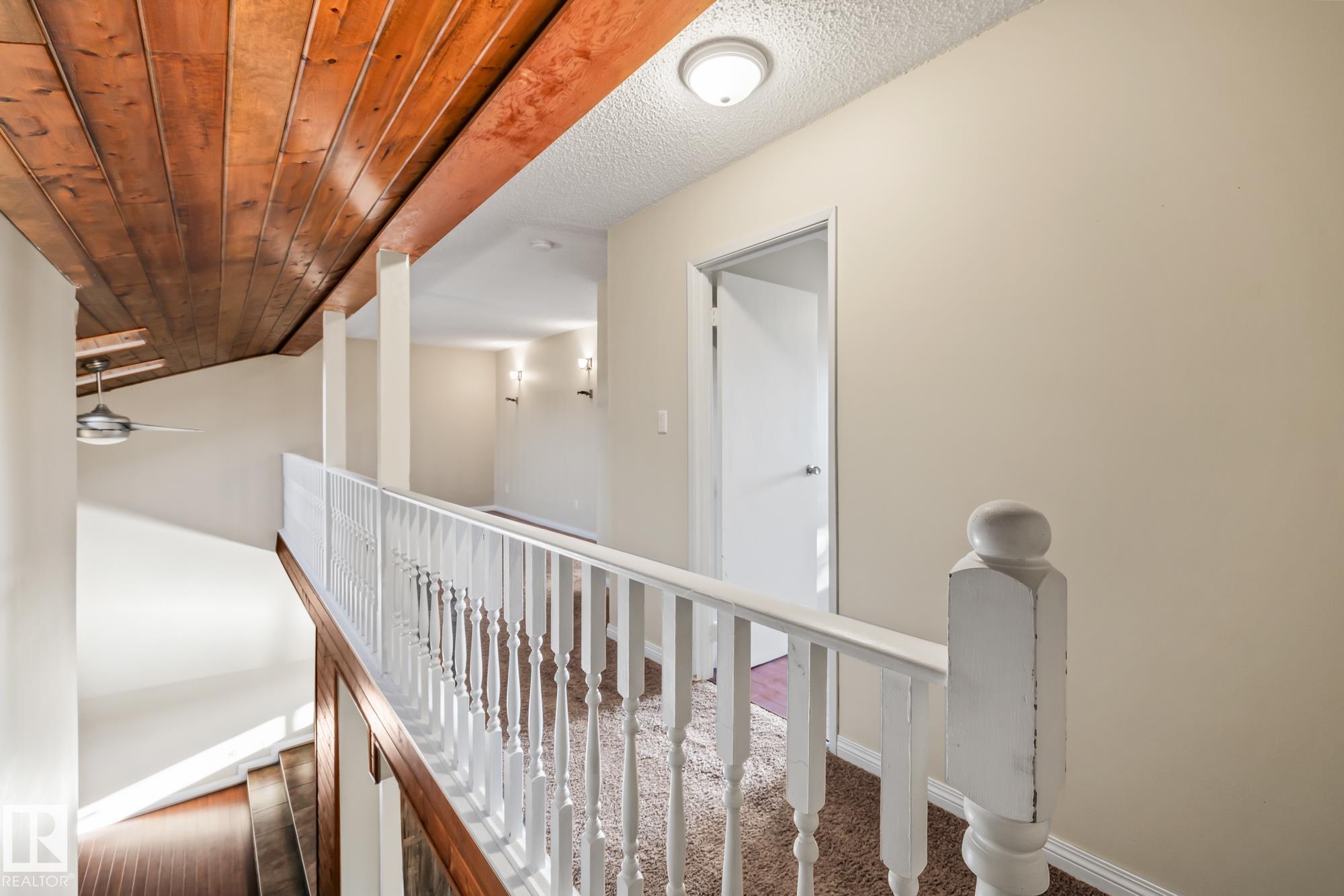 This 4-bedroom, 3-bathroom home situated in Dunluce is full of character and offers convenient access to schools, parks, shopping, and major transportation routes. The property presents a unique design you must see. The main level features an open floor plan with high vaulted ceilings and a functional layout. A wood-burning fireplace makes for a cozy living area. The property includes four spacious bedrooms (one on the main floor) and three full bathrooms. It is positioned on a large lot with a south-facing back yard. The partially finished basement significantly expands the usable space, currently featuring a bedroom, a full bathroom, and a substantial recreation area that has been drywalled. Key mechanical and structural updates include shingles (2020), furnace (2020), hot water tank (2022), skylights (2020), and fence (2020). Additional features include central air conditioning, central vacuum, and a heated attached double garage equipped with a 220V outlet.