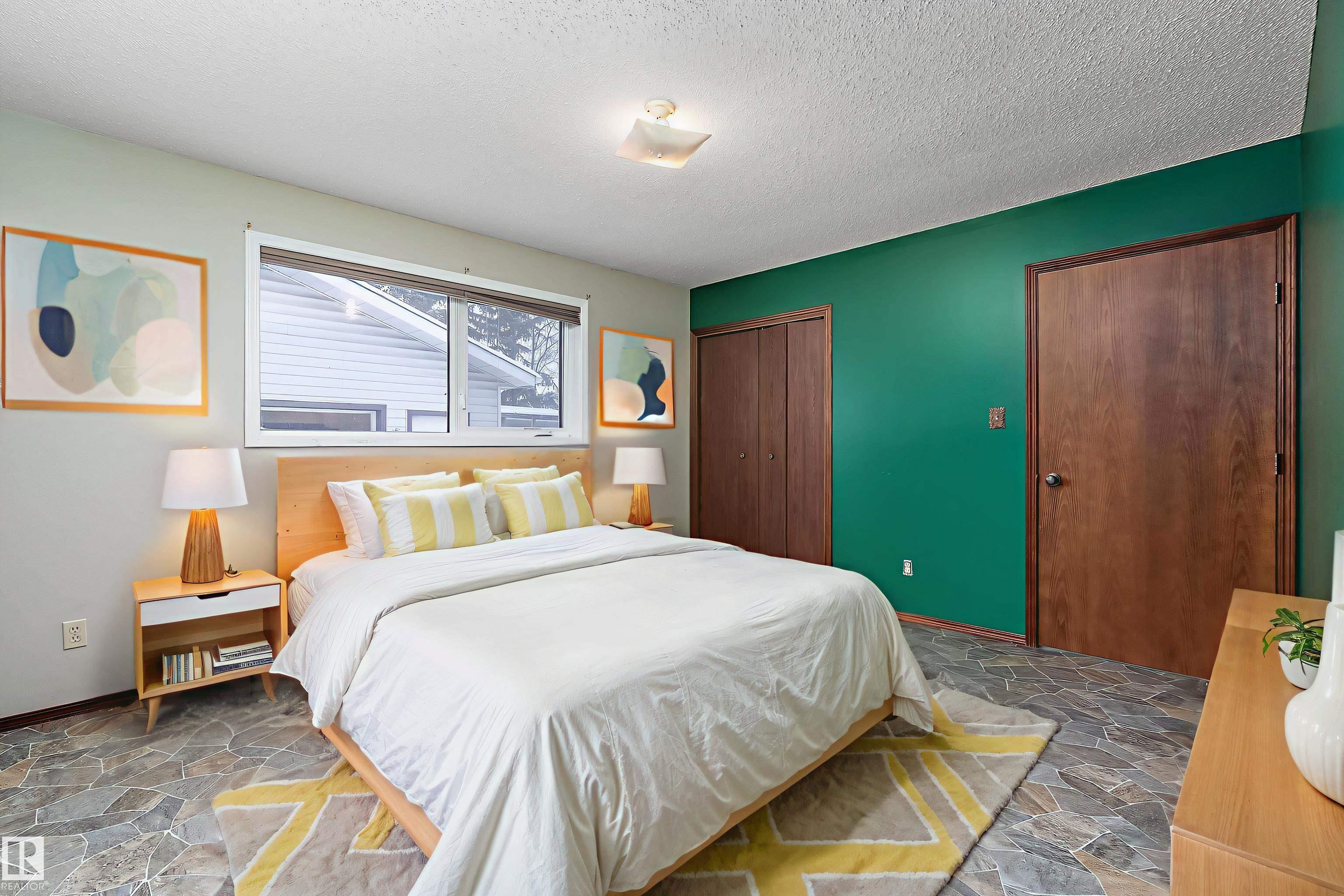 Located in the mature community of Dunluce, this well-maintained bungalow offers a practical layout & excellent access to everyday amenities. The bright main floor features a comfortable living area with good natural light, a dedicated dining space, & a functional kitchen with ample cabinetry & prep space. Two bedrooms are located on the main level, including a spacious primary bedroom, along with a full bathroom & convenient main-floor laundry. The unfinished basement provides generous storage & flexibility for future development. A large detached garage offers ample space for vehicles, tools, seasonal storage, or hobbies. Dunluce is valued for its mature trees, quiet streets, & nearby green spaces, with Dunluce School (K-6) within the community & additional public & Catholic schools nearby. Residents enjoy easy access to parks, playgrounds, public transit, & shopping along 97 Street & Castledowns Road, with Anthony Henday Drive just minutes away. Move-in ready with immediate possession available!