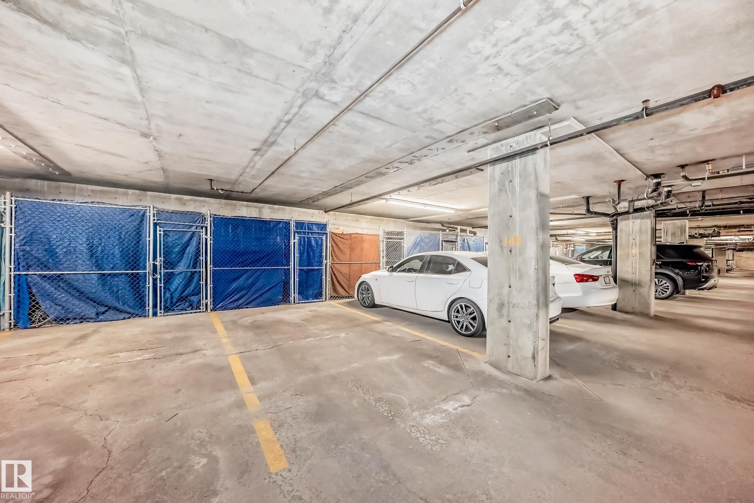 Experience effortless condo living in this expansive 3rd-floor unit at Promenade Eaux Claires is MOVE-IN ready. Bright and inviting, the open-concept layout features brand-new luxury vinyl plank flooring, a sun-filled living room, and a large oak kitchen with abundant cabinetry, generous counter space, and a raised bar island--ideal for entertaining. Enjoy two spacious bedrooms and two full baths, including a private ensuite. Step out onto your west-facing covered balcony to soak in sunsets, complete with a gas BBQ hook-up. Stay comfortable year-round with central A/C. Thoughtfully designed with a large in-suite laundry and storage room, plus a titled heated underground parking stall and secure storage cage. This well-managed building includes a fitness room, games lounge, guest suite, and a stylish lobby. Conveniently located near public transit, parks, and major shopping amenities, everything you need is just steps away. First 2 pictures are virtually staged.