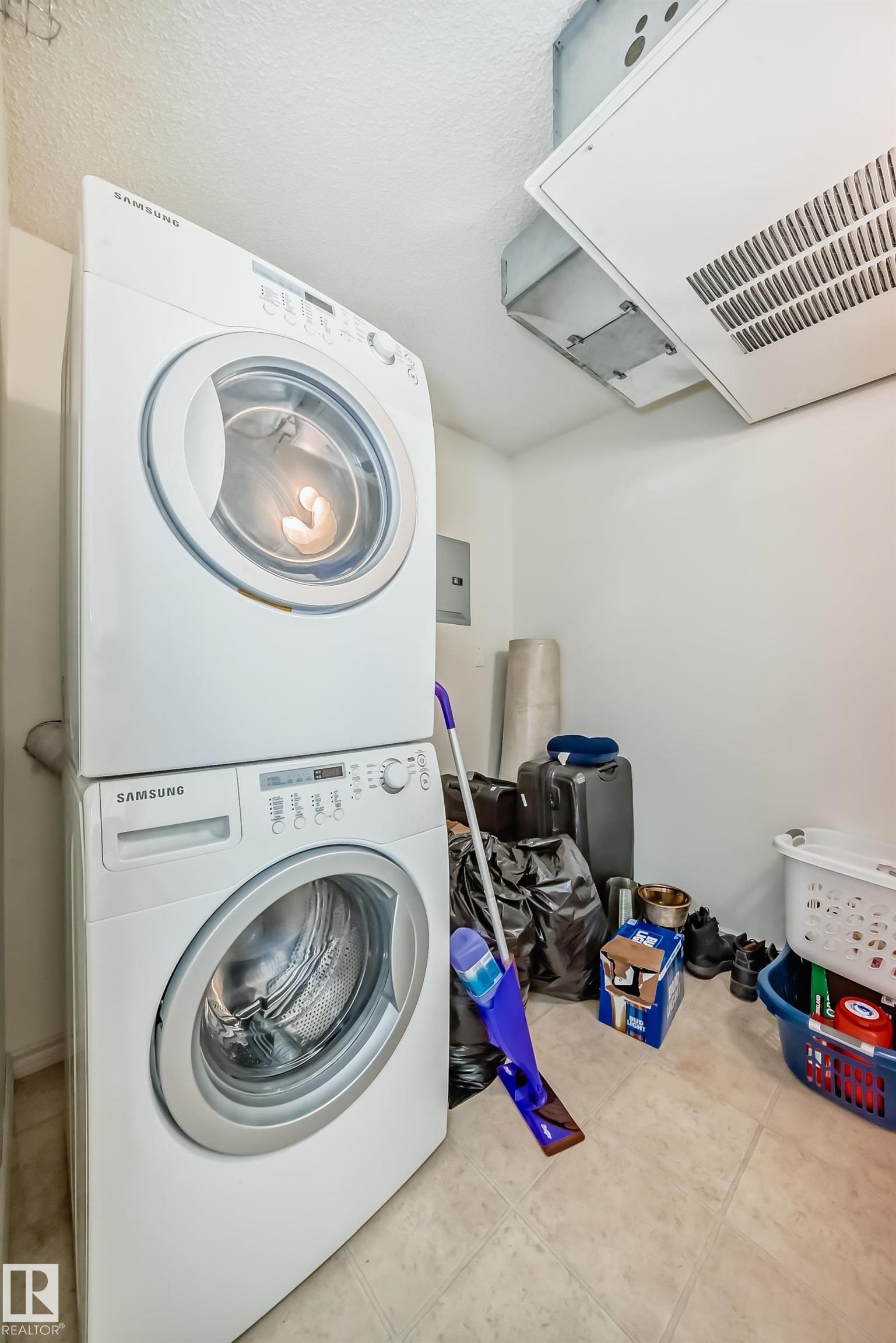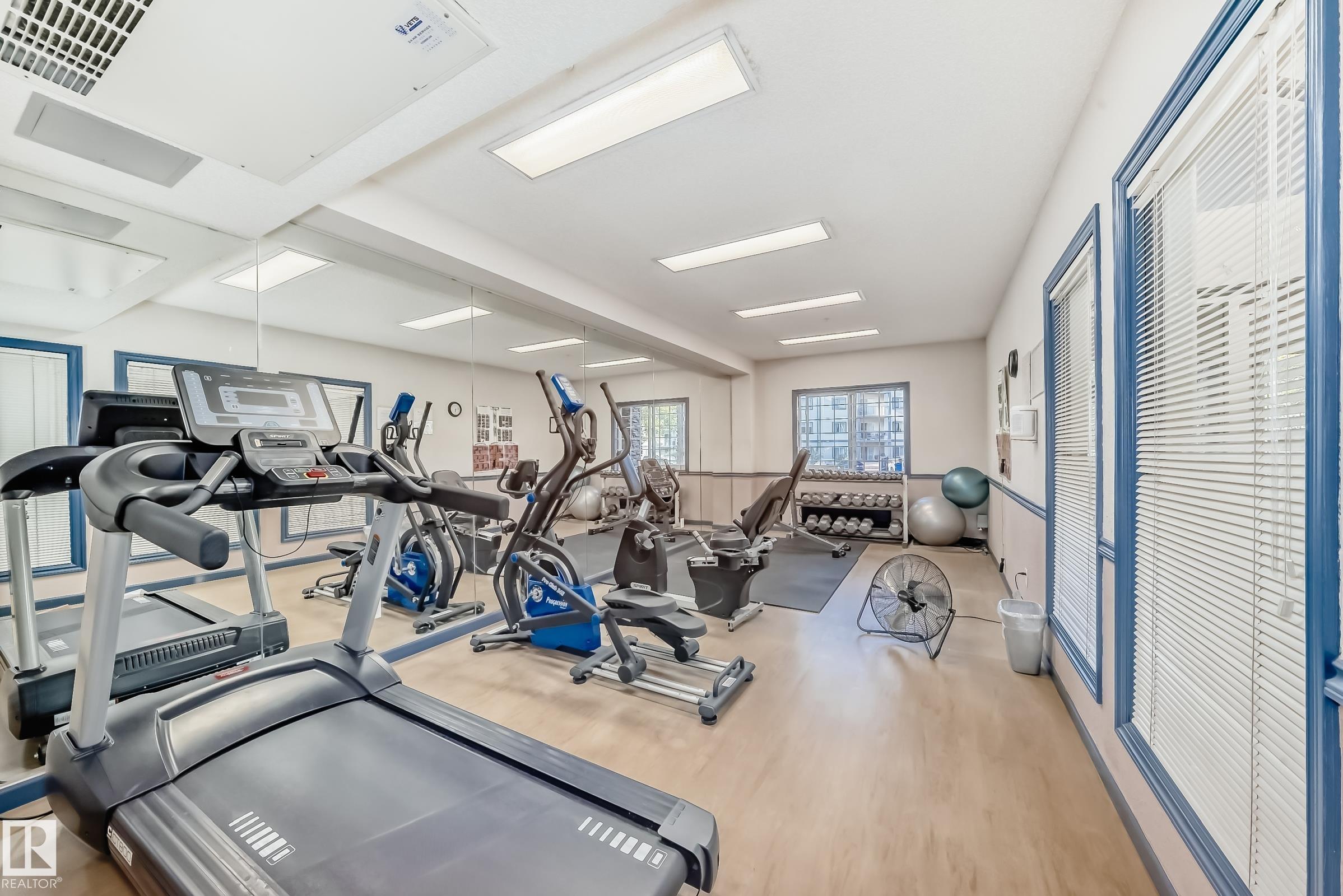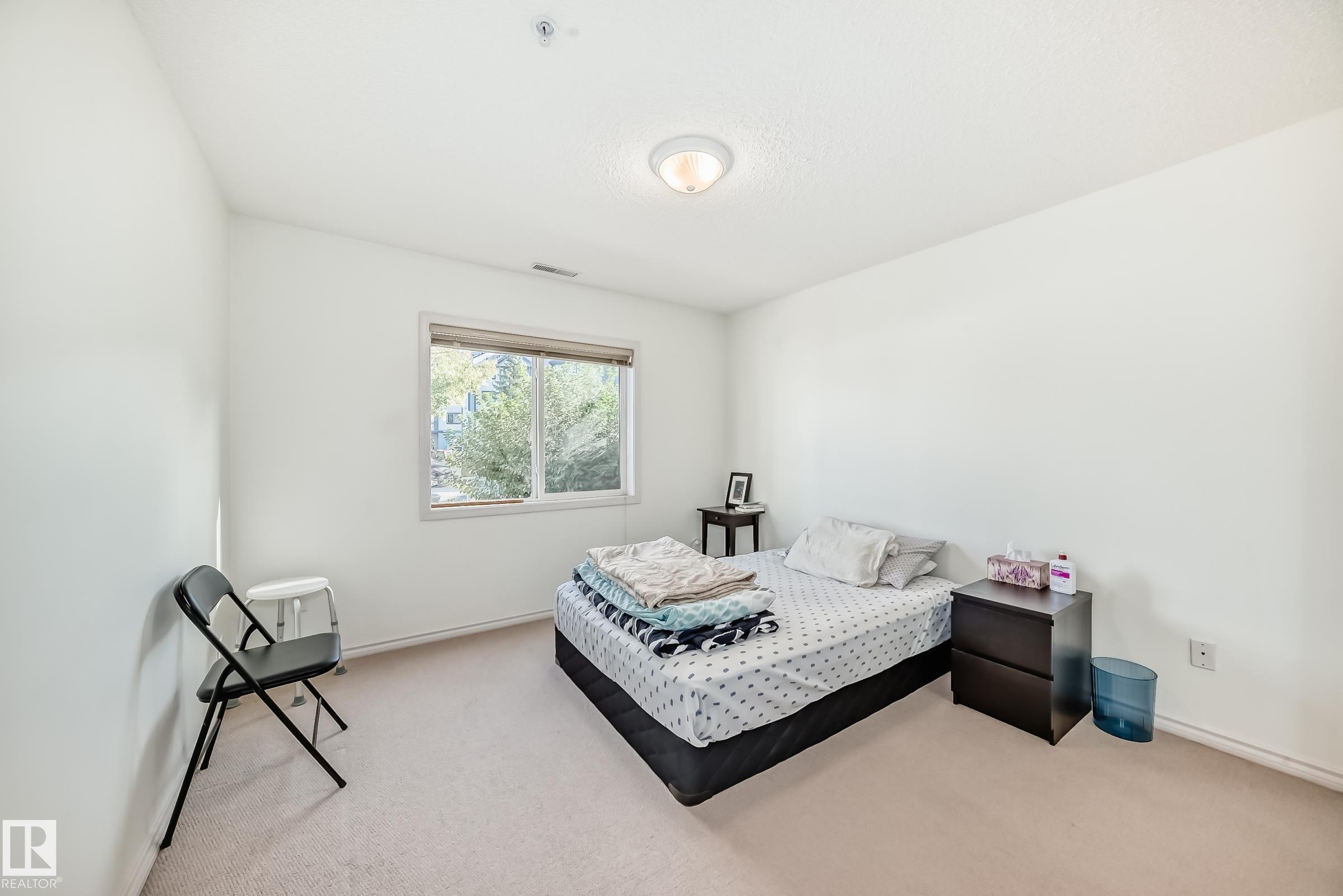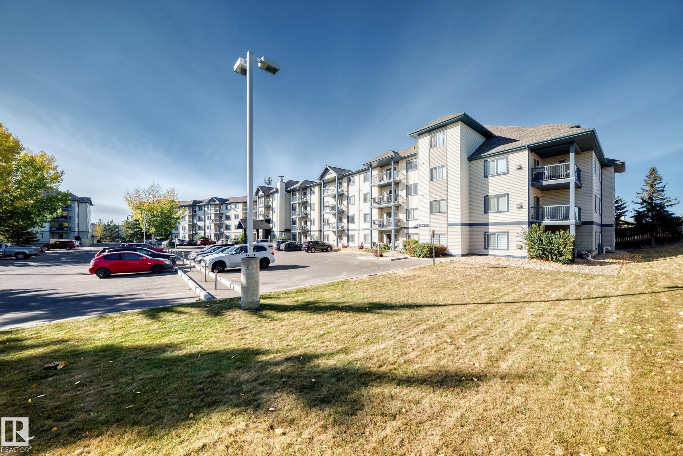 ATTENTION FIRST-TIME BUYERS & INVESTORS! Welcome to this affordable 2 BEDROOM, 2 BATH condo in desirable Eaux Claires. This bright SOUTH-FACING unit features a spacious open floor plan, large closets, a cozy corner gas fireplace, and patio doors leading to a sunny private patio. The kitchen offers maple cabinetry, under-cabinet lighting, and a moveable island. Bedrooms are thoughtfully placed on opposite sides for added privacy, each with its own full bath. Enjoy the comfort of A/C, in-suite laundry, and the convenience of your PARKING STALL literally right outside the unit. The building includes a guest suite and exercise room. Ideally located just steps from shopping, dining, and public transit, with quick access to 97 St, NAIT, downtown, Anthony Henday, and only 10 minutes to CFB Edmonton. A well-managed complex with LOW condo fees that include heat and water make this a smart investment. Move-in ready and waiting for you!
