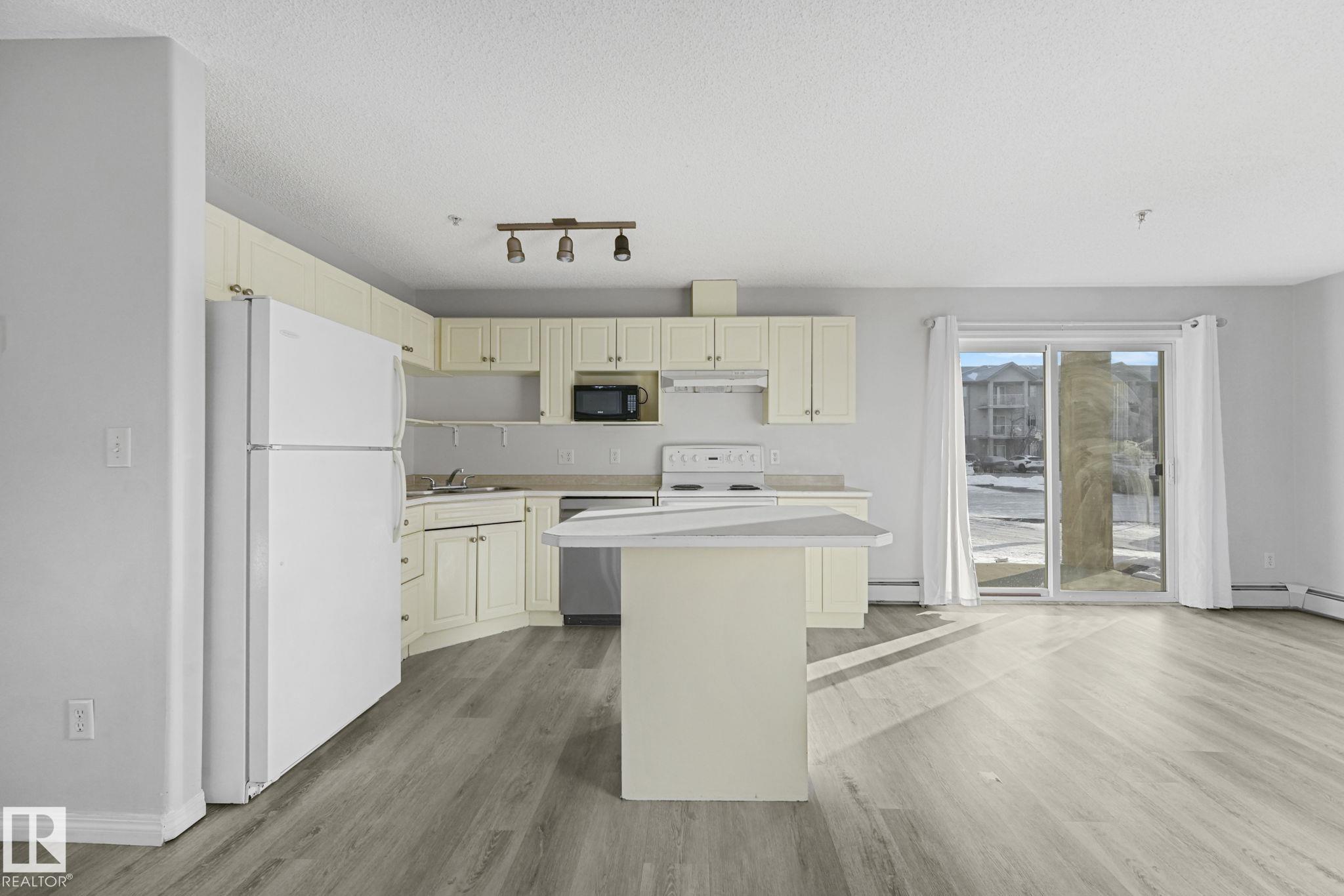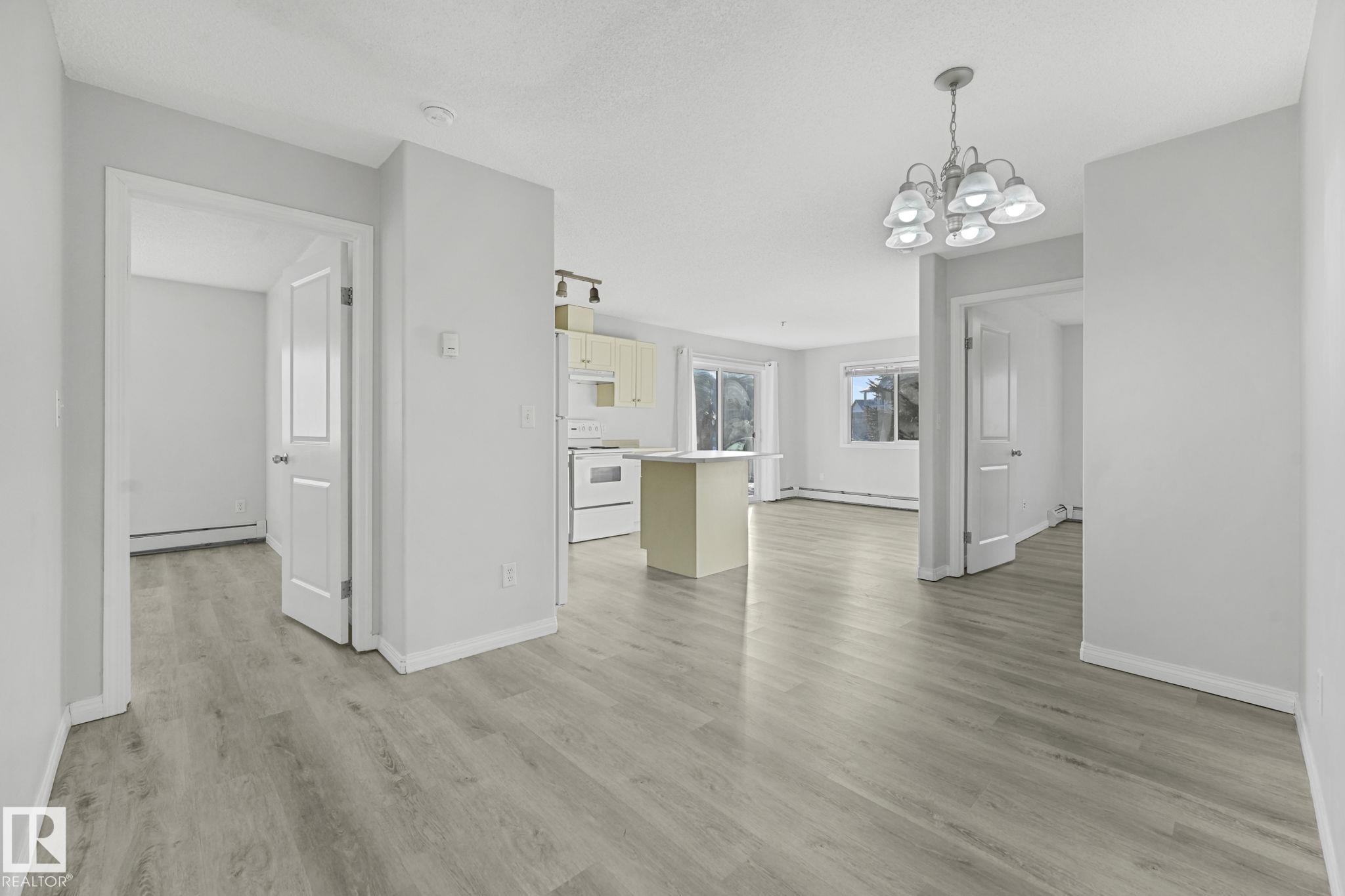 Welcome to this bright and beautifully updated 850 sq ft ground-floor condo, perfectly positioned for convenience and comfort. This end-unit offers a smart open-concept floor plan with new vinyl plank flooring and large windows that flood the space with natural light. The spacious primary bedroom features a walk-in closet and a private 4-piece ensuite, while the second bedroom and full bathroom are ideal for guests, a home office, or roommates. Enjoy the ease of in-suite laundry and main-floor living--no stairs required. The building is currently being refreshed with new carpet in hallways and stairwells, adding to its appeal. Step outside to a public transit stop just moments away, with extensive shopping plazas, schools, and services right next door. Commuters will love the quick access to Anthony Henday Drive. A move-in-ready home in a prime location--perfect for first-time buyers, downsizers, or investors alike.