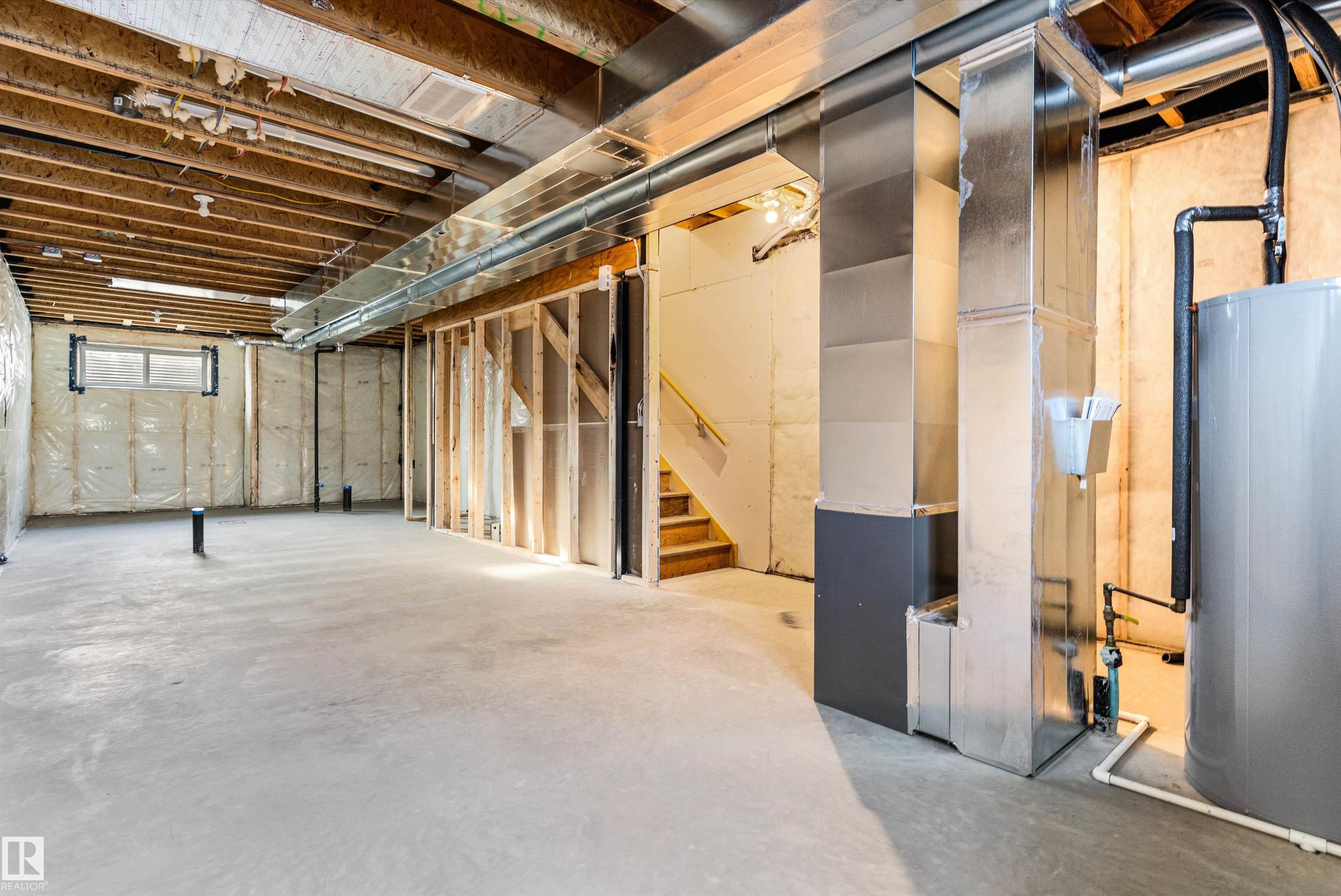 Built by Sterling Homes, this 1,619 sq. ft. laned home in Edgemont Place blends smart design with family-friendly functionality. The main floor features 9' ceilings, luxury vinyl plank flooring, and a bright open-concept layout with triple pane windows. At the front, a main-floor bedroom and full bath offer flexibility for guests or home office needs. The rear kitchen includes quartz countertops, an island with seating, full-height tile backsplash, corner pantry, and a window over the sink. The dining area and living room flow seamlessly to the backyard through a central garden door. Upstairs, you'll find a cozy bonus room, a spacious primary suite with walk-in closet and private ensuite, plus two additional bedrooms and a full bath. A convenient laundry closet completes the upper level. Additional features include a separate side entrance, 9' basement ceilings, and basement rough-ins for future development.