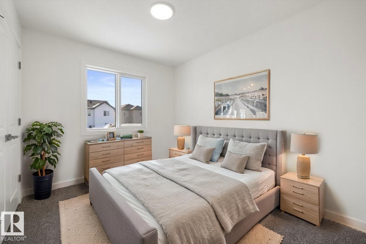 Experience the perfect blend of style and versatility in this charming Sterling Homes laned residence, located in the quiet community of Edgemont Place. The main floor feels exceptionally airy with 9' ceilings, triple-pane windows, and a sun-drenched front living room. Designed for multi-generational living or remote work, this level features a rare main-floor bedroom and full bathroom, offering a private space for guests or a home office. At the heart of the home, the kitchen shines with quartz countertops, a central island, and upgraded cabinetry overlooking the yard. The upper level serves as a peaceful retreat, headlined by a primary suite with a walk-in closet and private ensuite. Two additional bedrooms, a full bath, and convenient upper-floor laundry ensure an organized daily routine. Finished with luxury vinyl plank flooring and a separate side entrance, this home also includes a large backyard with a parking pad and basement rough-ins for future growth.