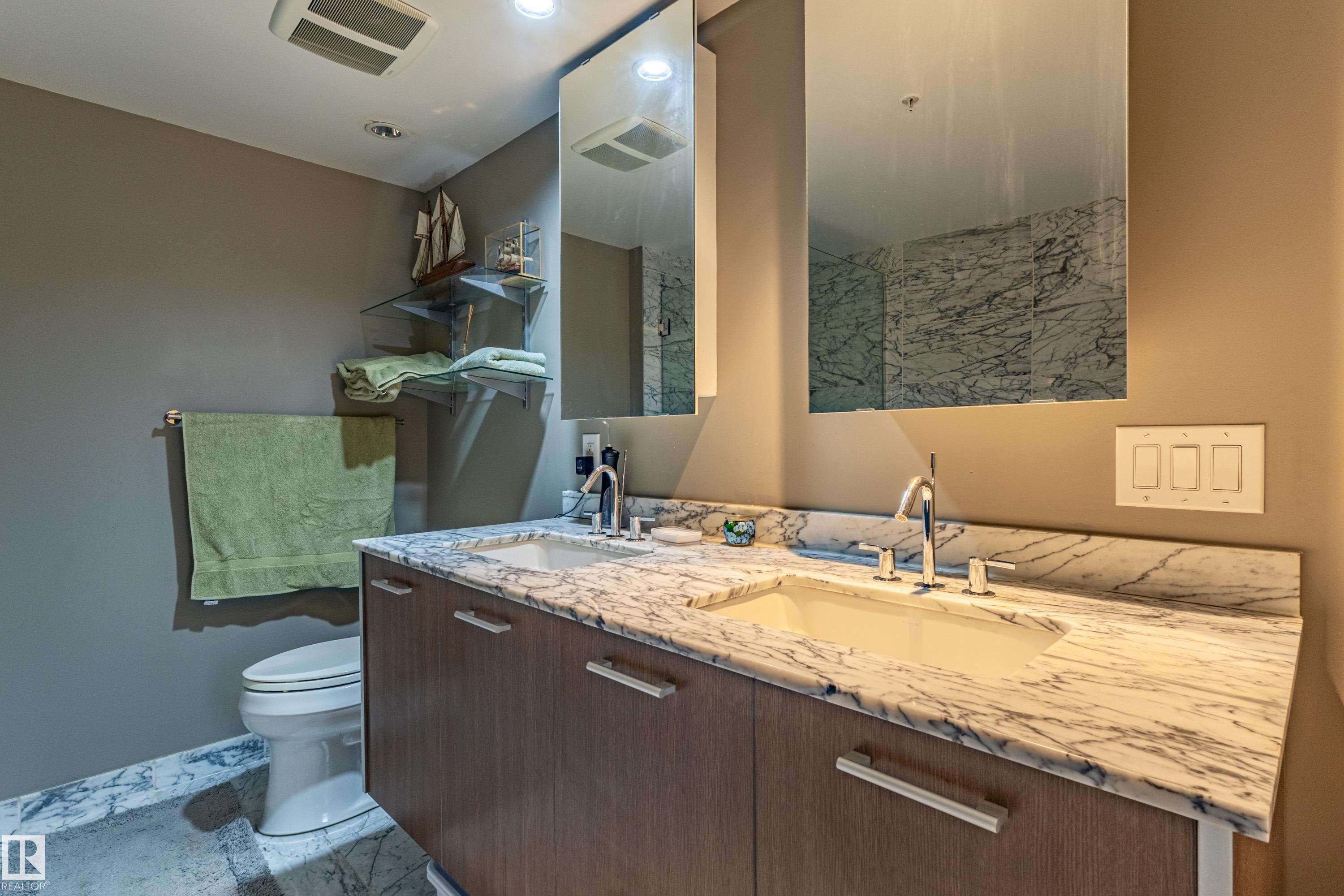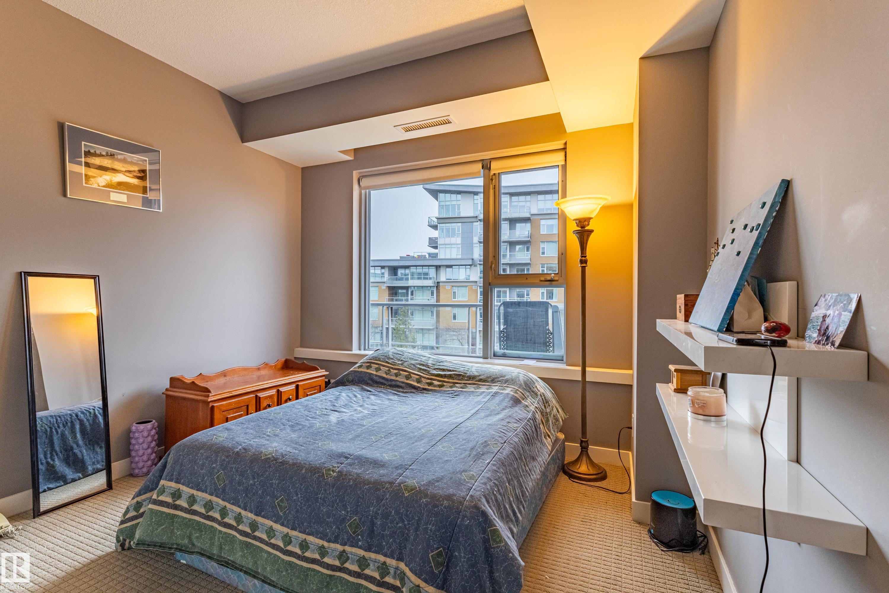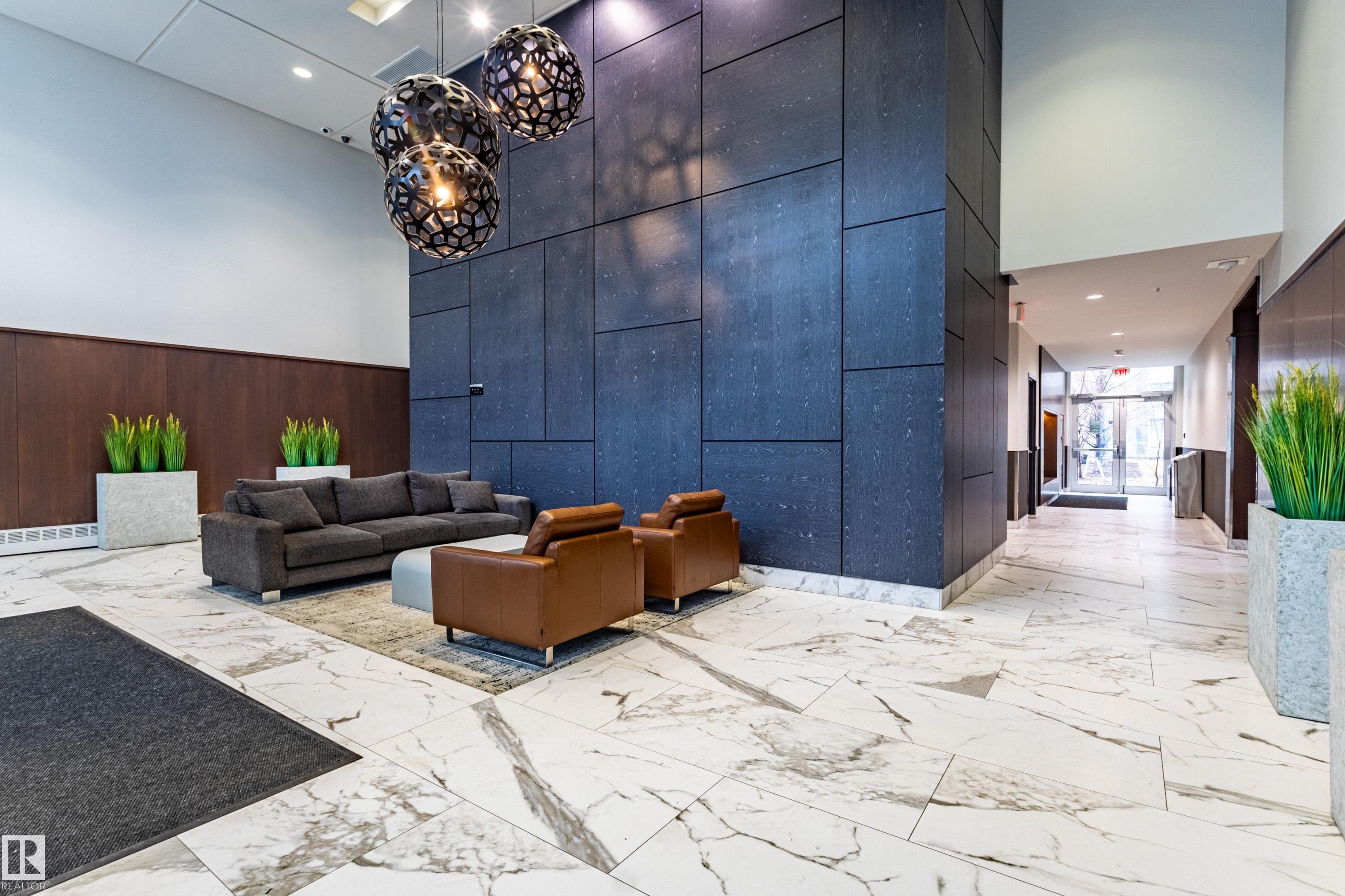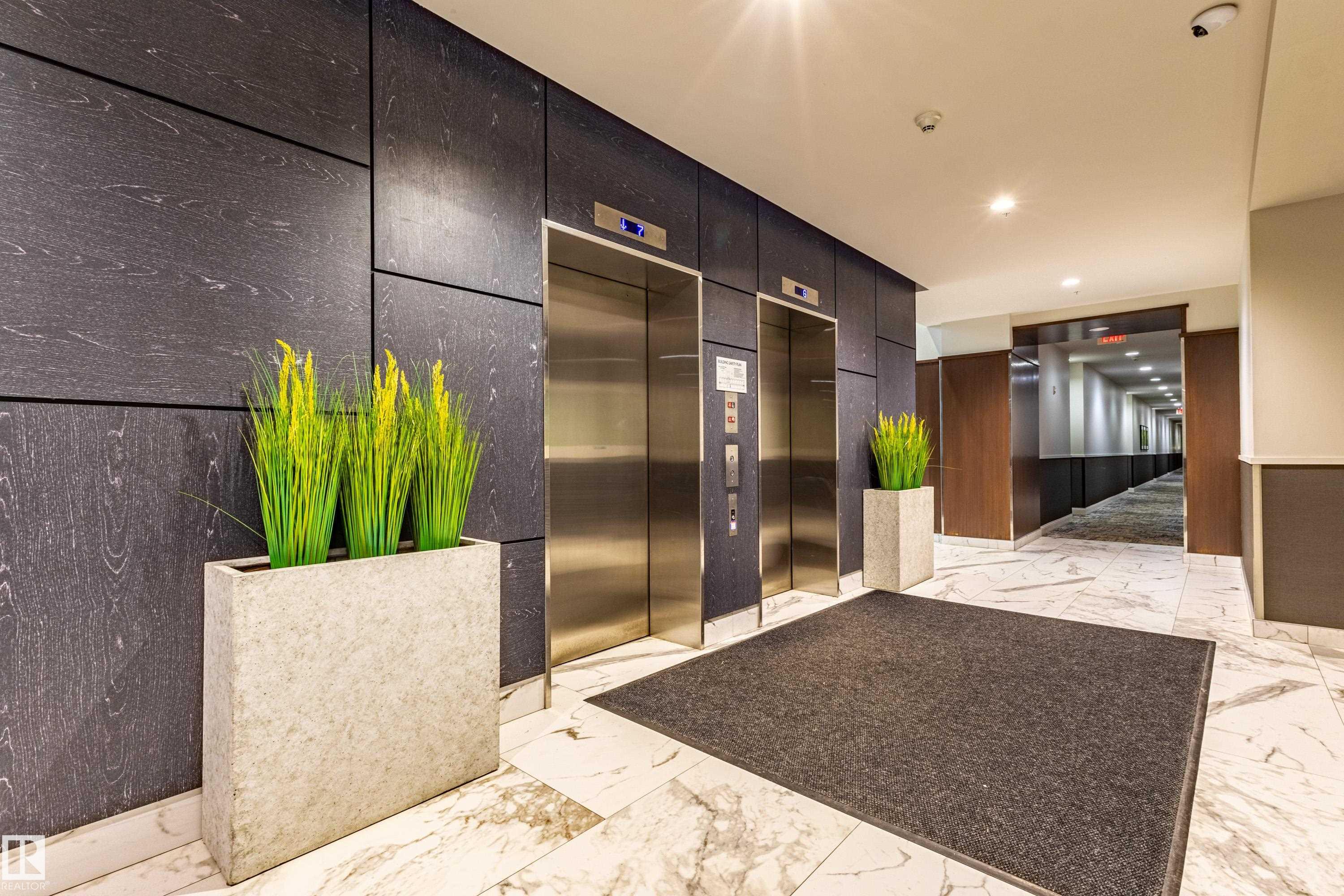 Welcome to this beautifully maintained 970 sq.ft. 2-bedroom, 2 full bathroom unit in One Century Park! This south-facing home offers abundant natural light and a peaceful courtyard view from your private balcony - perfect for relaxing or entertaining. Featuring 9' ceilings and an open-concept layout, the space is both functional and inviting. The kitchen is thoughtfully designed with granite countertops, under-mount sinks, marble backsplash, stainless steel appliances, and ample cabinetry, flowing seamlessly into the living area with a cozy electric fireplace. The primary bedroom features a well-appointed ensuite with dual sinks and a separate shower. Additional highlights include in-suite laundry, heated underground parking, and a secure storage cage. Condo fees include all utilities plus internet access. Ideally located within walking distance to Century Park LRT, shopping, dining, and everyday amenities - perfect for professionals or investors.