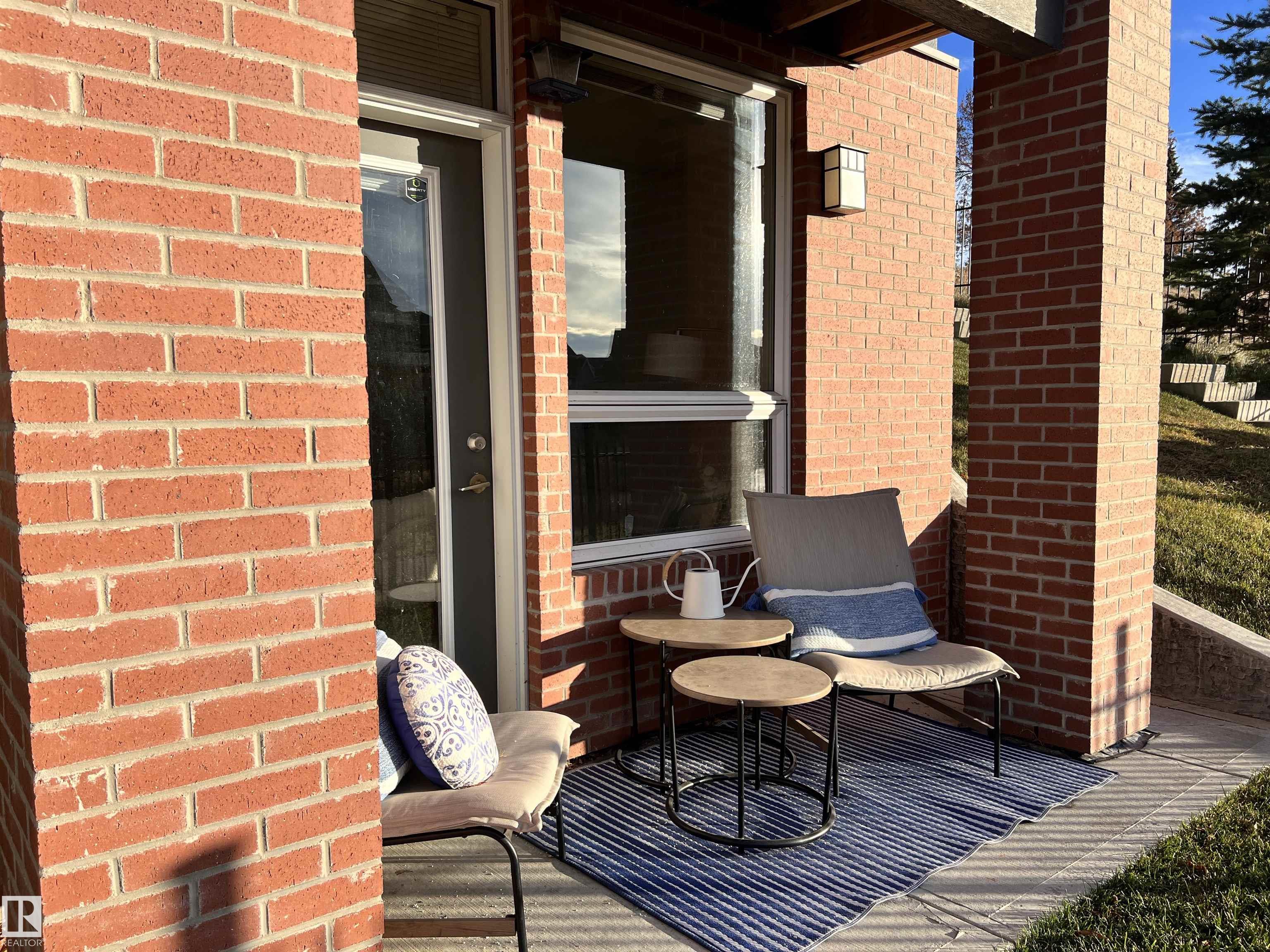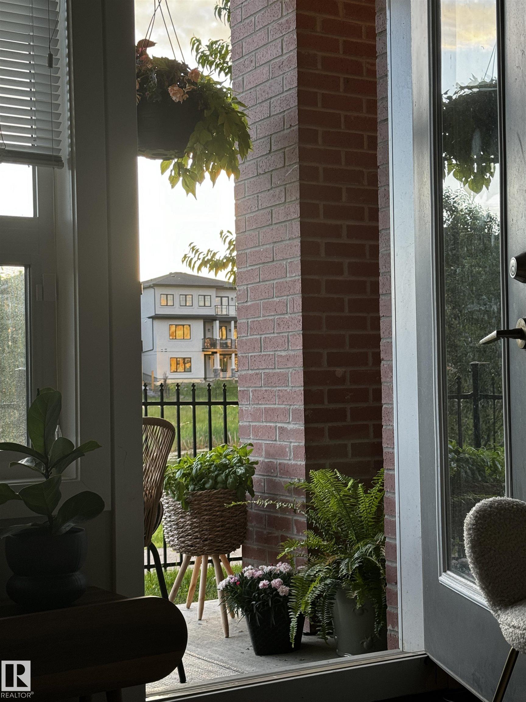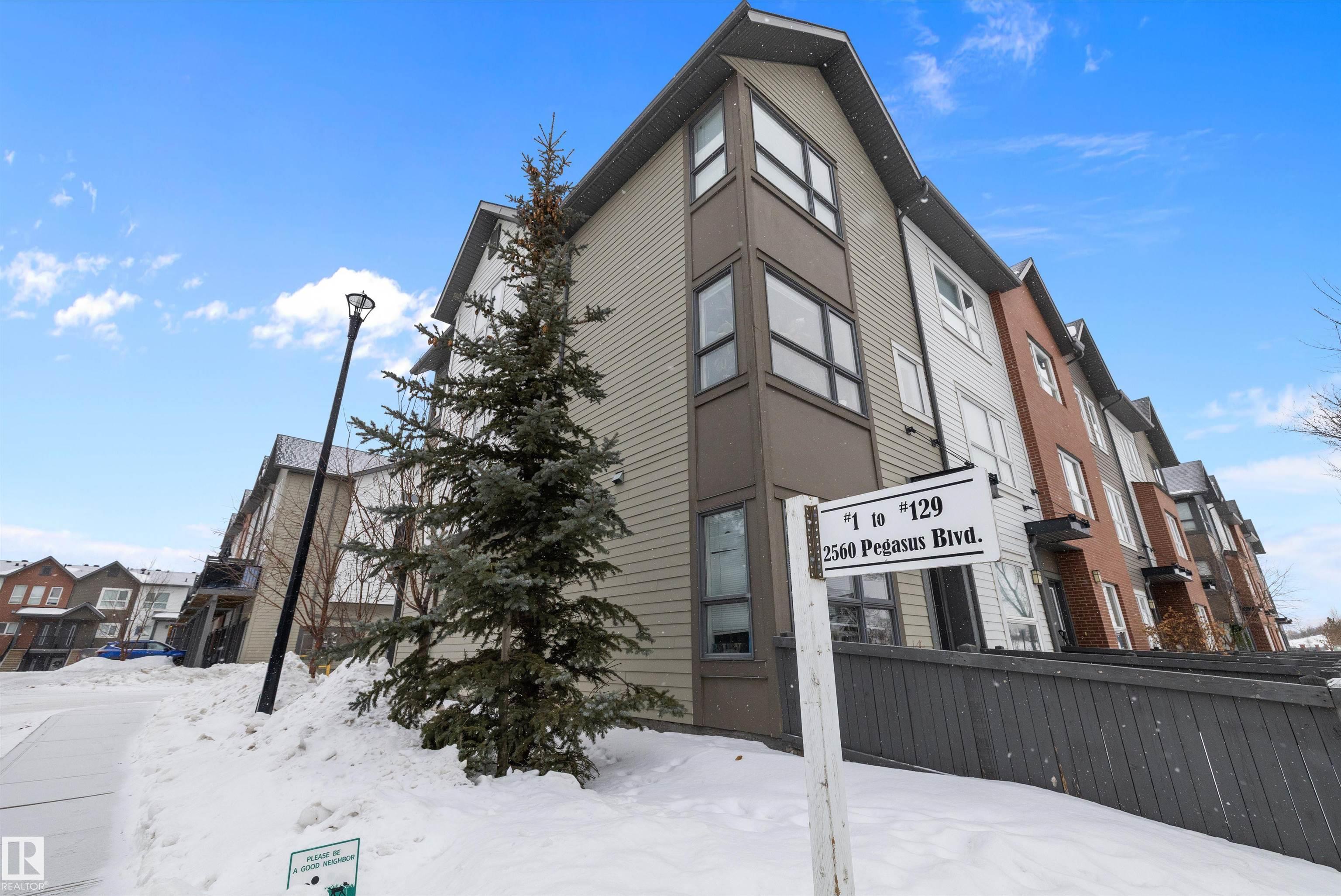 Welcome to this bright and beautifully maintained corner unit townhouse in the sought-after community of Griesbach. Offering nearly 1,000 sq ft of thoughtfully designed living space, this 2-bedroom, 1-bath home features an open-concept main floor with a modern kitchen, spacious living and dining area, and plenty of natural light throughout. One of the standout features is the walk-out patio backing onto a peaceful pond and walking trails, creating a beautiful setting to enjoy morning coffee or evening sunsets. Upstairs you'll find two generously sized bedrooms, a full bathroom, and convenient upper-floor laundry, while the primary bedroom also features its own private balcony. Located in one of Edmonton's most desirable communities, surrounded by parks, lakes, and trails with easy access to shopping, transit, and downtown, this home offers the perfect blend of comfort, privacy, and scenic living.