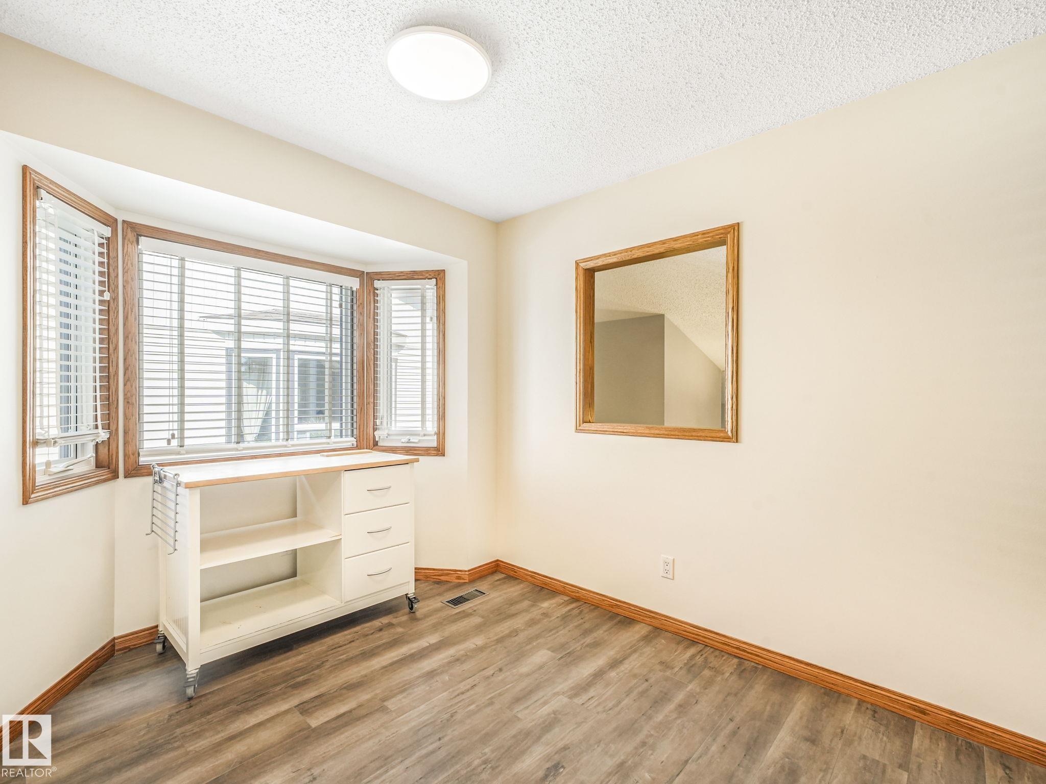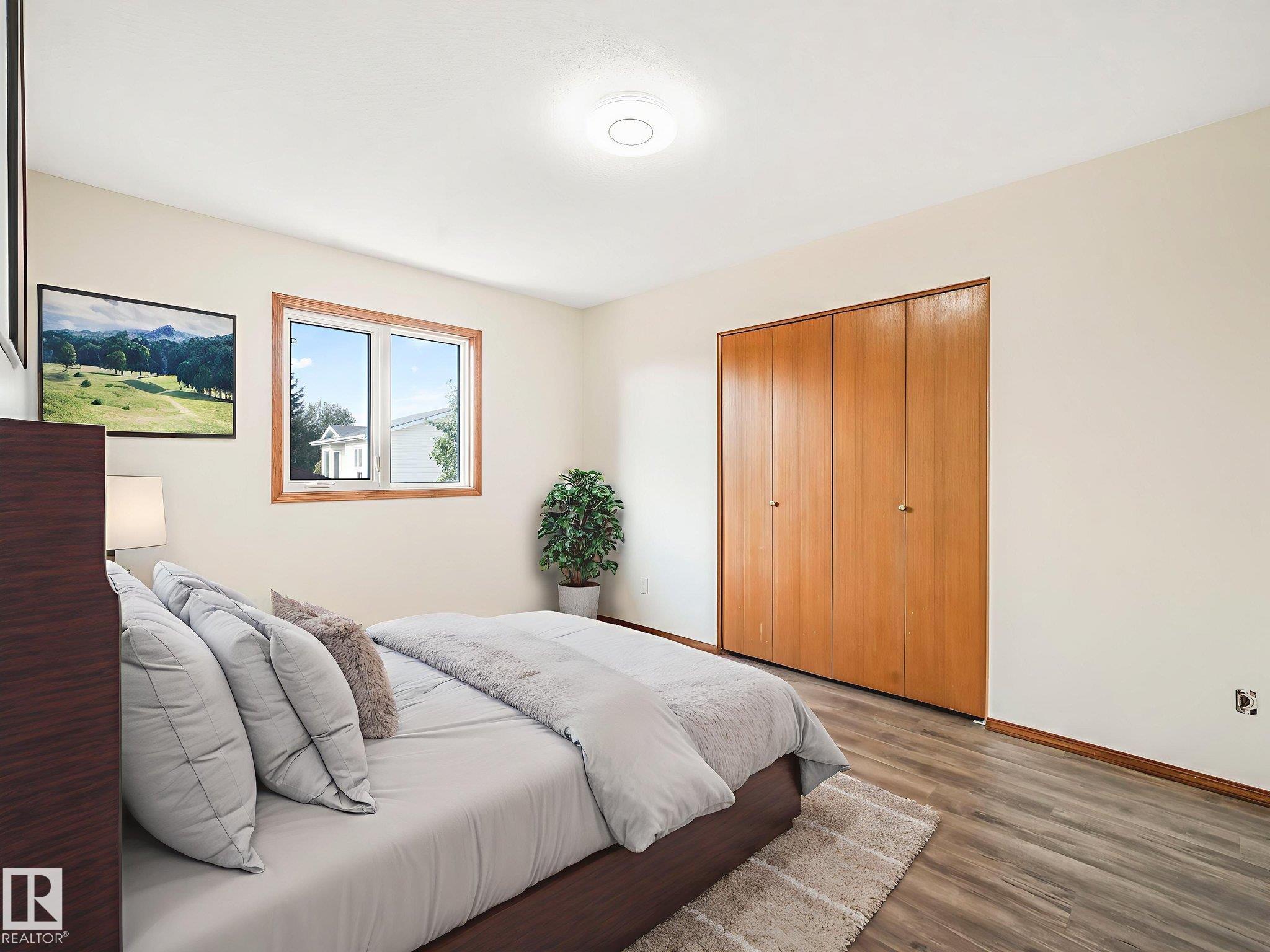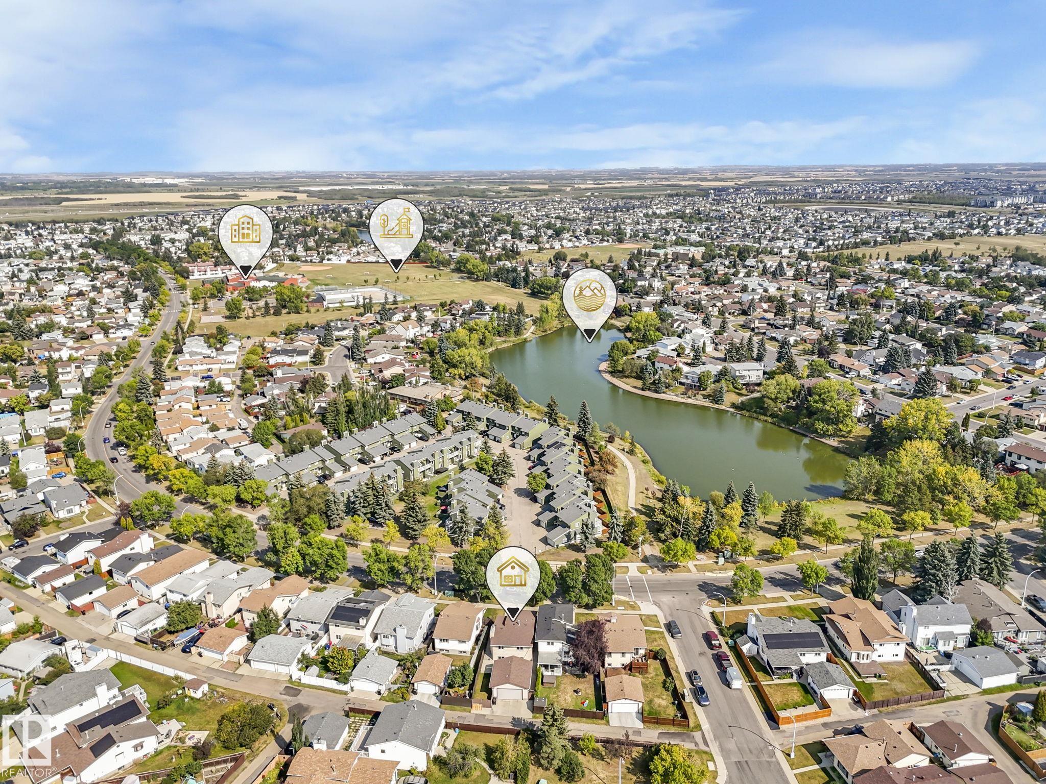 Step into this immaculately cared for 1,120 sq. ft. 3-level split, ACROSS from ANDORRA LAKE. The home offers BRAND NEW LUXURY VINYL PLANK THROUGHOUT and modern comfort. Featuring 3 spacious bedrooms total, the upper level boasts two large rooms, including a primary with a cheater door to the main 4 Pc bathroom accessed through a WALK-IN CLOSET with ORGANIZERS. The airy VAULTED CEILING enhances the MAIN FLOOR LIVING ROOM extending to the upper floor dining area next to the kitchen with QUARTZ COUNTERTOPS, NEW FRIDGE & DISHWASHER. The lower level hosts a cozy family room with a NEW ELECTRIC FIREPLACE, NEW HIGH EFFICIENCY FURNACE and NEWER HOT-WATER TANK. The third bedroom, a 3 Pc Bathroom, plus a laundry room with sink and plenty of storage in the crawl space. Enjoy year-round comfort with CENTRAL A/C, built-in vacuum . Outside, the OVERSIZED DOUBLE GARAGE, upgraded shingles, windows, concrete patio & walkways add to the value. A perfect blend of space, style, and upgrades--all move-in ready!