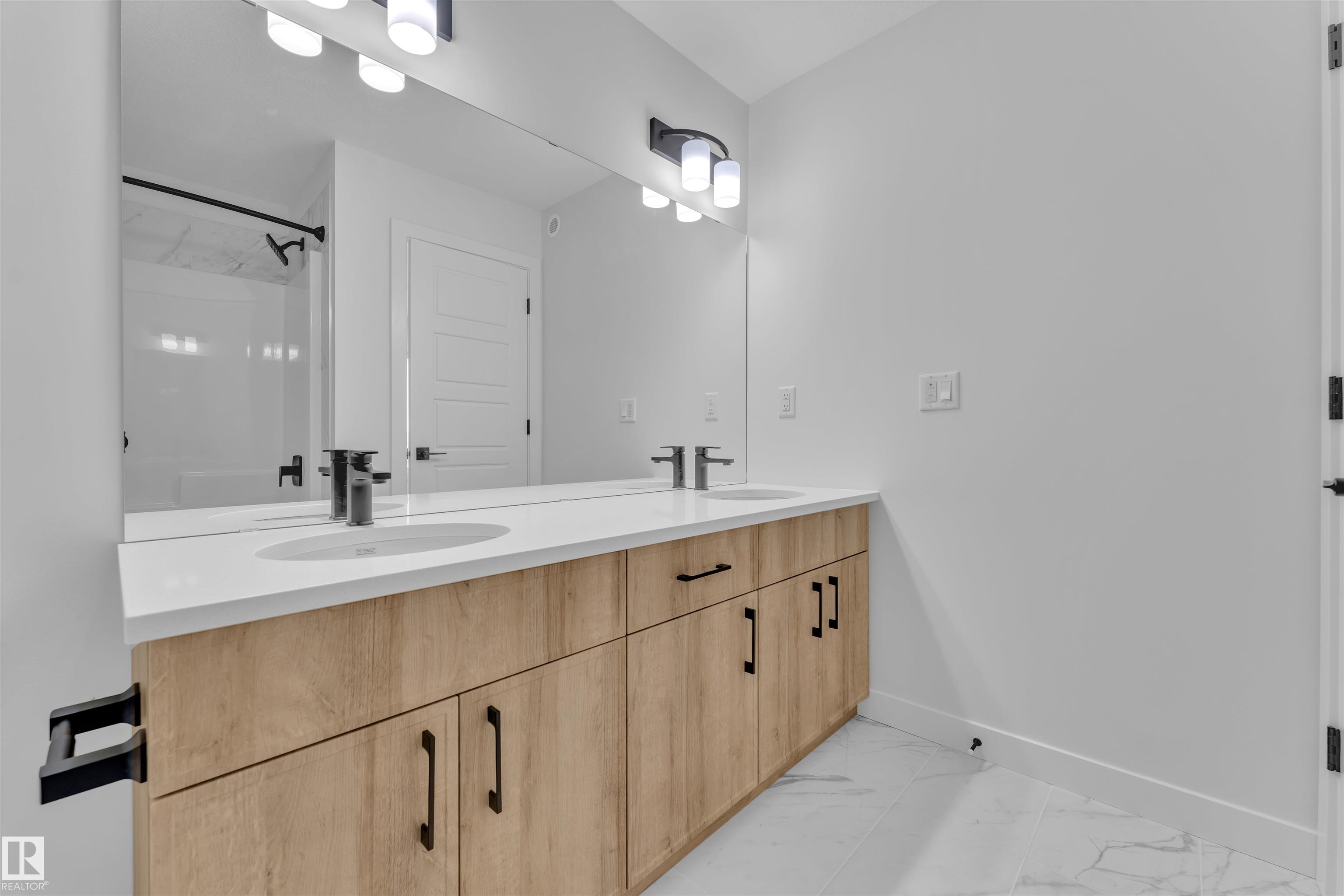 STUNNING EXECUTIVE 2 STOREY! Built by San Rufo Homes, the Brody model delivers 1,657 sq ft of upscale living with 3 bedrooms, 2.5 baths & a central bonus room. Designed with a 9-ft foundation & SIDE ENTRANCE for future possibilities, this home is loaded with high-end finishes. The open main floor showcases quartz counters, designer lighting, premium flooring & elegant 2-tone cabinetry. A chef's kitchen with stylish backsplash, island & pantry flows seamlessly to a sun-filled living room anchored by a sleek linear fireplace. Upstairs, retreat to the spa-inspired primary with walk-in closet & 5-pc ensuite featuring dual sinks & luxury finishes. Two more bedrooms, family bath & laundry complete the level. With its SEPARATE ENTRANCE basement, this home offers exceptional potential. Surrounded by scenic trails & park space--where refined style meets modern living!