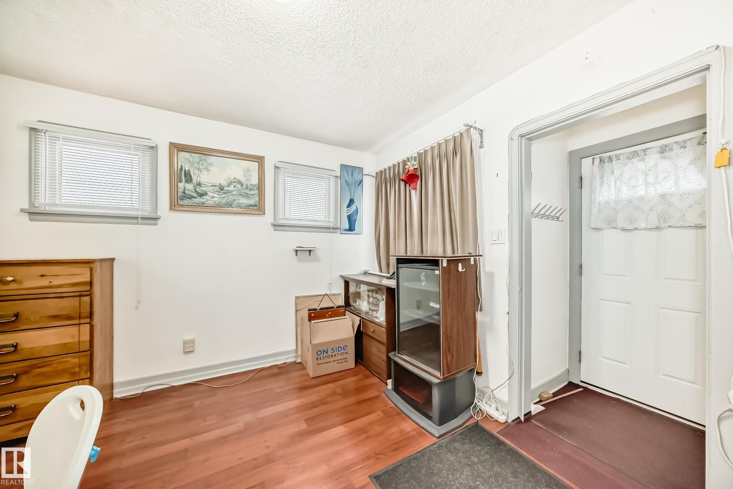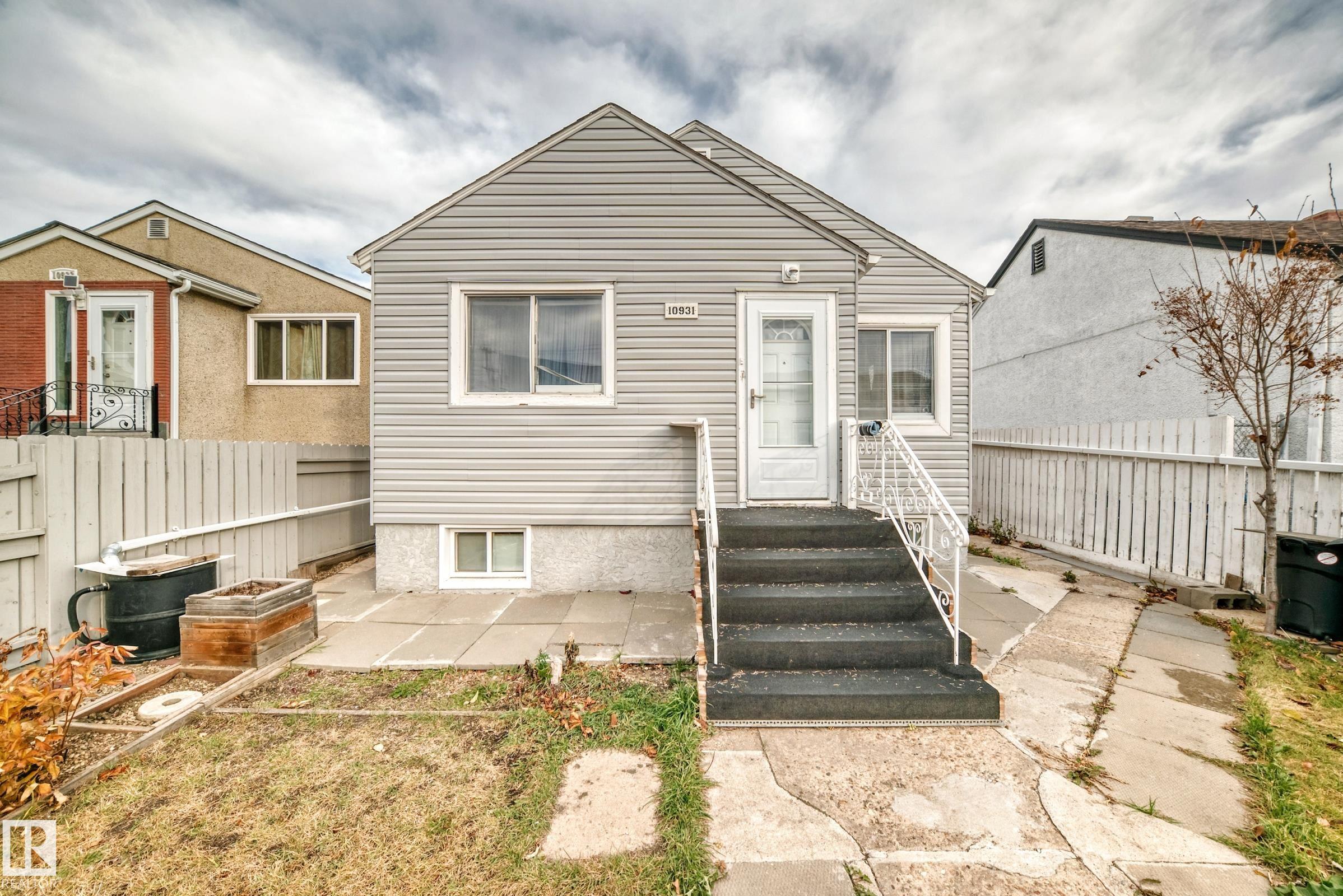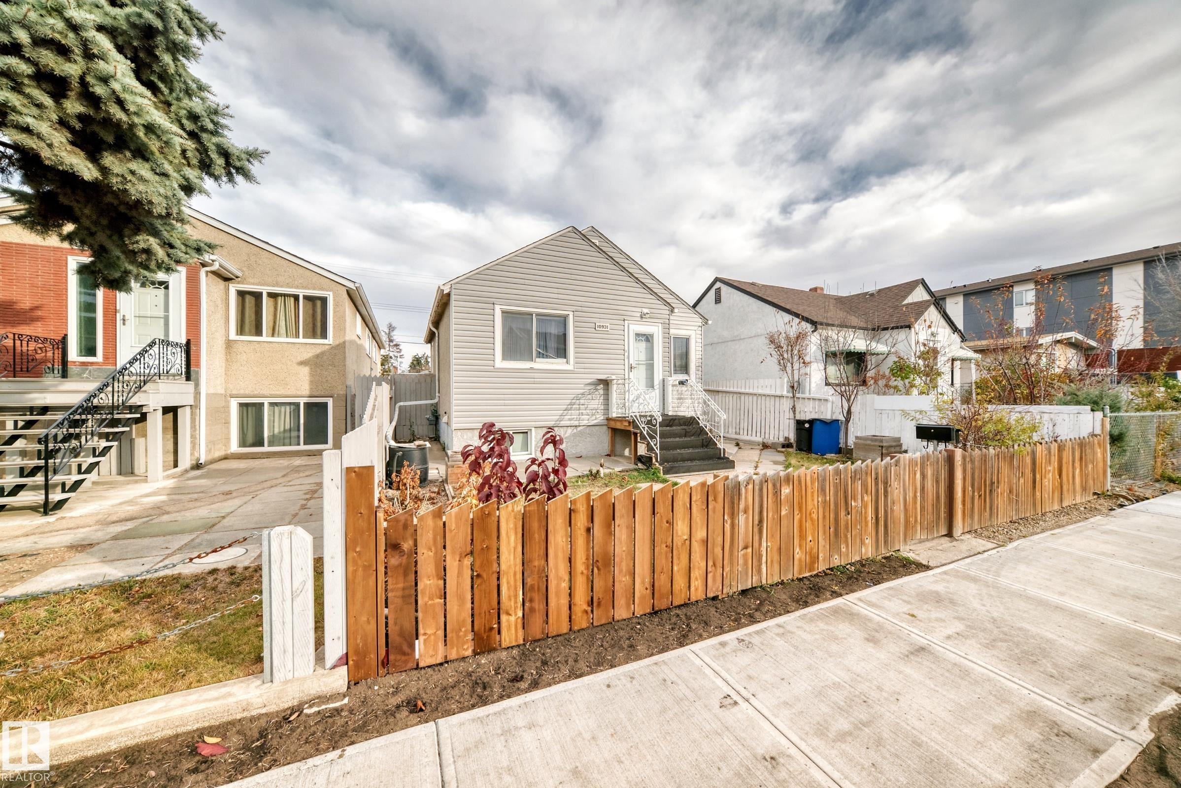 Calling All Investors & First-Time Home Buyers! Don't miss this affordable single-detached home in a highly convenient location, just minutes to public transportation, schools, shopping, Royal Alexandra Hospital, downtown, 97 Street, Yellowhead Trail & all major amenities! Main floor features a living room with bright window and laminate floorings throughout. The cozy kitchen offers white-color cabinets & dining area. You'll also find 2 bedrooms & a 3-piece bathroom on this level. Back door entrance leads to the 80% finished basement, which includes a 3rd bedroom, a 4-pc bathroom, storage space, laundry & utility room, offering excellent potential for added living area. Back yard is landscaped and fenced with back alley access, providing spaces for parking & high potential to build a future garage. Recent upgrades include: laminate floorings, new stove, and hood fan. This is a fantastic opportunity for investors or anyone looking to start homeownership at an affordable price. Make this house YOURS today!