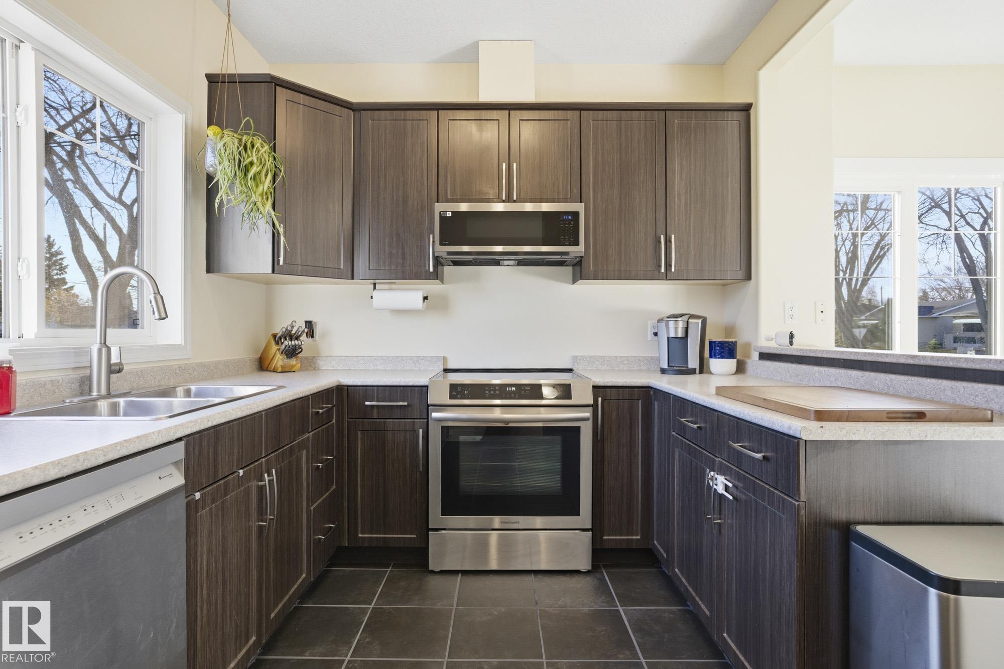 PLATINUM PROPERTY!! Bright & beautifully maintained half duplex on a sunny corner lot with RV parking & single detached garage. The inviting main floor features a cozy gas fireplace, U-shaped kitchen with updated appliances & plenty of natural light. Conveniently located near the Portuguese Bakery, Costco & other great shops, this home offers comfort & convenience in one great package. Upstairs you'll find 3 bedrooms including a primary suite with walk-in closet & 4-pc ensuite. The finished basement adds a rec room, laundry area & bedroom with 3-pc ensuite--perfect for guests or teens. Step outside to a large deck & hot tub--ideal for entertaining or relaxing at the end of the day. The spacious side yard, currently a dog run, offers sunny south exposure & potential for a garden. With RV parking, concrete curbing, tidy landscaping & a generous yard ready for summer fun, the main floor freshly painted and newer appliances this home is truly move-in ready--just unpack & enjoy!