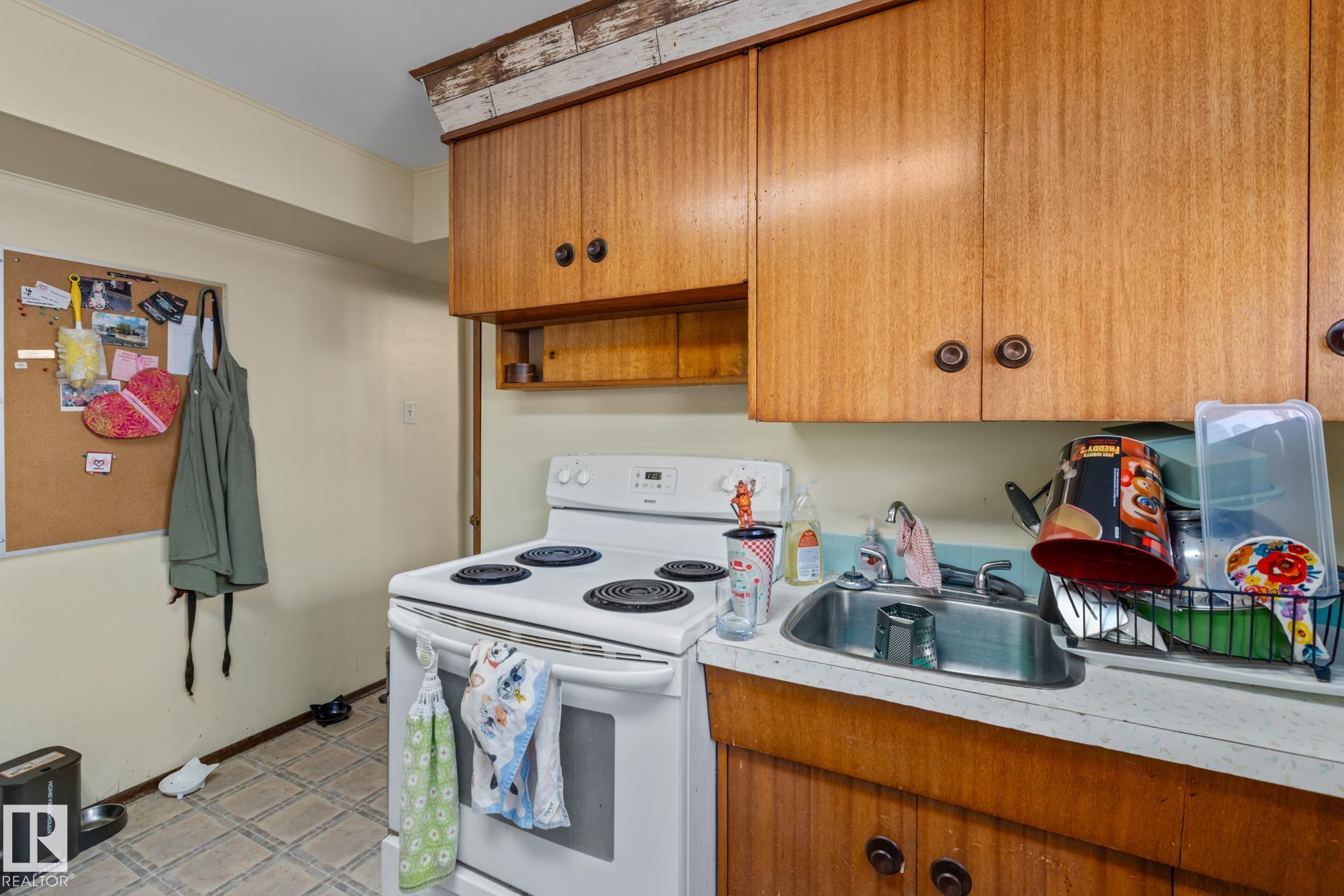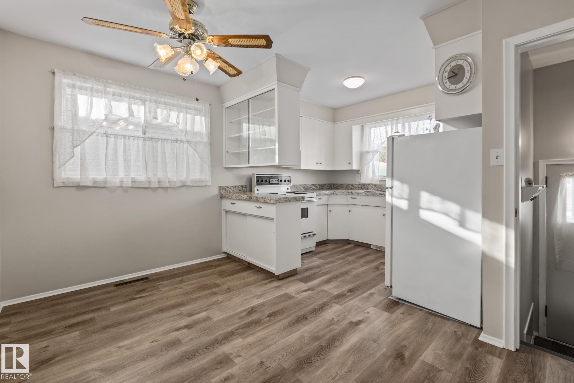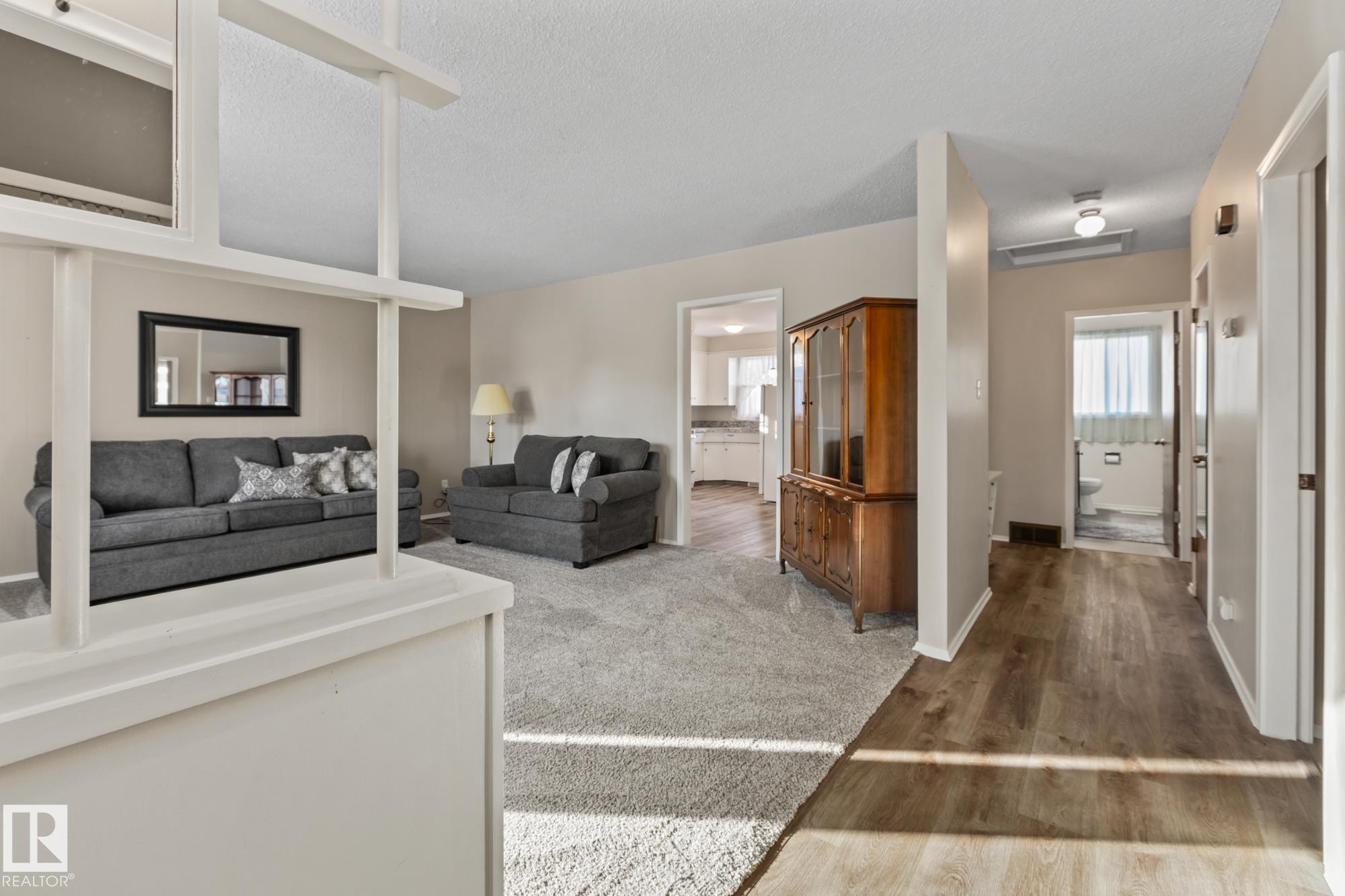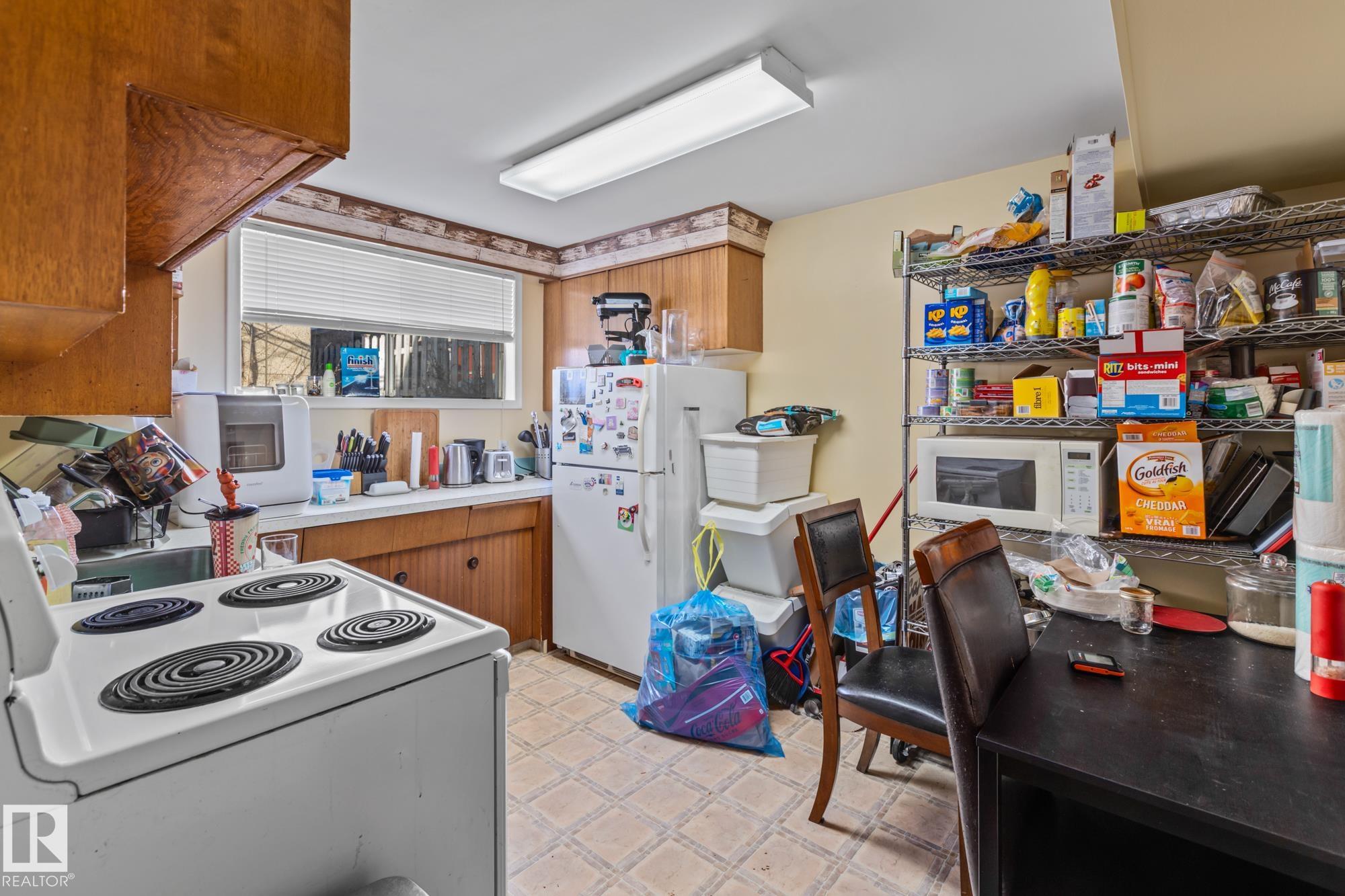Welcome home! Offering over 1100 sq ft of total developed living space including a fully finished legal basement suite, this home is the perfect starter home. The main floor features a bright and spacious living room that flows into a dedicated dining area, creating an inviting space for both everyday living and entertaining. The functional kitchen is efficiently laid out, and three well-sized bedrooms provide comfortable accommodations for family living. A full 4-piece bathroom and welcoming foyer complete the main level. The fully developed legal basement suite offers its own kitchen, a large rec/living area, two additional bedrooms, and a 4-piece bathroom, along with laundry and ample utility/storage space. This lower-level suite provides exceptional flexibility and value. The property is further enhanced by a spacious double garage, offering plenty of room for parking, storage, or workspace!