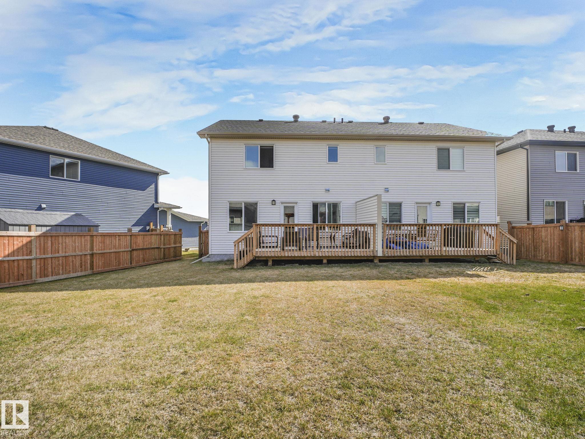 Luxury, Affordability and Style all in one! Look no further in the beautiful , highly desirable neighborhood of Schonsee! This stunning 2 Storey 3 bedroom 2.5 bathroom Half Duplex and double garage is the perfect home ! As you step inside you'll immediately be captivated by the warm & inviting open-concept floor plan ! Gleaming vinyl plank flooring, perfectly complementing the sleek quartz countertops & stainless-steel appliances in the kitchen. Upstairs you'll discover 2 spacious bedrooms alongside the luxurious primary bedroom, complete w/a walk in closet & a lavish 4 piece ensuite. Laundry is conveniently located upstairs! Outside enjoy the sunshine on the deck ,with huge back yard ideal for summer gatherings! This home features a side entrance! Don't miss out on this beautiful home!