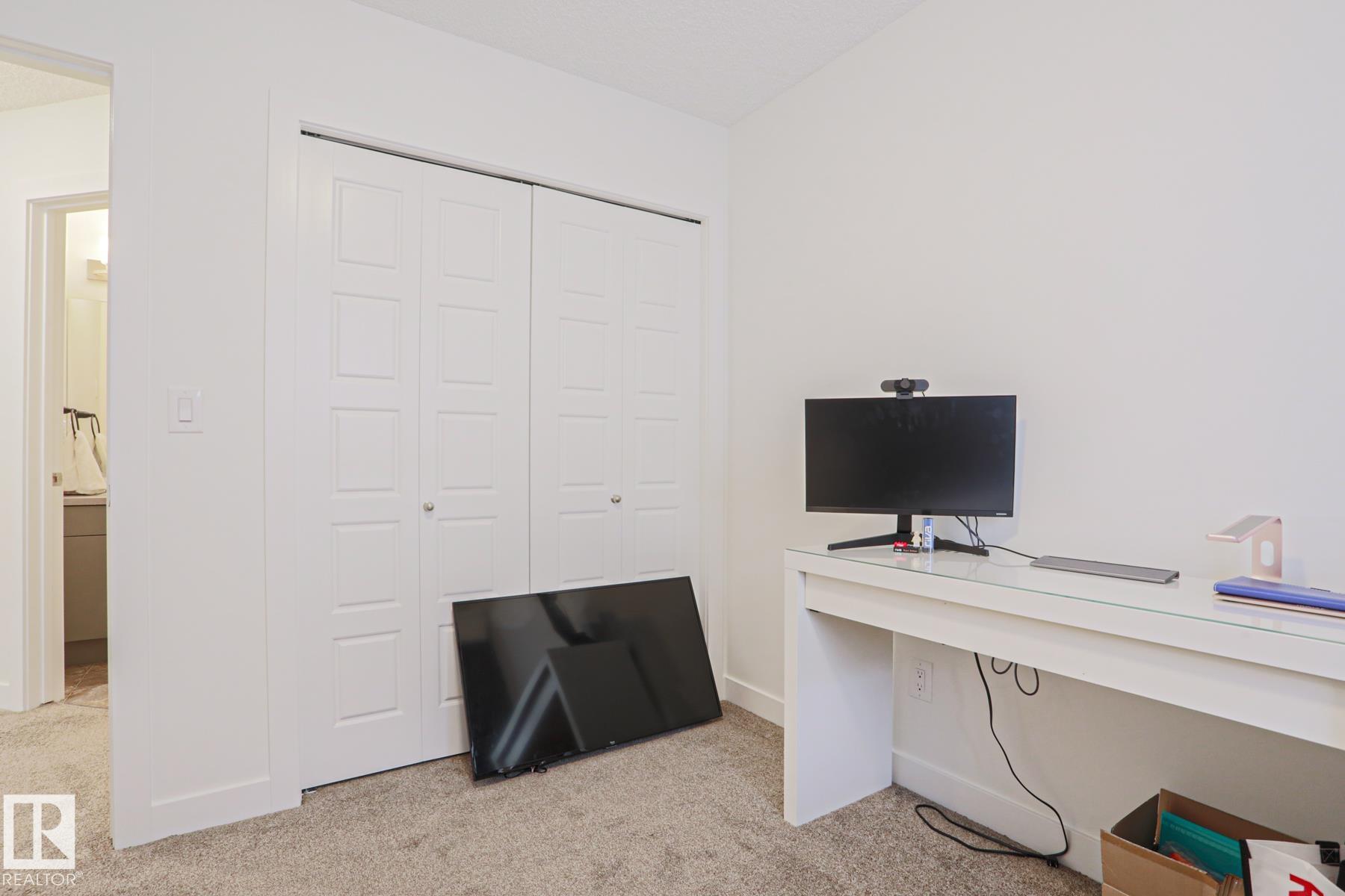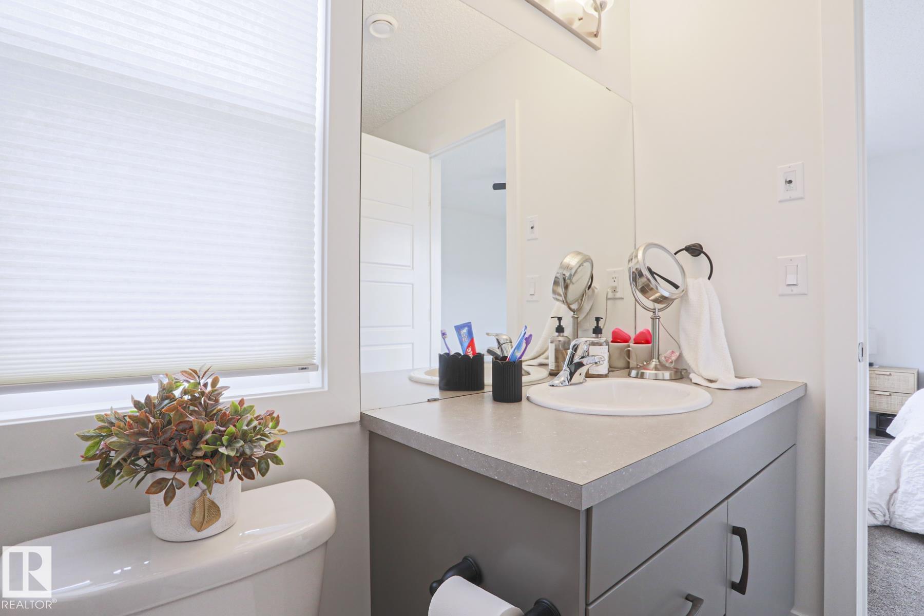 STYLISH TOWNHOME! Located in the sought-after Allentown complex, nestled in upscale Schonsee! This bright and beautifully upgraded 3 bed, 2.5 bath + den home offers the perfect blend of comfort and location--just steps to scenic walking trails, lakes, and a spray park, with quick access to schools, shopping, and major routes. The entry level features a double attached garage, versatile den/office, and ample storage. The open-concept second floor is ideal for entertaining, with a front-facing balcony, 2pc bath, and a stunning chef's kitchen showcasing tall cabinetry, granite countertops, peninsula island, and high-end stainless steel appliances. The sun-filled living room boasts oversized windows, a sleek linear fireplace, and custom built-ins. Upstairs offers two spacious bedrooms, a 4pc family bath, and a large primary retreat with walk-in closet and 3pc ensuite. Low condo fees, PET FRIENDLY and maintenance-free living complete this exceptional home! WELCOME HOME!
