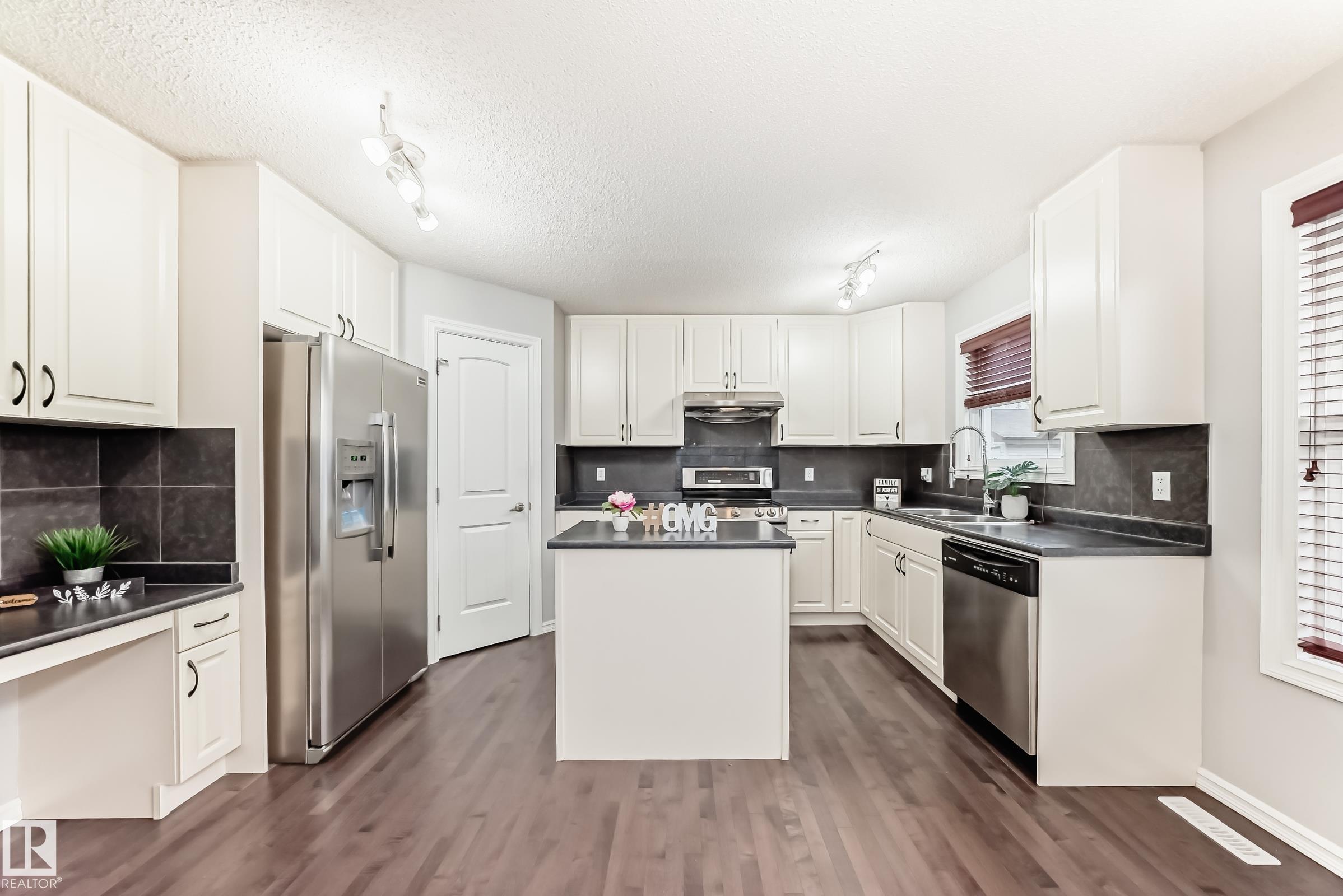 Welcome to this stunning, 1755 sqft, 4 bedrooms, den room, 2.5 bathrooms & a double garage home situated in the desirable community of South Terwillegar! This home offering a bright and spacious main floor, highlighted by a large living room with plenty of windows--perfect for everyday living and entertaining. Gourmet chef's kitchen offers centre kitchen island, adjacent to dining area with lots of windows. Convenient main floor den area & 1/2 bath. The upper level features FOUR generous bedrooms and a full bathroom, providing comfort and functionality for the entire family. Master bedroom boasts walk-in closet & a 3pc ensuite. Additional highlights include a double oversized detached garage and a fully landscaped, fenced yard, your private oasis for relaxation & entertainment. This property combines comfort, convenience, and excellent value--ready for its next proud owner. Easy access to public transp/transit/schools/park/playground/shoppings/Henday Dr & all amenities. Quick possession avail. Don't miss!