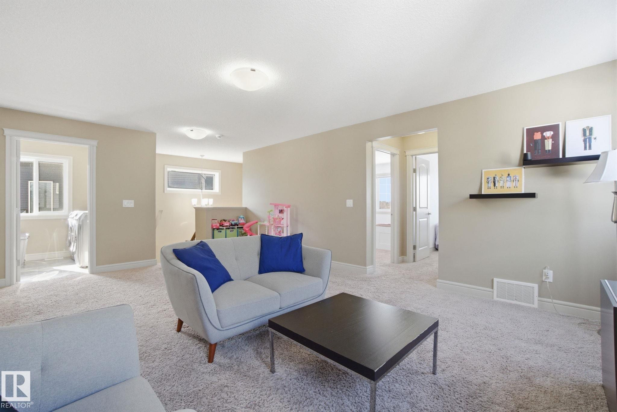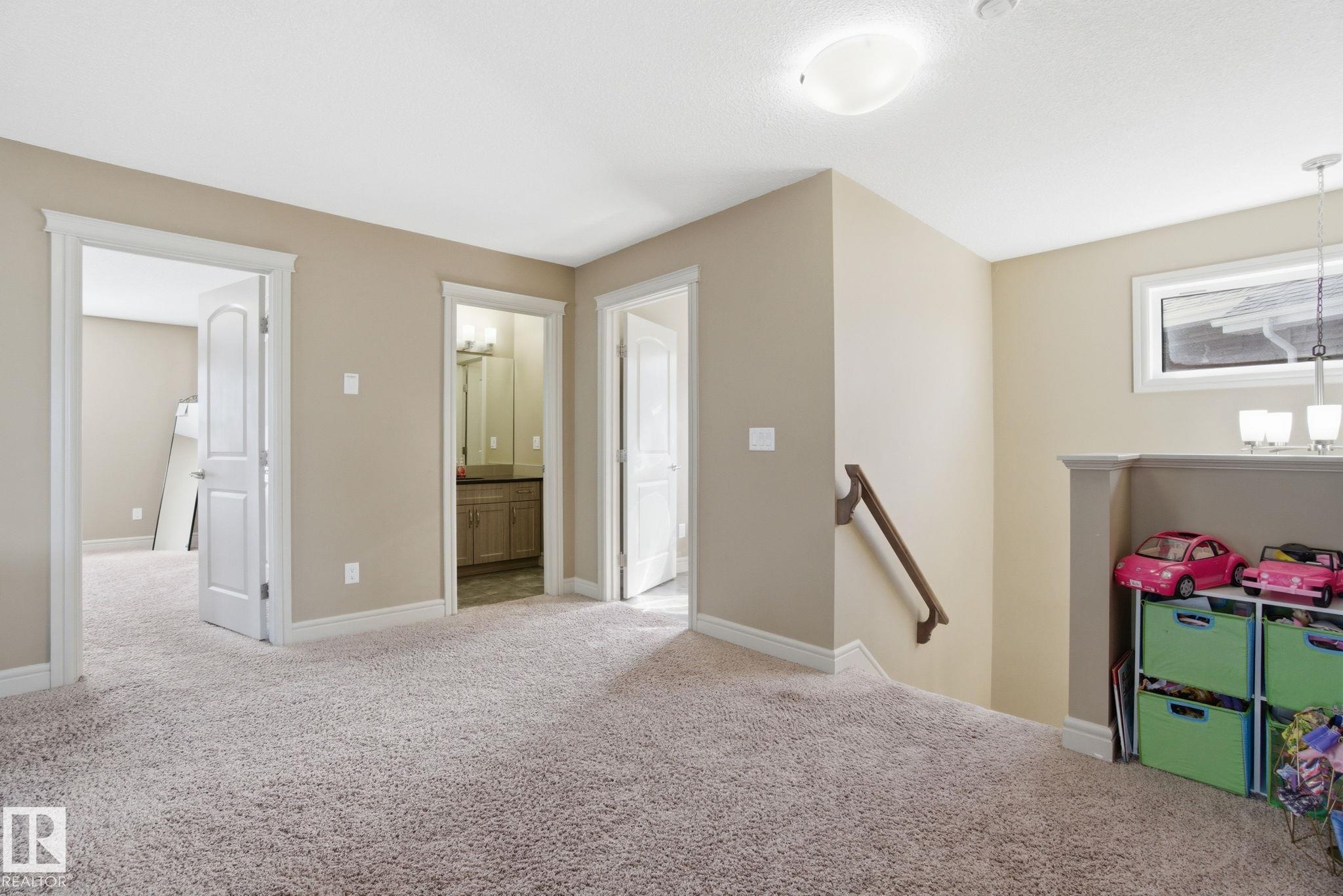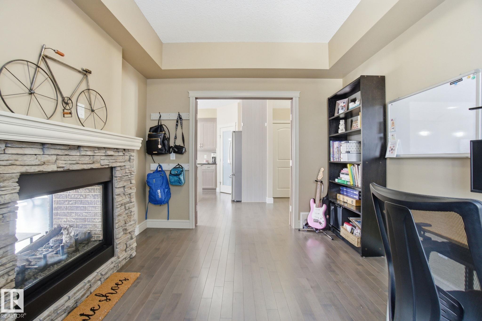 Cul de sac PIE lot backing a POND- Your dream location has arrived in Starling! Also, a heated tandem TRIPLE GARAGE and it's gorgeous to boot! Are you still reading or are you driving to your showing by now? Hardwood floors and 9' ceilings throughout the main. A double-sided gas fireplace separating a French door office from the Great Room which is loaded with windows taking in the big south yard & picturesque view of the pond & nature trails. The kitchen has light modern shaker cabinets, granite counters with a big island, stainless appliances & a pantry. Upstairs is a central bonus room with 3 good sized bedrooms, each with a walk-in closet! The primary has an extra closet (his and hers and hers) & a 5pc ensuite with a beautiful glass & tile shower. There's another full bath and a good sized laundry room upstairs as well. Great summer yard- south facing, lots of grass, nice deck, trampoline. The garage is worth a re-mention. Tandem TRIPLE! Unbelievable location surrounded by ponds & trails. Central A/C