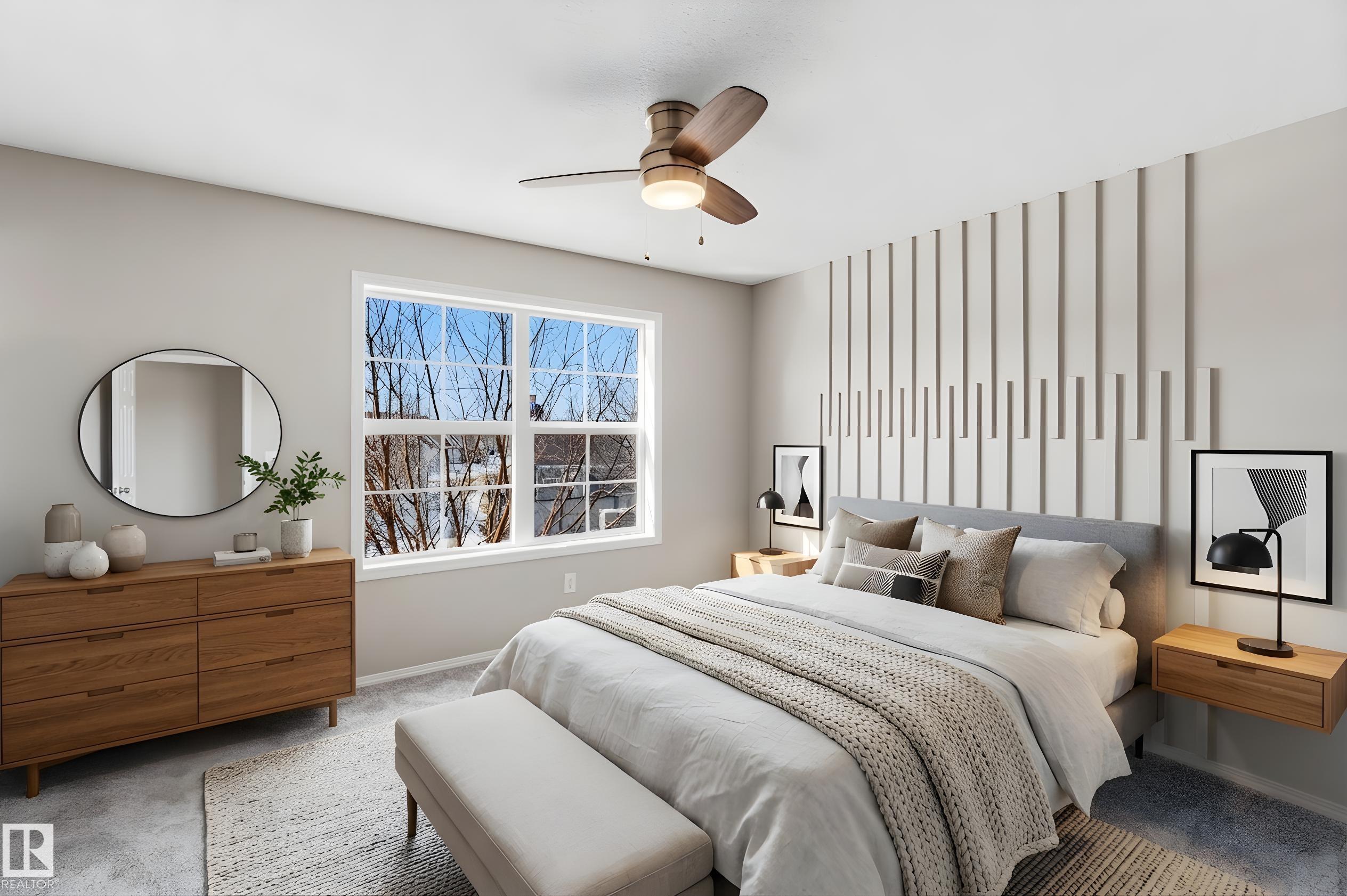 Lake access living in Summerside! Welcome to this fully renovated half duplex, located on one of the quietest streets in the community. Recent upgrades include vinyl plank flooring, carpet, and fresh paint throughout. The kitchen features appliances that were updated in 2021, including a Maytag refrigerator and dishwasher, along with a Frigidaire induction stove and convection microwave hood fan. A large living room window overlooking a tree-lined street fills the home with natural light. Enjoy year-round lake access with swimming, fishing, skating, and more, plus central A/C for summer comfort and a cozy fireplace for winter nights. Upstairs offers a bonus room, perfect for a reading nook or kids' space. The spacious primary bedroom fits a king bed and includes a walk-in closet and 3-piece ensuite. The unfinished basement offers an open layout with an egress window, ready for a future bedroom. Some photos have been virtually staged.