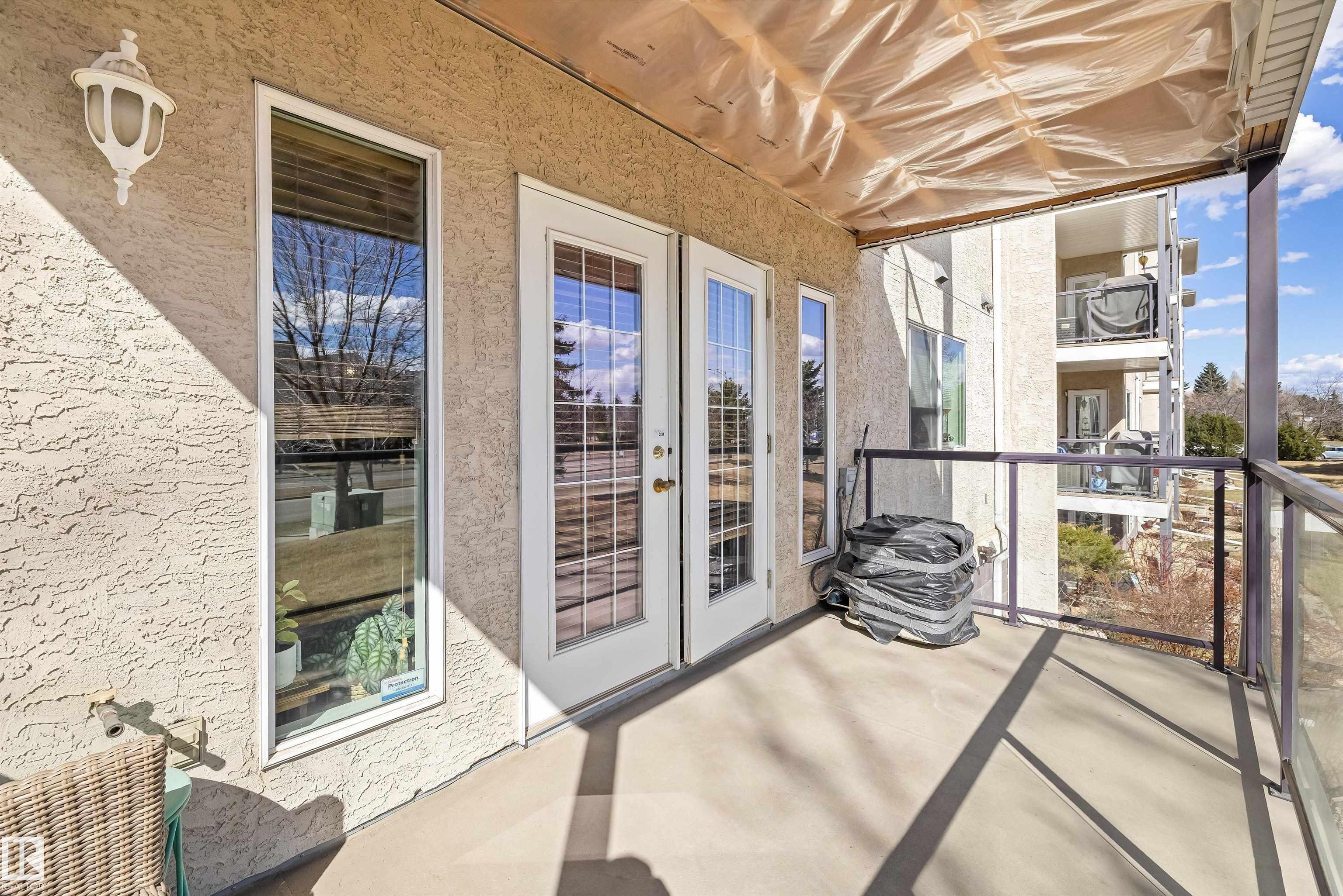 Welcome to Sienna Point, an immaculate 18+ show suite quality condo, in the desirable Tawa community. This beautiful home offers a bright and beautifully maintained 1 bedroom plus den layout, with the den ideal for a home office, guest room, or flex space. Sunny south exposure fills the home with natural light. Garden doors lead to a spacious balcony. Enjoy year round comfort with air conditioning and a cozy fireplace. The large primary bedroom offers excellent space and features two generous closets. The bathroom includes convenient Jack and Jill pocket door access. Ensuite laundry adds everyday convenience. This well managed building features a fitness centre, steam room, sauna, and car wash bay. Includes one underground heated parking stall and storage cage. Just a short walk to the Edmonton LRT, with bus service nearby. Close to parks, shopping, dining, and amenities.