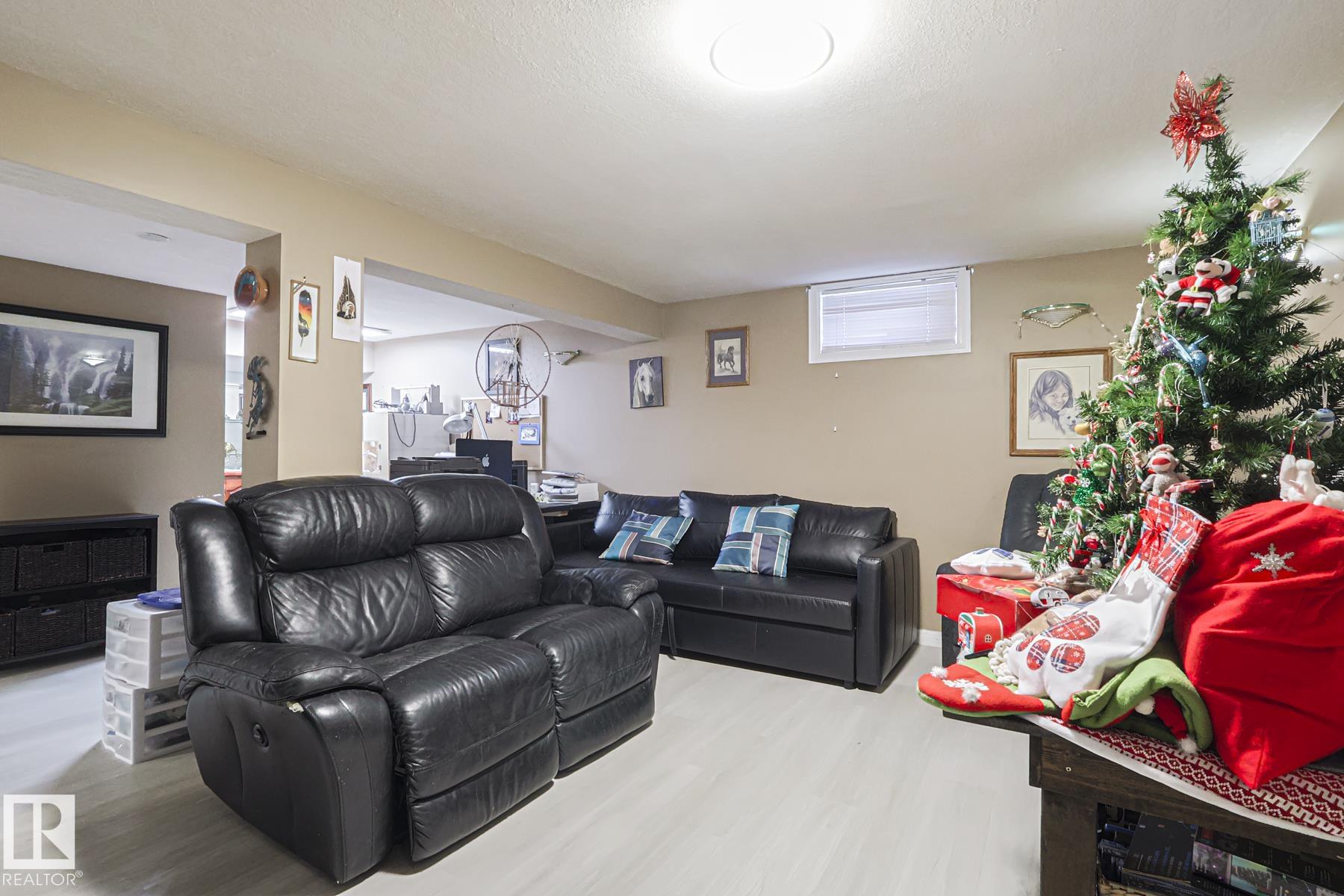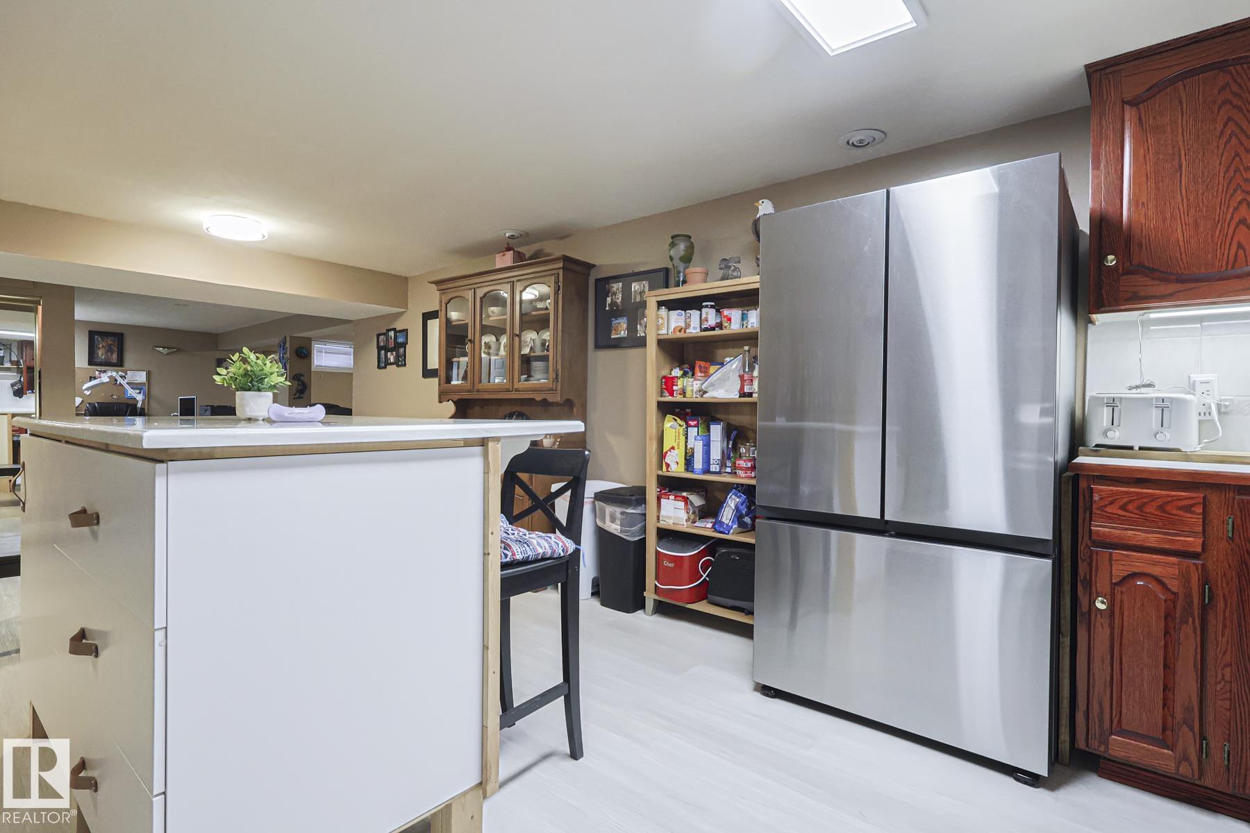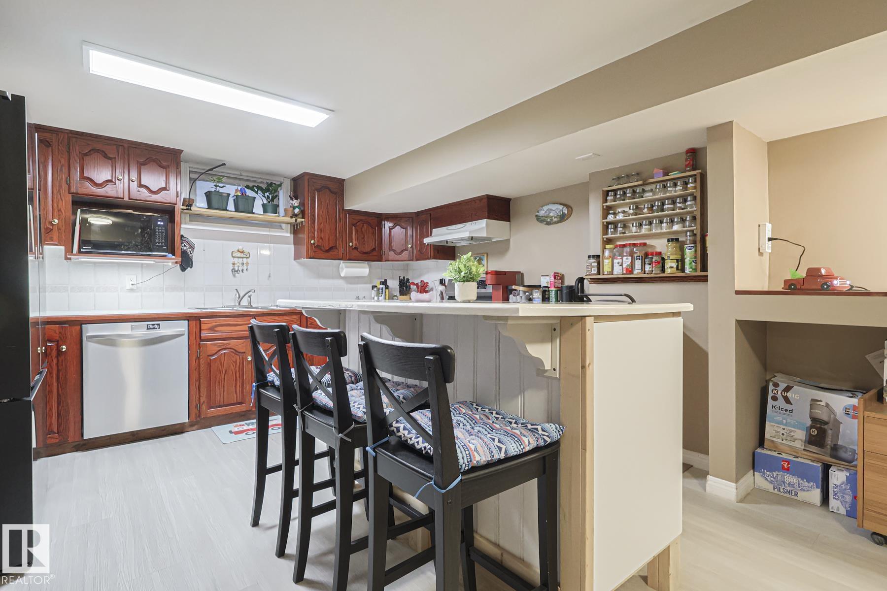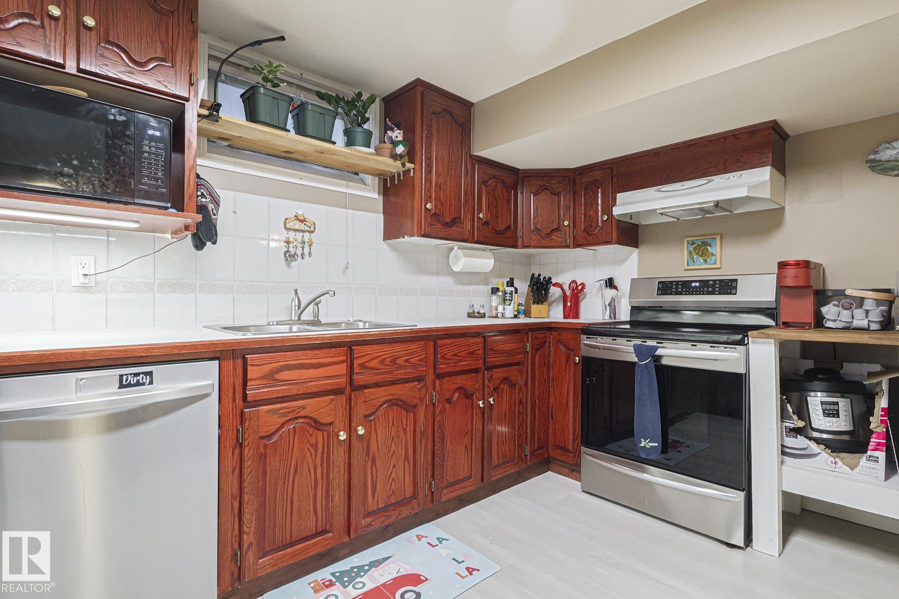 FANTASTIC LOCATION - BACKING THE PARK! This beautifully updated 5 bedroom, 3 bath bungalow with a SEPARATE ENTRANCE in family-friendly Tweedle Place sits on a large lot with direct access to walking trails--privacy and convenience in one! Enjoy peace of mind with numerous upgrades: new lighting, garage heater (2022), stamped concrete patio (2022) and a stunning main bath renovation (2023). Inside, rich hardwood floors lead to a warm, inviting living room with a large picture window and cozy corner wood stove. The elegant dining area flows into the bright, modern kitchen featuring quality cabinetry, island, new refrigerator and loads of workspace. FOUR main-floor bedrooms, 2 FULL BATHS UP (one being the en-suite in the primary). The fully finished basement adds incredible value with a second kitchen, huge island, large living room and updated bath--ideal for extended family or guests. Outside, enjoy a sunny SOUTH-facing yard, gazebo, 2 sheds and an oversized heated garage. A perfect family home--WELCOME HOME!