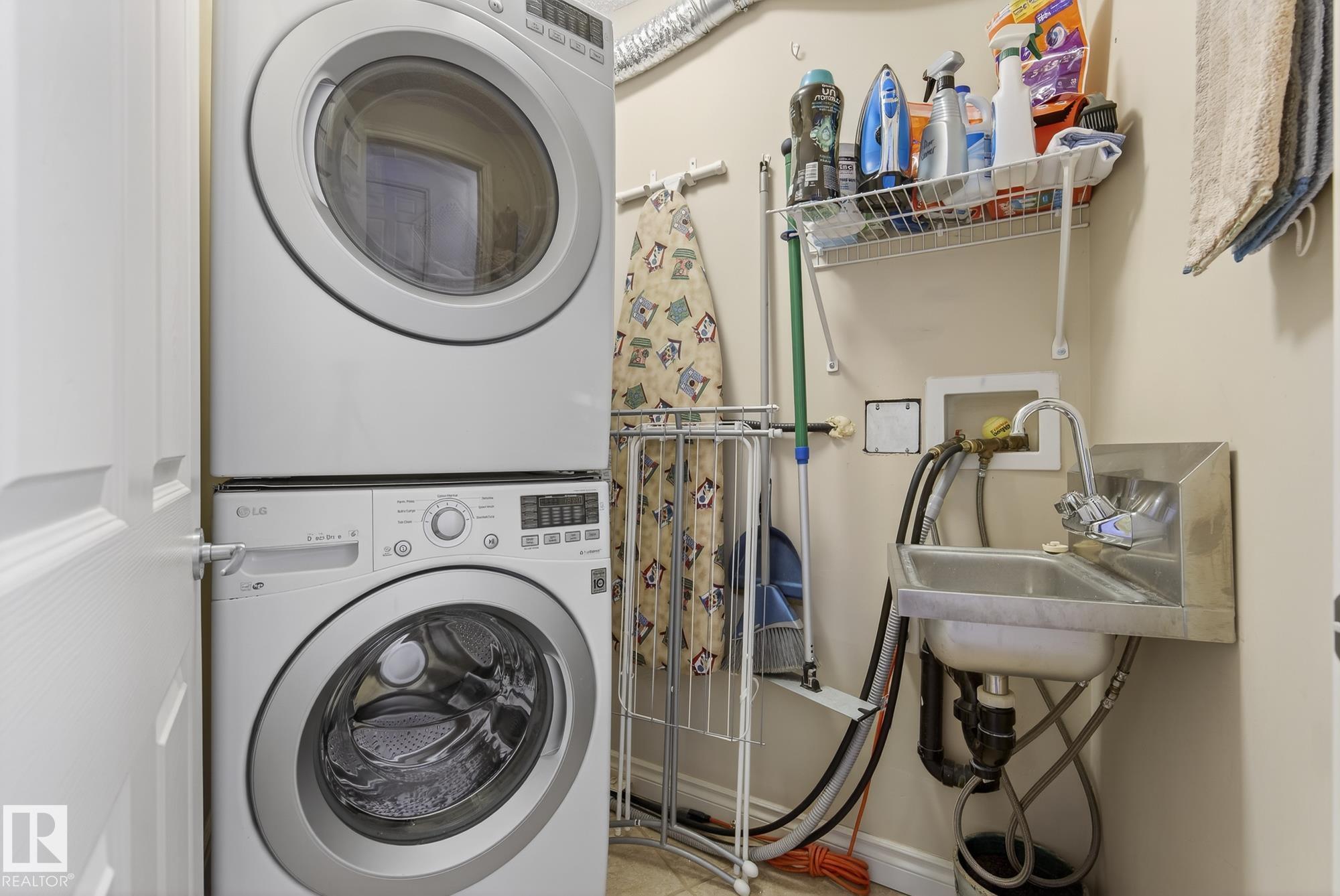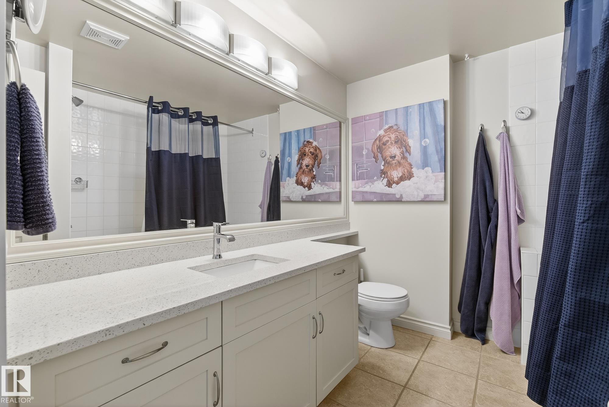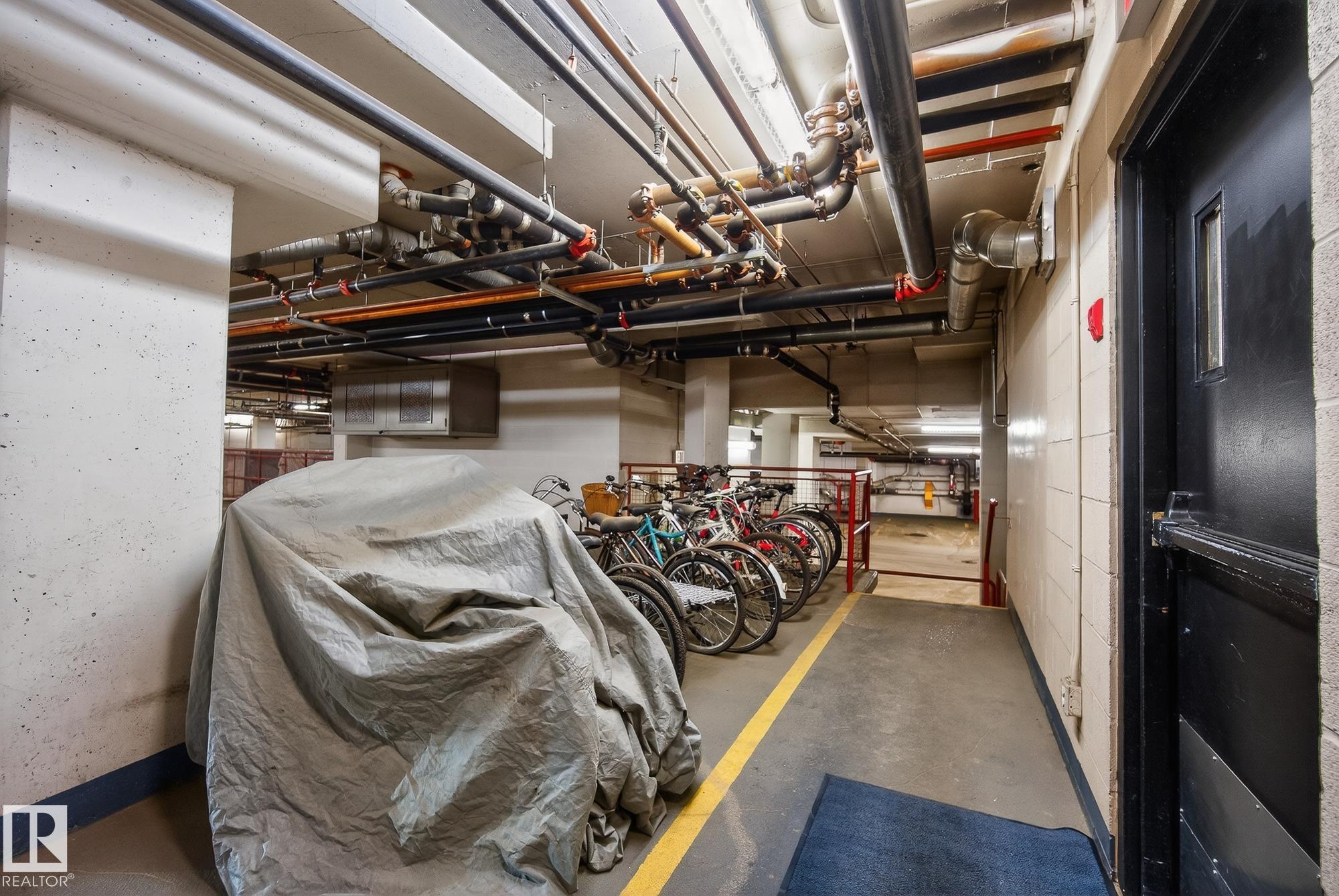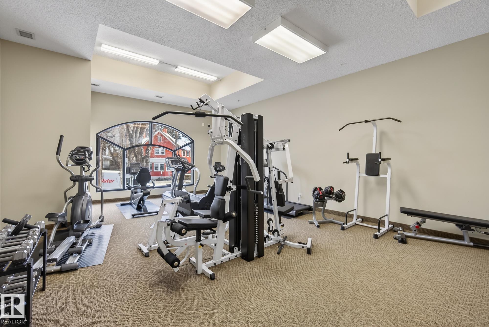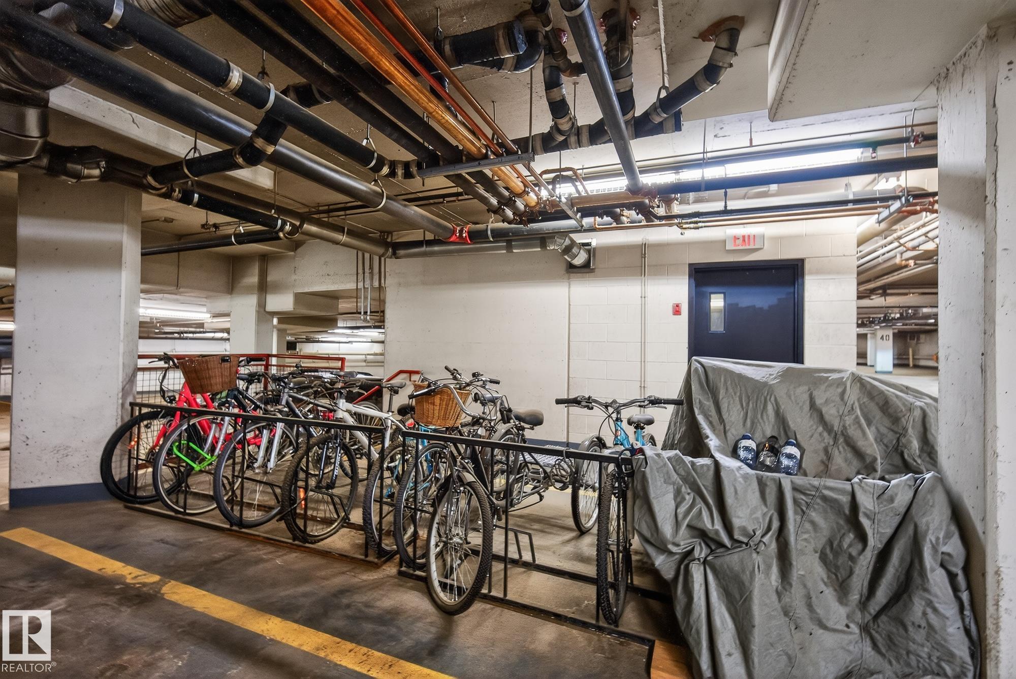 Steps from the River Valley and vibrant 124 Street, welcome to Properties on High Street--one of Edmonton's most sought-after downtown condo buildings. This bright and spacious 1,380 sq. ft. east-facing corner unit offers 2 bedrooms and 2 bathrooms with beautiful views of tree-lined streets and the downtown skyline. Large windows fill the home with natural light, complementing the 9 ft. ceilings, hardwood and tile flooring, and cozy gas fireplace. The beautifully finished kitchen features granite countertops, classic white shaker cabinetry, and eat-up bar. The generous primary suite includes a spacious ensuite, while the second bedroom is ideal for guests or a home office. Enjoy central air conditioning and relaxing or entertaining on the private covered balcony with gas BBQ hookup. This well-managed, pet-friendly building offers an exercise room, courtyard patio, onsite caretaker, and heated underground parking. A rare opportunity to enjoy spacious downtown living in a premier location.