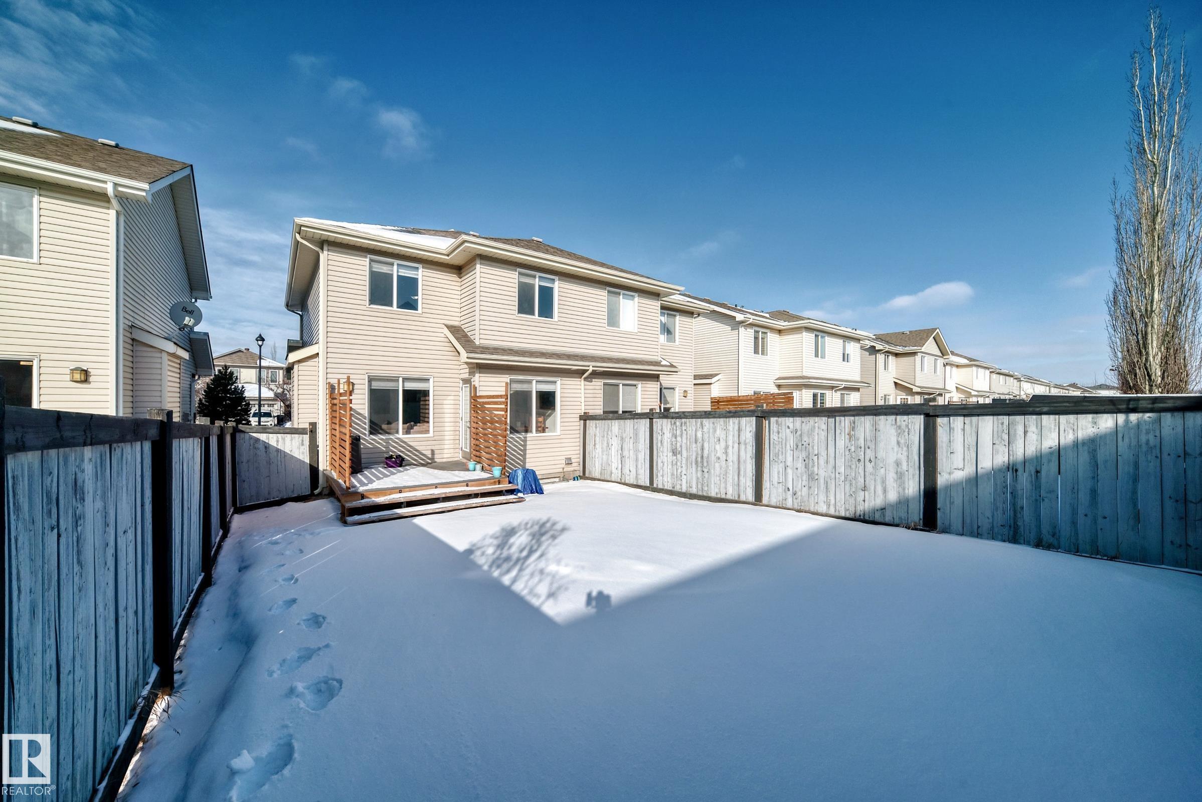 Welcome to this well-maintained 2-storey half duplex in the desirable community of Langdale in Windermere. Offering over 1,400 sq ft with 3 bedrooms and 2.5 bathrooms, this home is perfect for first-time buyers, families, or investors. The main floor features a bright open layout with large windows, a spacious living area, and a kitchen with island, black appliances, and convenient walk-through pantry leading to the mudroom and single attached garage. Upstairs offers three generous bedrooms including a primary suite with walk-in closet and private ensuite. Recent upgrades include renovated bathrooms, a brand new maintenance-free composite deck with custom wood privacy screens, new dishwasher (1 year old with 5-year warranty), and new front-load washer & dryer with 5-year warranty. Located steps from a large park and close to Windermere shopping, schools, restaurants, and amenities.