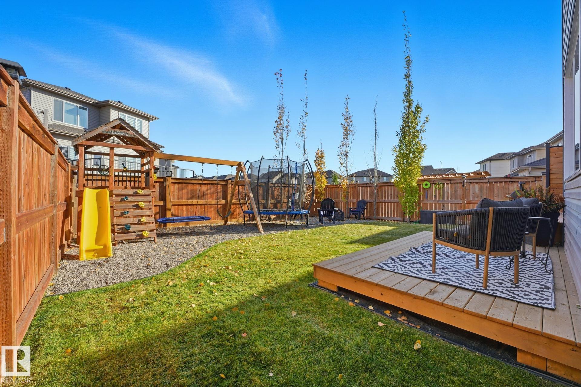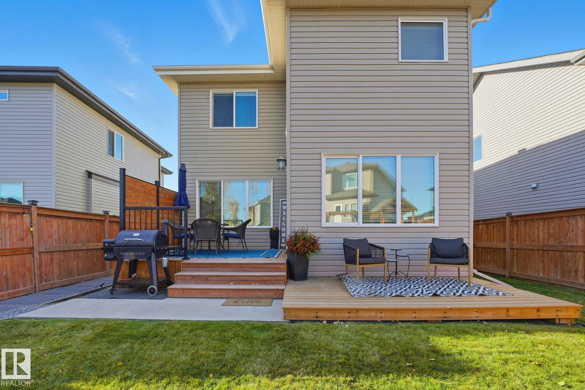 Nestled in the family-friendly South Fort community of Fort Saskatchewan, this property offers the perfect combination of space, style, and functionality. Step inside to an inviting open-concept main floor featuring hardwood and tile flooring, a chef's kitchen with maple cabinetry, granite countertops, a large island with eating ledge, and a walk-in pantry. The bright living area is anchored by a modern linear gas fireplace, ideal for cozy nights at home or entertaining guests. Upstairs, the primary suite feels like a private retreat with its spa-inspired ensuite, complete with double sinks, a corner soaker tub, and oversized walk-in shower. Two additional bedrooms, a spacious bonus room, and convenient upstairs laundry provide all the comforts a growing family needs. An oversized 23x24 double attached garage has plenty of foom for 2 vehicles and more. Located close to parks, trails, shopping, and schools, this move-in-ready home is perfect for modern families seeking comfort and community.