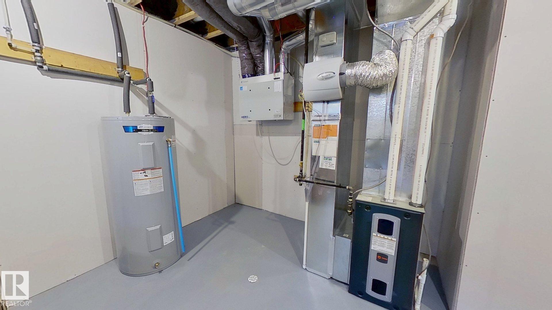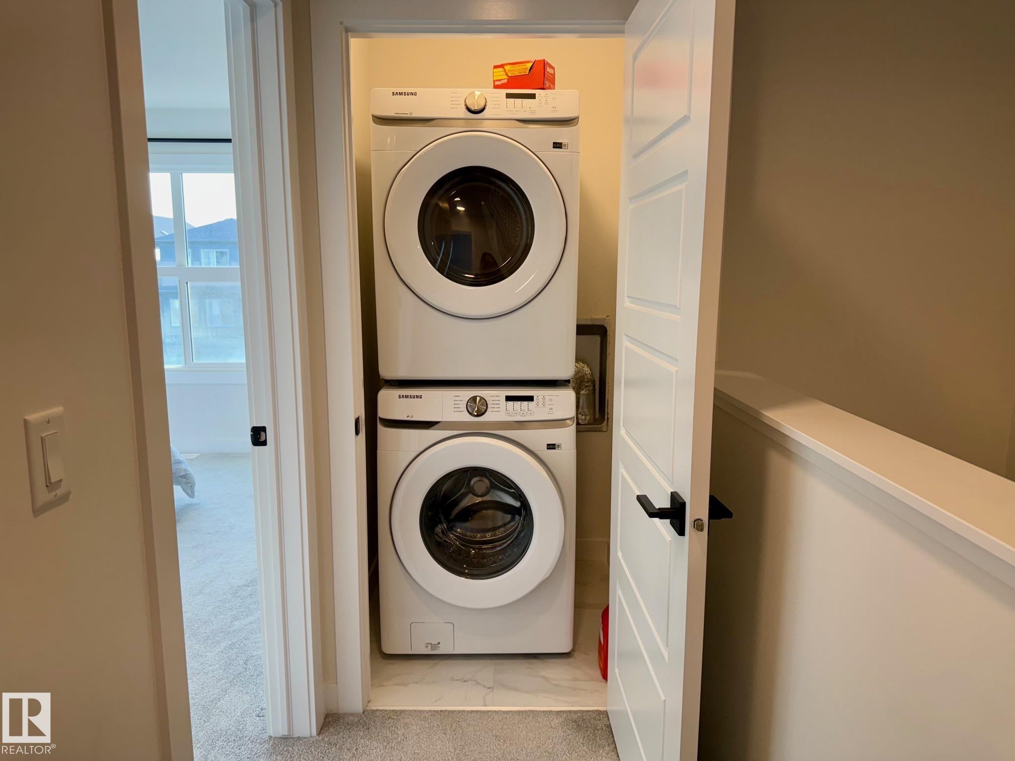 2022-built, 1,410 sq ft two-storey home by Alquinn Homes in Fort Saskatchewan. Main floor features an open-concept layout with luxury vinyl plank flooring, custom MDF shelving/cabinets, electric fireplace, large living & dining area, kitchen island with generous counter space and a 2-piece bath. Upper level offers 3 bedrooms and a 4-piece main bathroom; the master suite includes a 4-piece ensuite and walk-in closet with MDF shelving. Separate side entrance plus rear entrance. Fully-landscaped yard with partial fencing. Full, unfinished basement. Comes with all six appliances and custom window coverings. Oversized double detached garage (suitable for a full-size pickup) with opener and two remotes. Convenient access to the Heartland area without driving through town, close to all K-9 schools, approximately five minutes' drive to the hospital, easy access to highway and major roads.