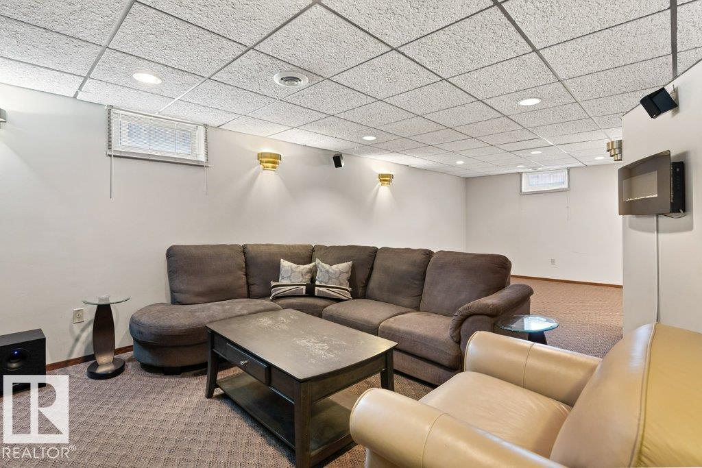 Welcome to this beautiful 1,500 sq ft bungalow on a large, professionally landscaped lot with an oversized attached garage. This open-concept home features many upgrades, including a stunning stone fireplace in the living room and a renovated kitchen with a large pantry, cabinet organizers, soft-close cabinetry, and stainless steel appliances. The main floor offers a spacious primary bedroom with a 5-piece ensuite with soaker tub, plus two additional bedrooms and a 4-piece bath. Downstairs, enjoy a large rec room, three more bedrooms, a 4-piece bath with sauna, and laundry. Step outside to the fully landscaped yard with a composite deck. Additional features include new siding with stone accents, A/C, newer roof and windows. Conveniently located near schools, parks, shopping, and the Henday.