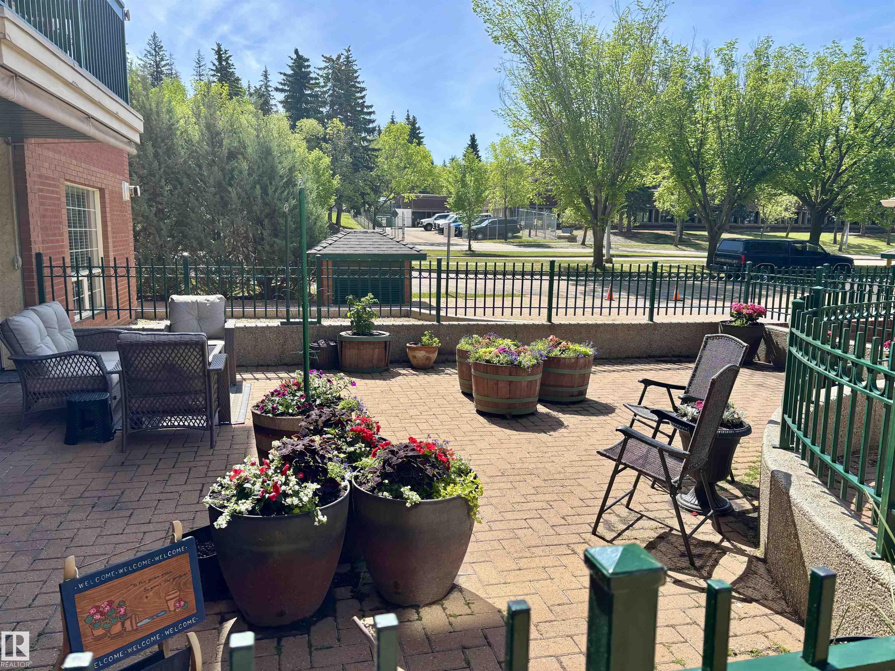 Welcome to Churchill House ! A Beautifully Maintained condo in the Heart of Downtown St. Albert! This spacious home offers the perfect blend of comfort,& location. The west-facing patio is truly something special- large, overlooking the peaceful courtyard, the perfect place to relax, entertain, & enjoy beautiful evenings & breathtaking sunsets. Bright open-concept layout with wall to wall windows and natural light. The kitchen opens seamlessly to a large living area featuring a cozy corner gas fireplace and direct access to your patio. This home offers 2 bedrooms & 2 bathrooms including a primary suite with a 3-piece ensuite with private patio access. The second bedroom includes a Murphy bed, making it ideal for guests or a versatile office space. Laundry with sink ! Underground parking with a storage unit! Churchill House provides a guest suite for visitors, a second floor lounge area & secure bike room in parkade. Minutes from the farmers market, shops, & dining! Truly a wonderful place to call home!!