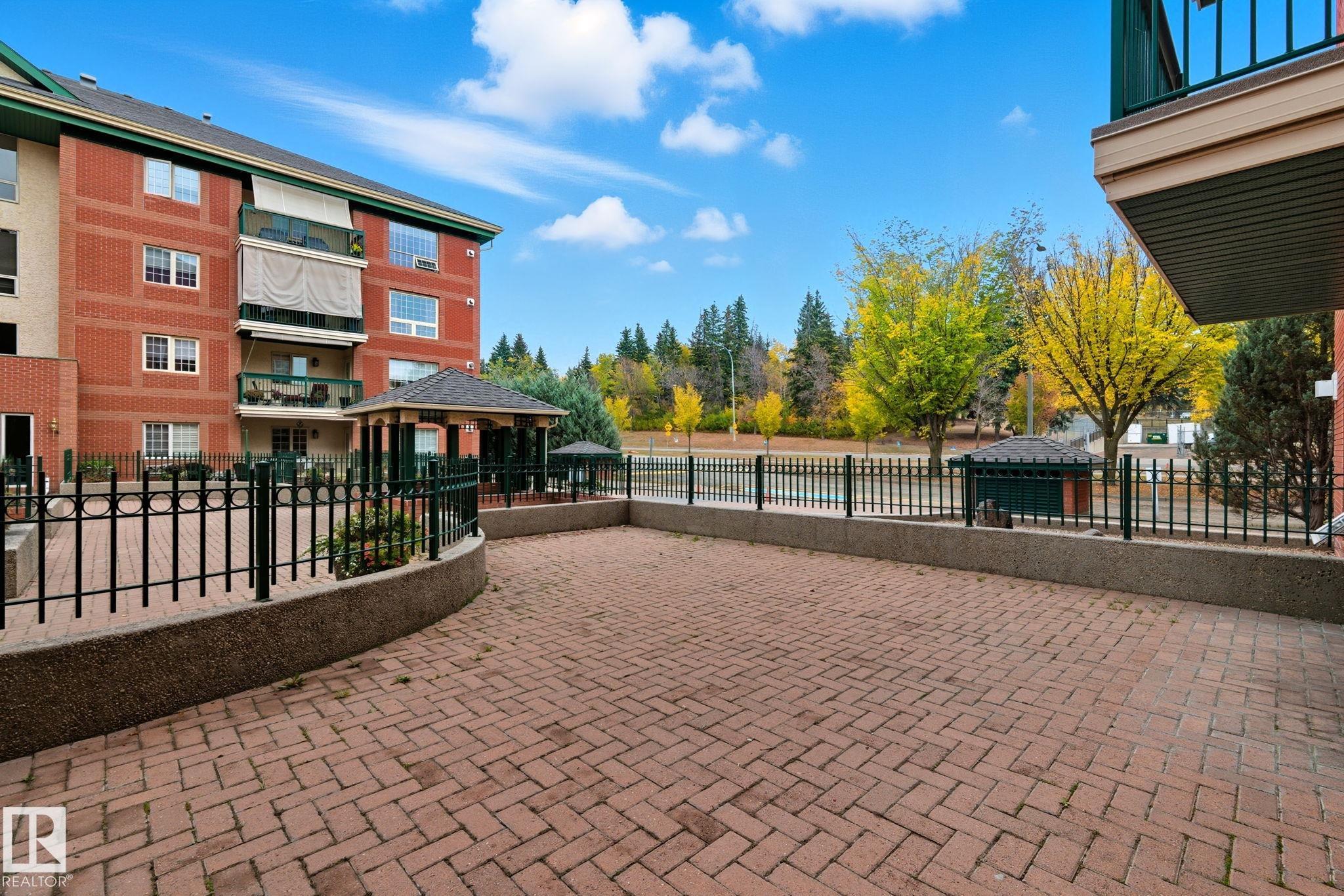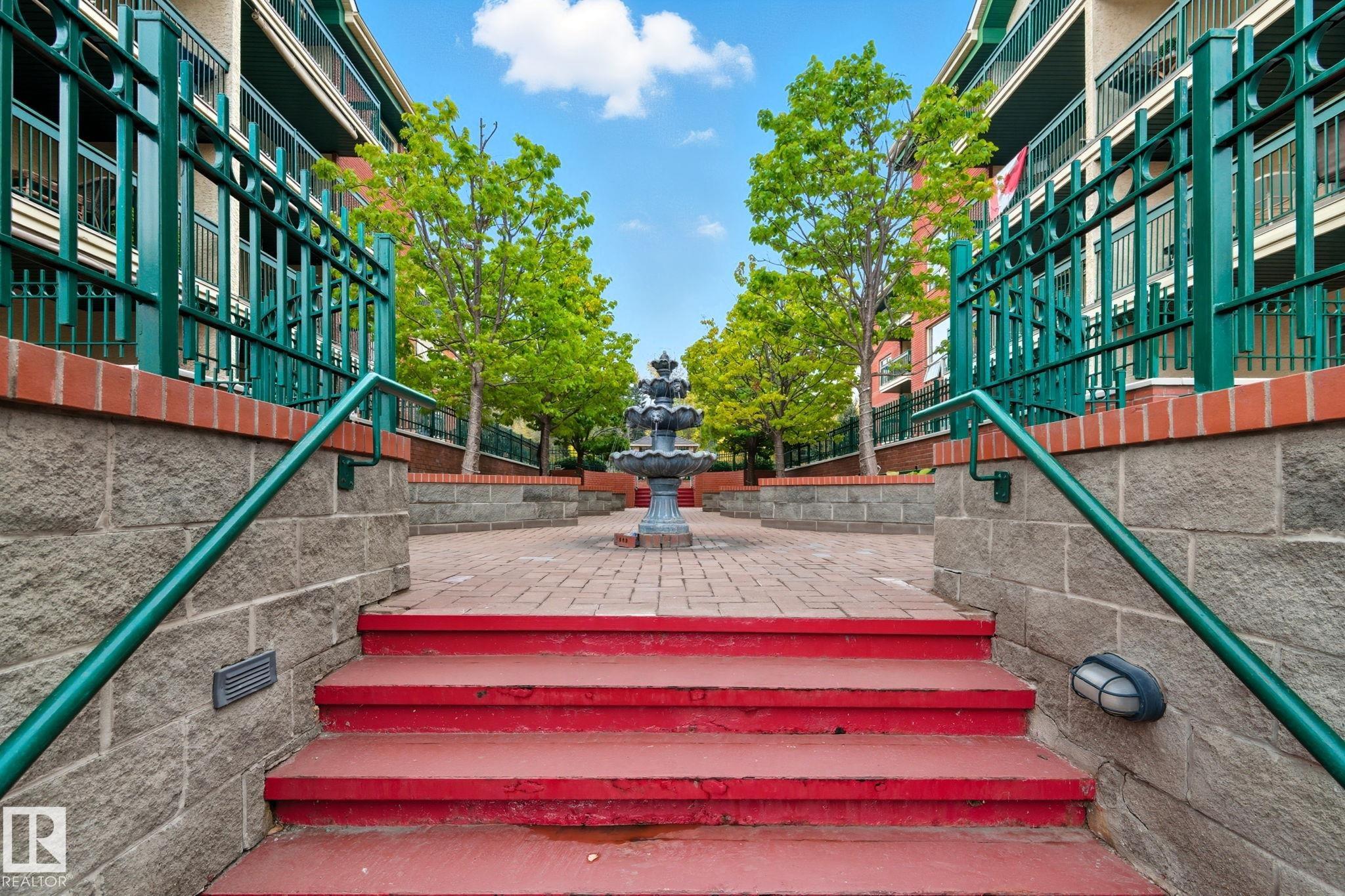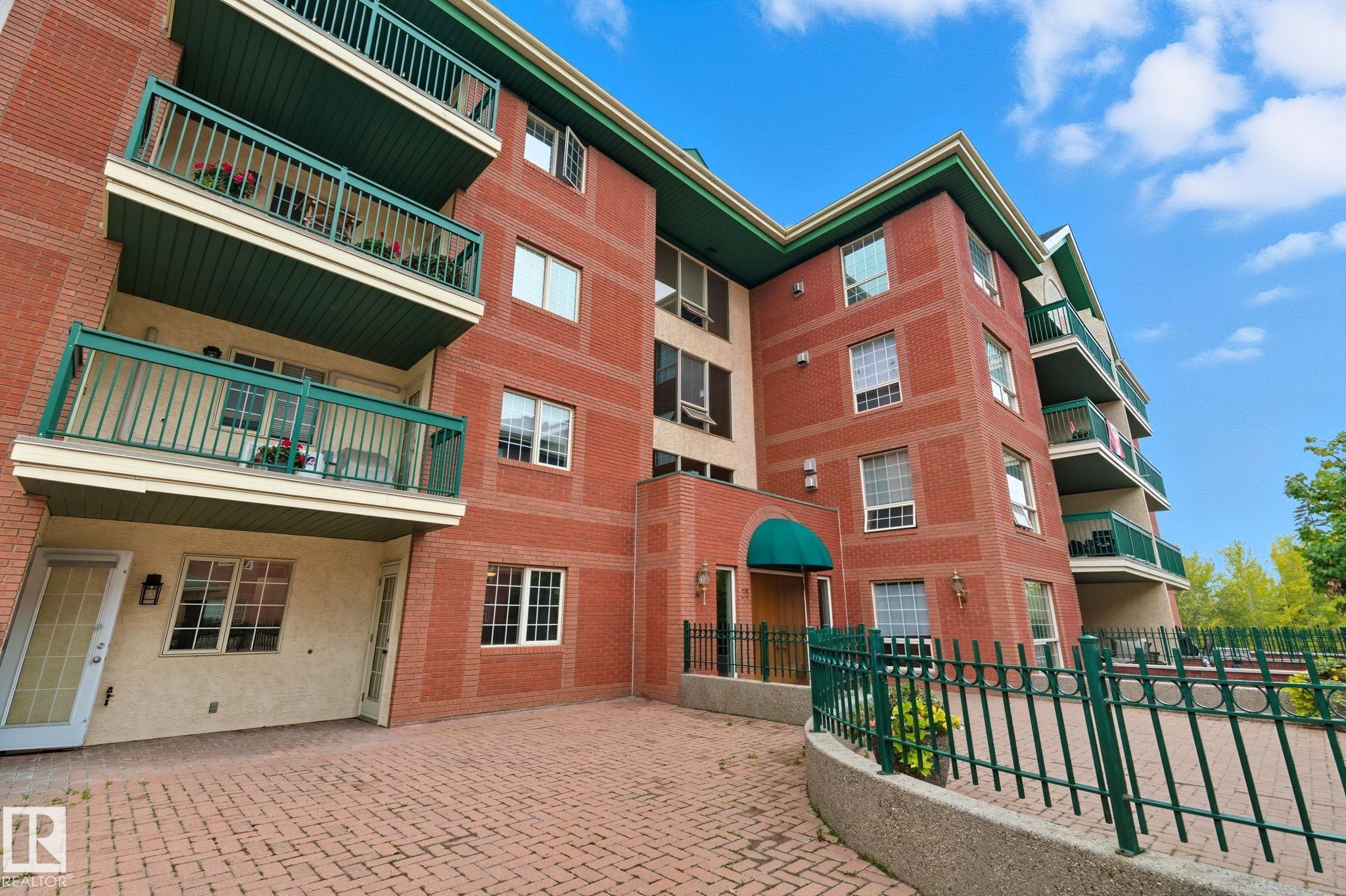 Location, location, location! This original-owner condo is ideally situated in beautiful Downtown St. Albert, offering unmatched walkability, convenience, and comfort. Inside, you'll find two generously sized bedrooms and two full bathrooms, including a spacious primary suite with its own private patio access. The second bedroom features a built-in Murphy bed, making it an excellent space for guests or a flexible home office. An in-suite laundry room with sink adds extra practicality. Enjoy the expansive east-facing patio overlooking the peaceful courtyard--perfect for morning coffee, relaxing afternoons, or entertaining friends. As a bright corner unit, the home boasts abundant natural light throughout its open-concept living space. The kitchen flows effortlessly into the large living area, complete with a cozy corner gas fireplace and direct access to the patio. Additional amenities include underground parking and a dedicated storage unit. This is comfort, convenience, and lifestyle all in one exception