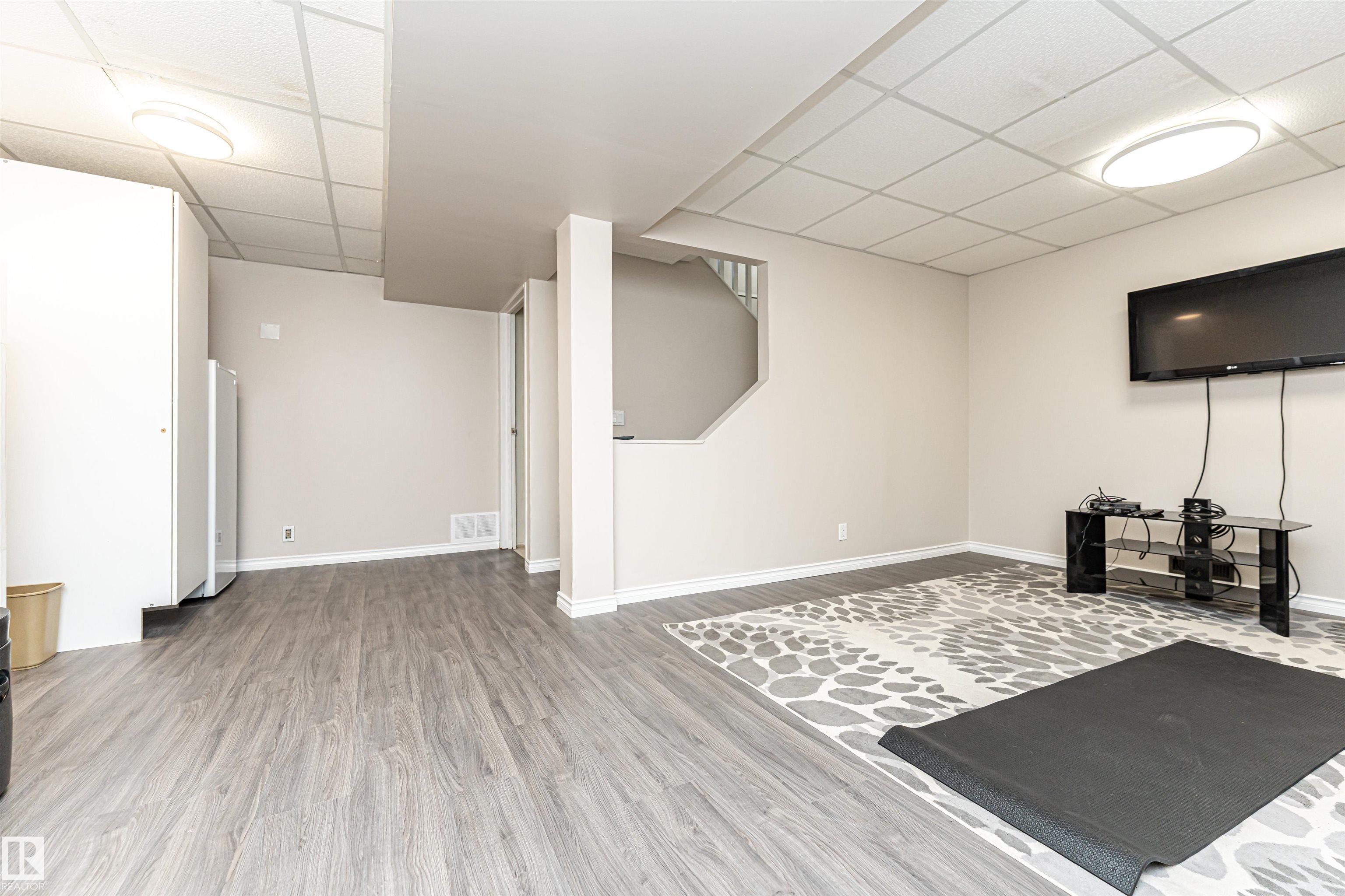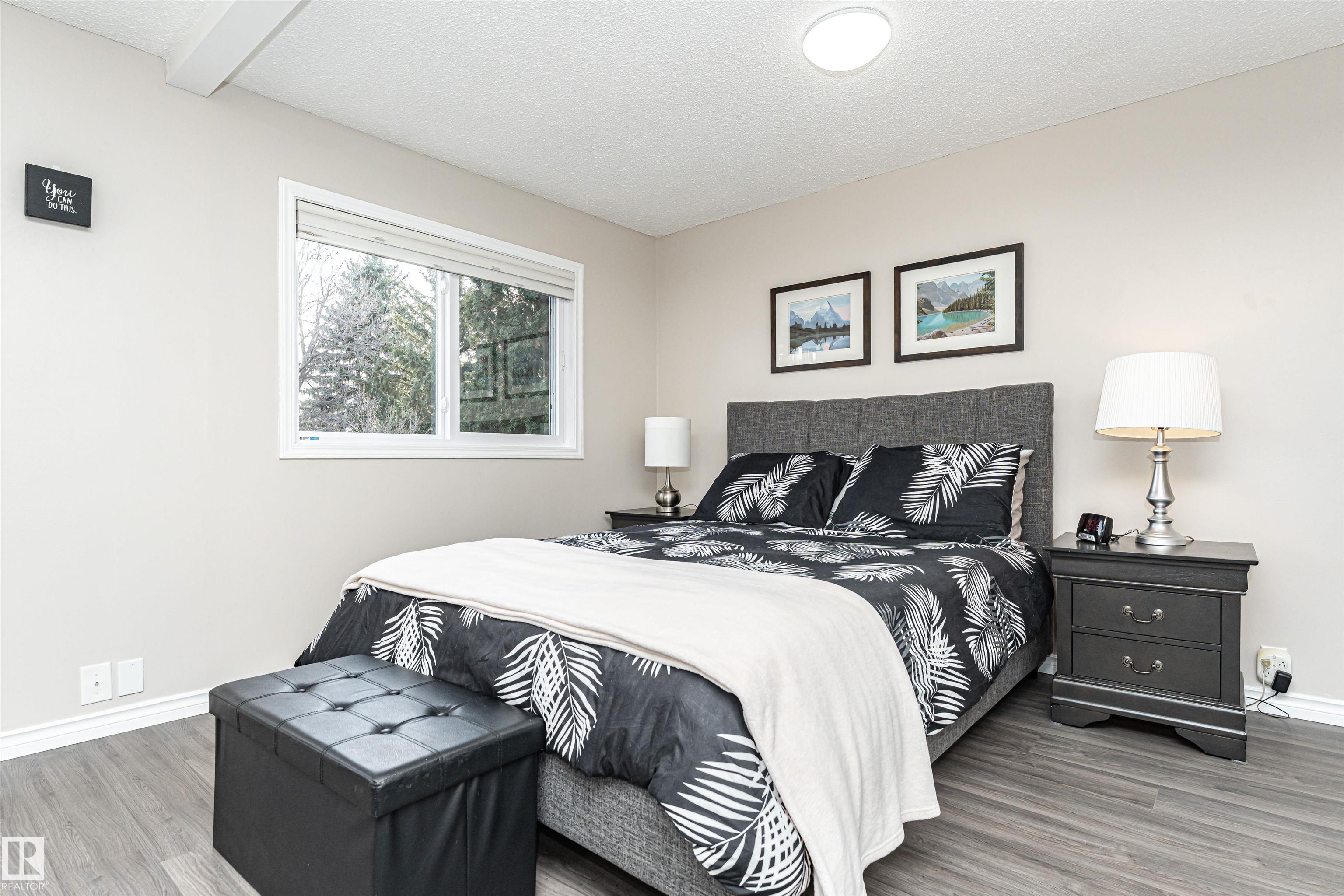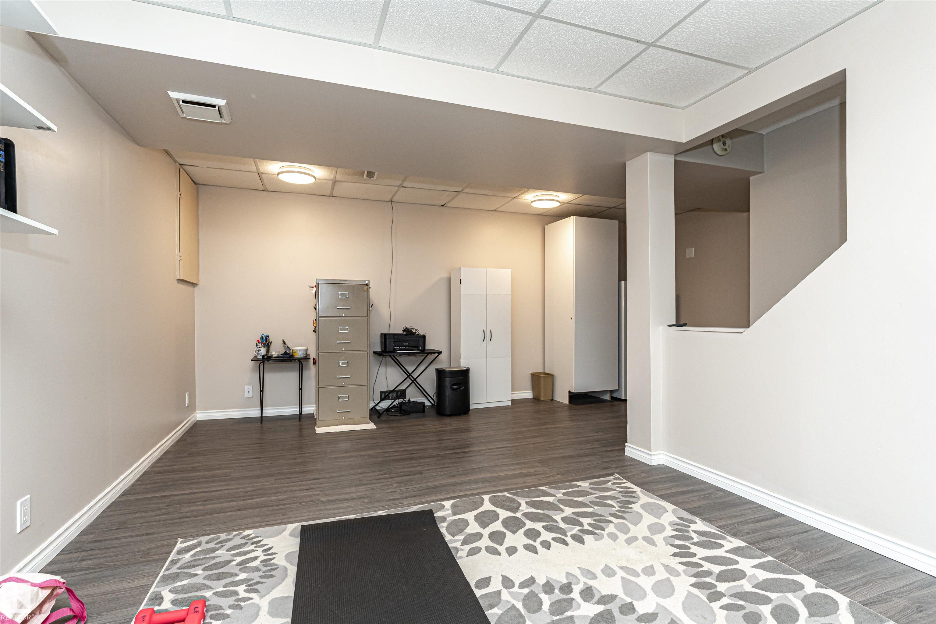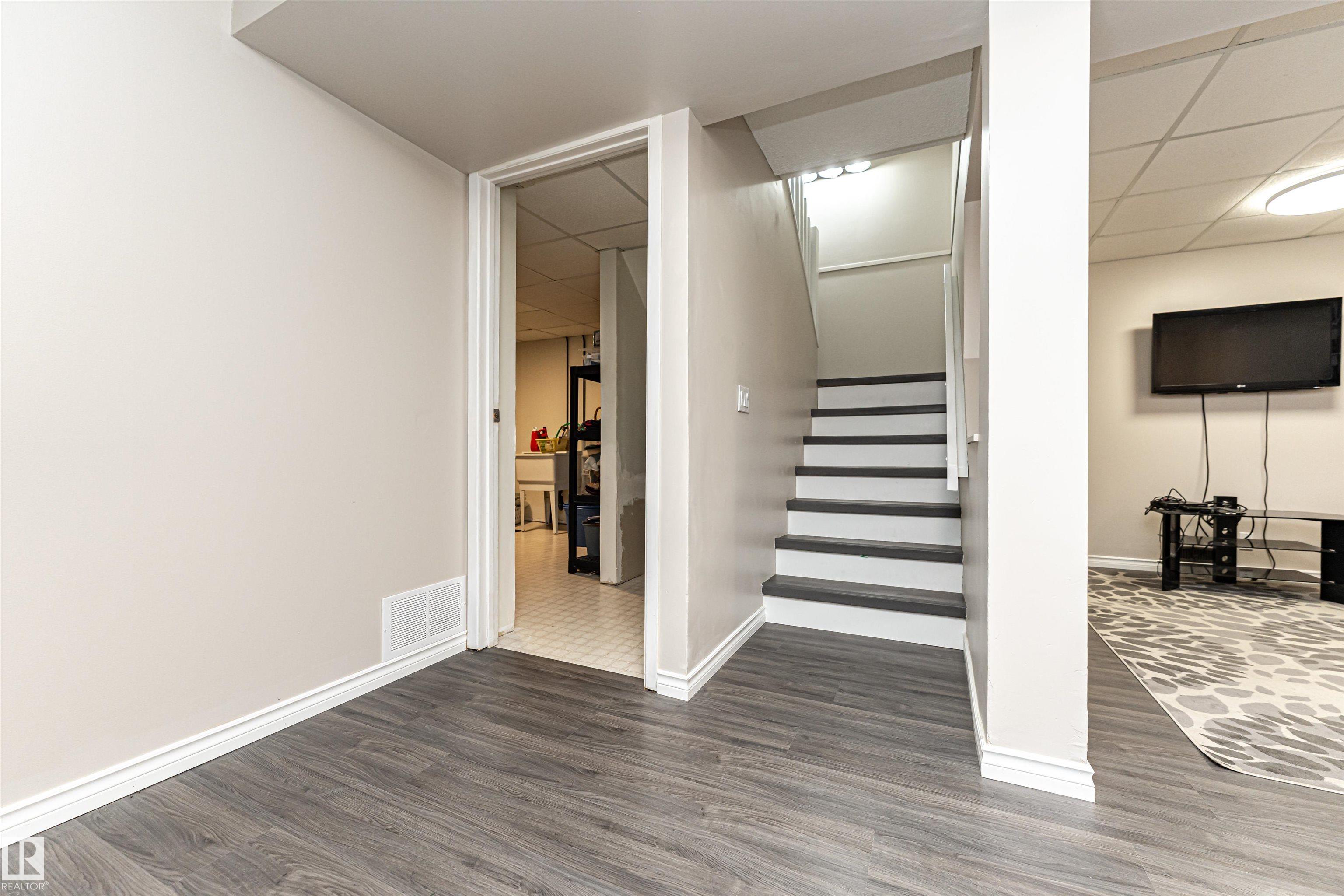 Welcome to 61 Forest Grove III, where style and comfort meet. Enjoy a beautifully renovated, sun-filled kitchen featuring ceiling-height soft-close white cabinetry, stainless steel appliances, a modern backsplash, and a generous island with ample storage. New laminate flooring flows throughout the home, including the fully finished lower level. The main floor offers an open-concept living/dining area and an updated « bath for your guests. Upstairs, you'll find two spacious bedrooms and a refreshed 4-pc bath. The primary suite is a relaxing retreat, easily fitting a king size bed and includes a large walk-in closet. The lower level adds a laundry room and a perfect media or workout space. Step outside to your private east-facing patio and yard, backing onto greenspace and mature trees, or stay cool inside with central A/C. The finishing touches are all new windows, a single garage and an extra parking pad. Close to schools, parks, and shopping and perfect for families and first-time buyers alike.