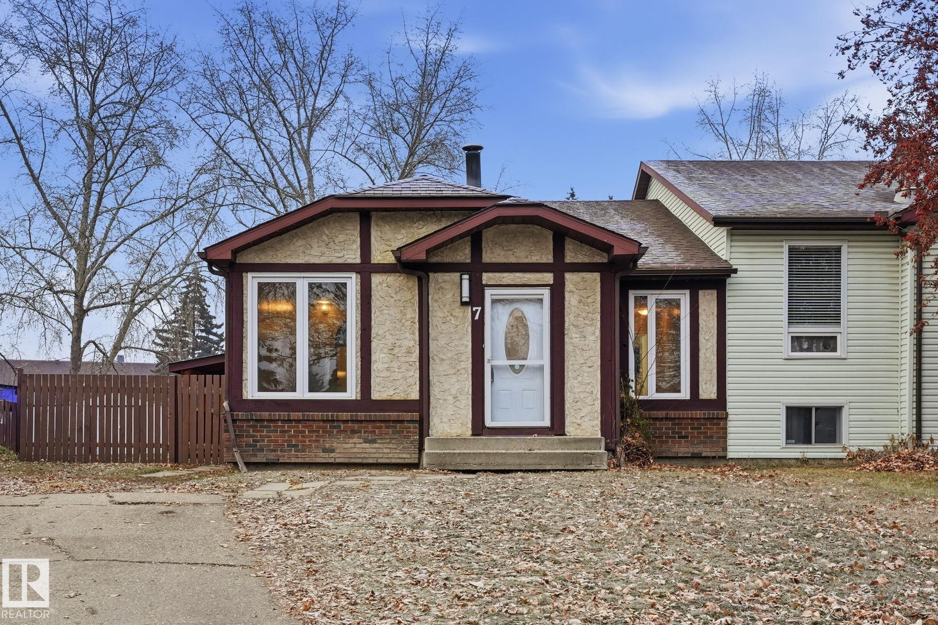 AMAZING PRICE with option for RENT-TO-OWN. This 5 Bedroom, 2 FULL bathroom, half-duplex located in St. Albert's Family friendly community of Grandin is tucked away on a quiet cul-de-sac is MOVE-IN-READY! RARELY will you find a property at this pice with such a MASSIVE BACK YARD. Enter the home into the cozy living room with WOOD BURNING FIREPLACE, open concept to the UPDATED KITCHEN with STAINLESS STEEL APPLIANCES. The main floor offers 3 bedrooms and a 4-PC Bathroom. The Basement is FULLY FINISHED with 2 more bedrooms, 3-PC Bathroom, Rec Room with Wet Bar and Large Storage/Workshop room. This property comes complete with a SEPARATE ENTRANCE TO THE BASEMENT, giving you the potential to add an income generating suite in the future (HOUSE HACKING 101). Located just off St. Albert Trail and only 2 mins to the ANTHONY HENDAY getting around town and into the city could not be more convenient. Take advantage of this oppurtunity to own a great home on a huge lot at an amazing price!