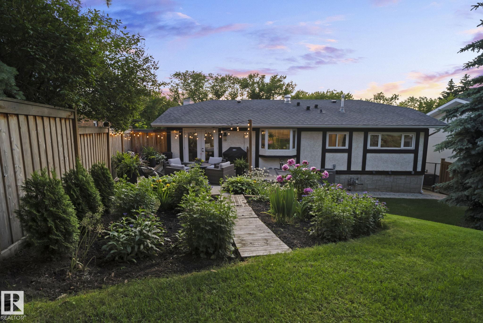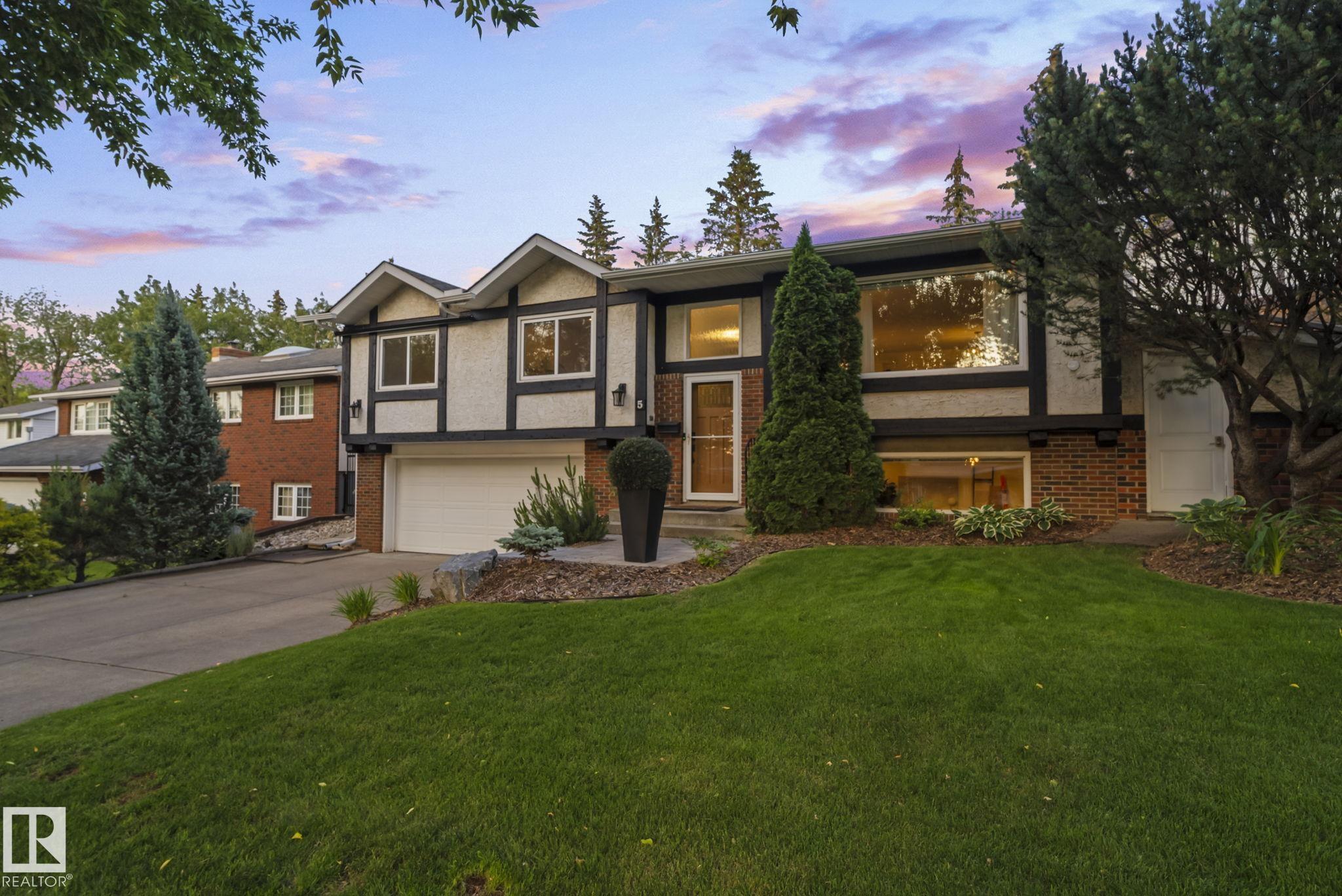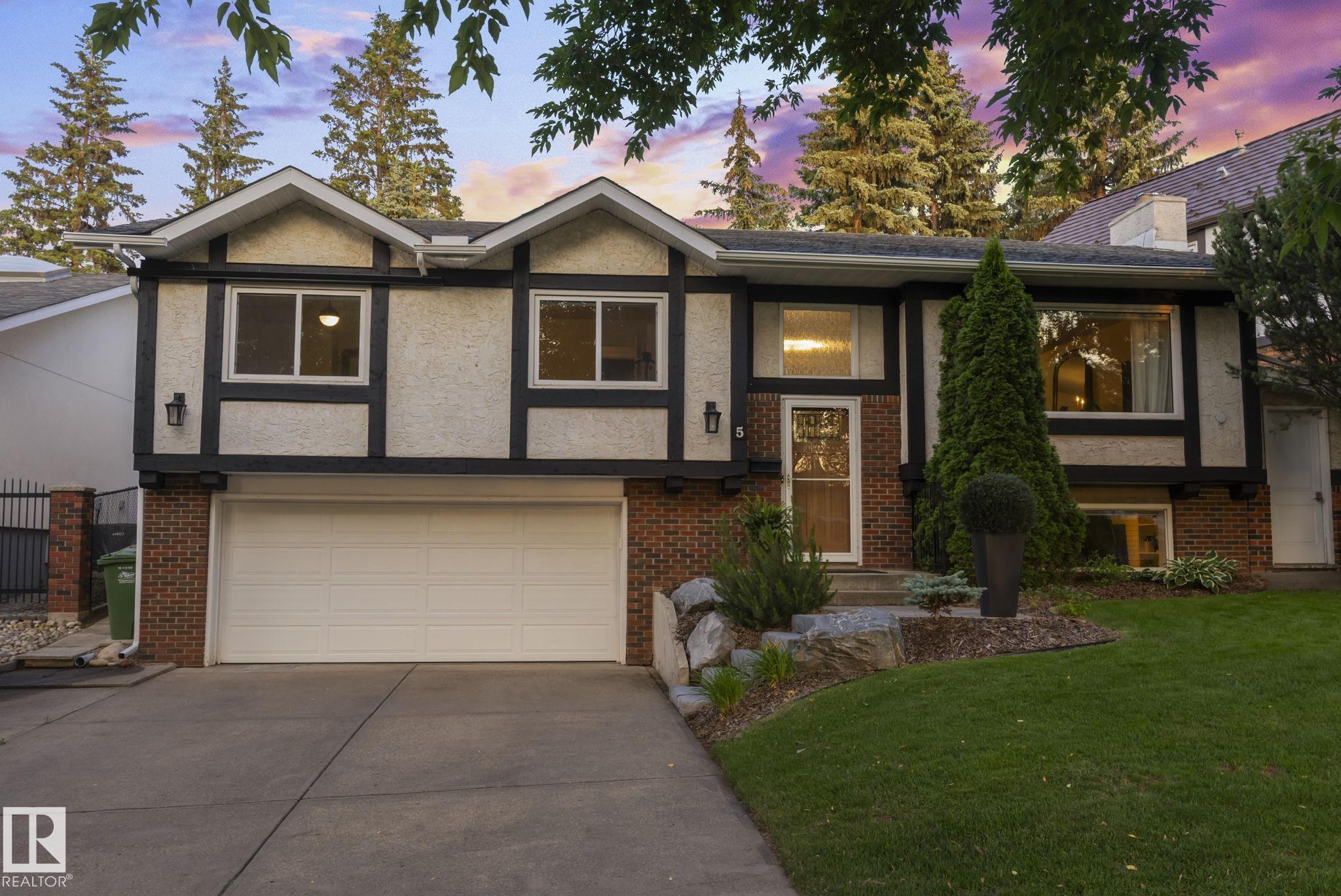 Set on a quiet, tree-lined street in the desirable Gardens neighbourhood of St. Albert, this meticulously renovated bi-level offers 4 bedrooms, 2.1 bathrooms, and 1,402 sq ft of thoughtfully designed living space, complete with a heated oversized double attached garage w/ epoxy flooring. The sun-filled main floor features an open living and dining area, highlighted by rich hardwood flooring & refined contemporary finishes. The fully renovated kitchen showcases quartz countertops, stainless steel appliances, a central island, & a charming bay window overlooking the private backyard. The finished lower level offers additional living space with a bright family room centered around an electric fireplace, fourth bedroom, laundry, and convenient 2-piece bath--perfect for families or guests. Enjoy the beautifully landscaped backyard complete with a hot tub, ideal for entertaining or relaxing. New furnace/AC (2024), HWT & shingles (2020), newer windows. The perfect family home in the desirable Gardens community.
