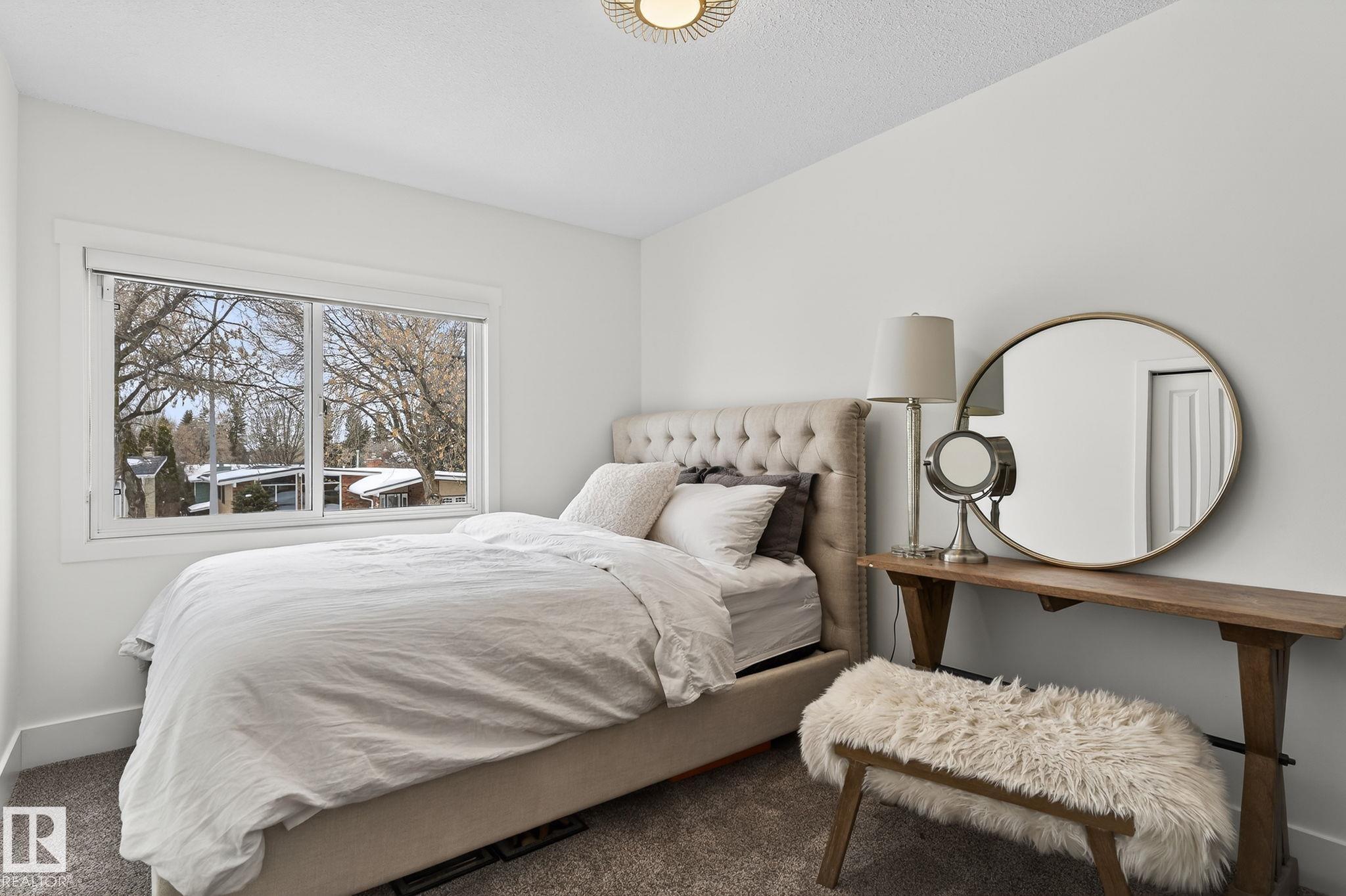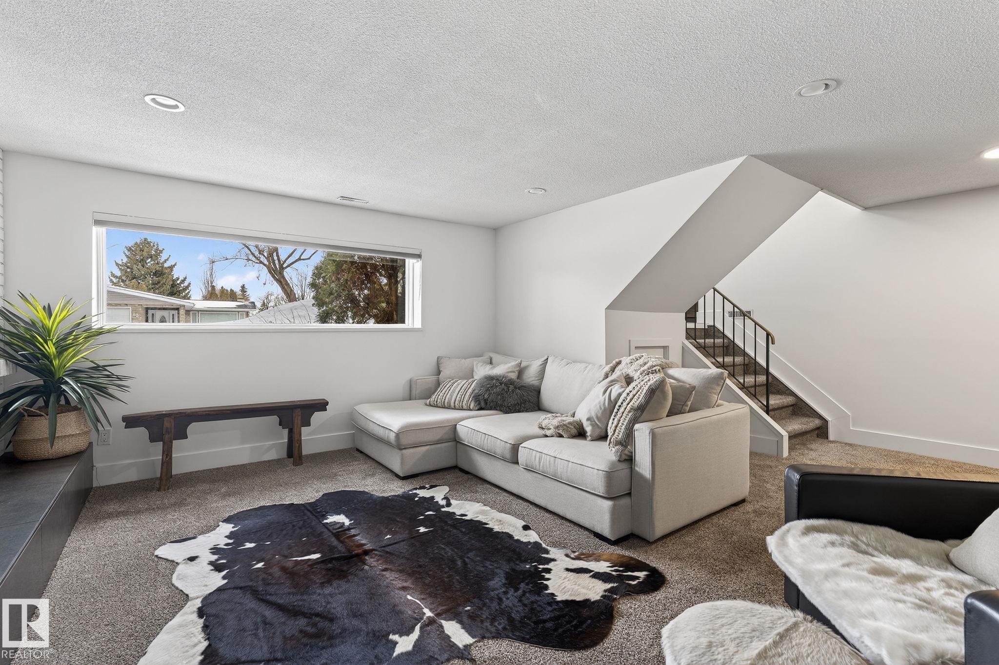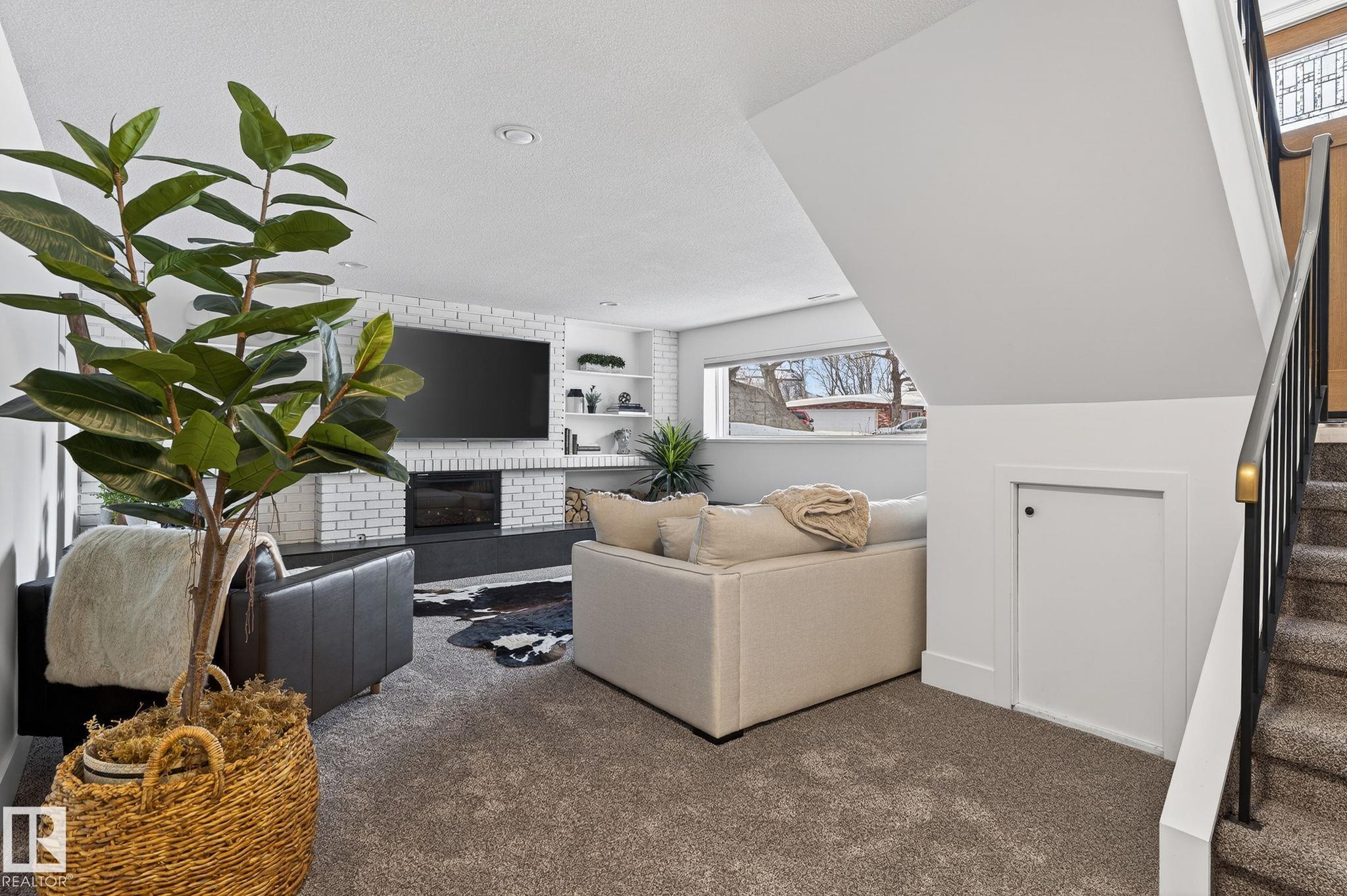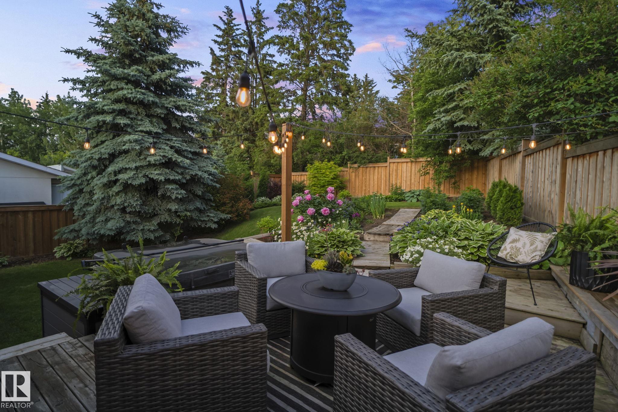 Set on a quiet, tree-lined street in the desirable Gardens neighbourhood of St. Albert, this meticulously renovated bi-level offers 4 bedrooms, 2.1 bathrooms, and 1,402 sq ft of thoughtfully designed living space, complete with a heated oversized double attached garage w/ epoxy flooring. The sun-filled main floor features an open living and dining area, highlighted by rich hardwood flooring & refined contemporary finishes. The fully renovated kitchen showcases quartz countertops, stainless steel appliances, a central island, & a charming bay window overlooking the private backyard. The finished lower level offers additional living space with a bright family room centered around an electric fireplace, fourth bedroom, laundry, and convenient 2-piece bath--perfect for families or guests. Enjoy the beautifully landscaped backyard complete with a hot tub, ideal for entertaining or relaxing. New furnace/AC (2024), HWT & shingles (2020), newer windows. The perfect family home in the desirable Gardens community.
