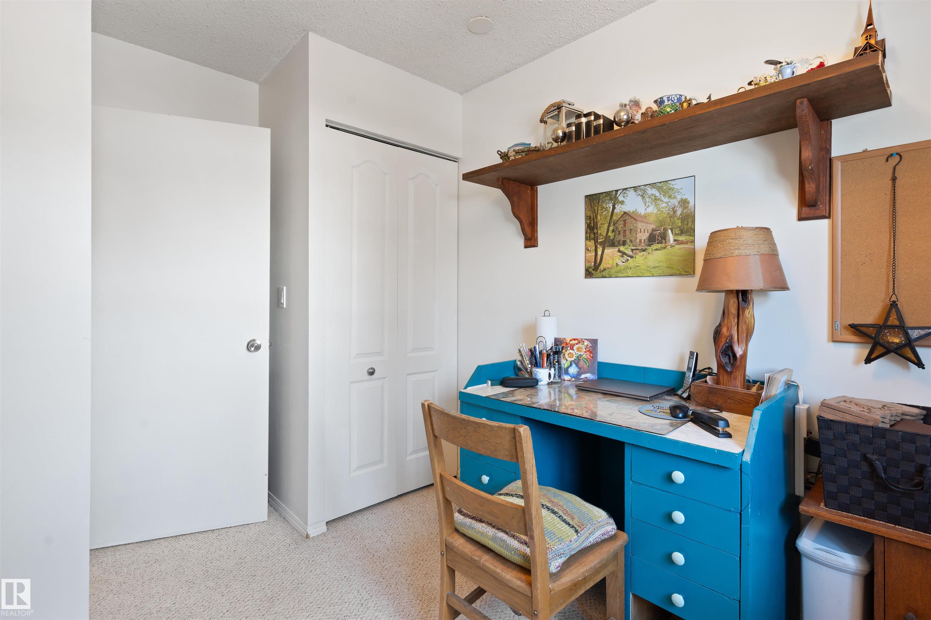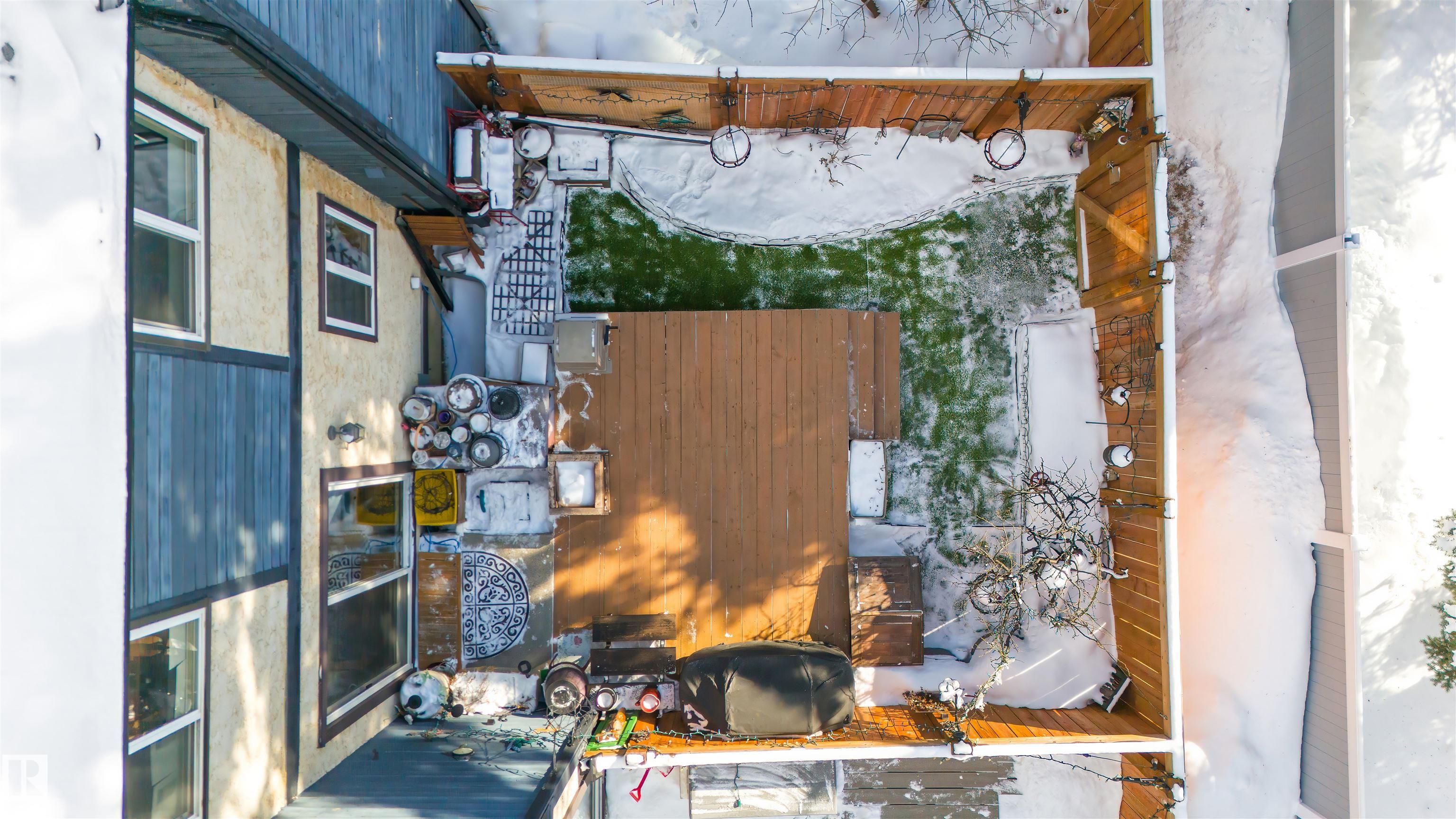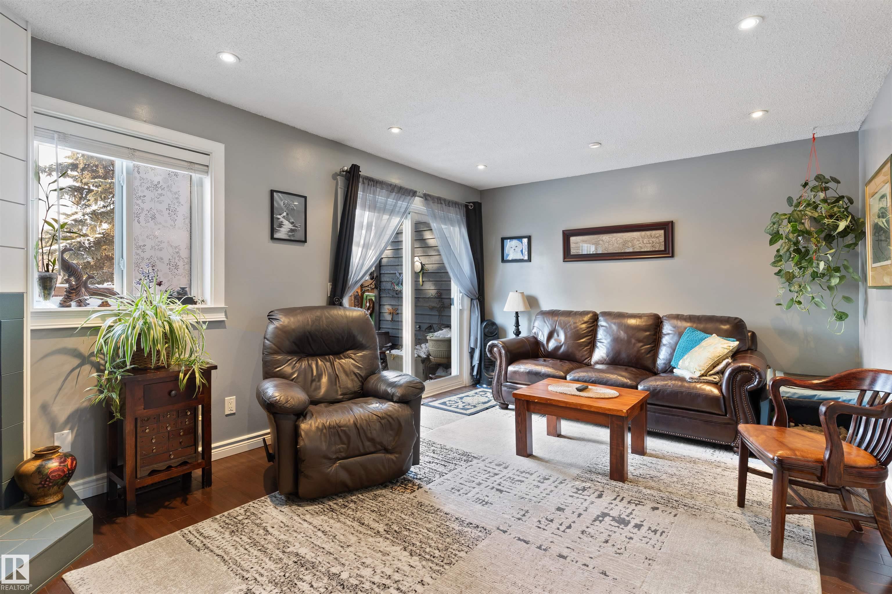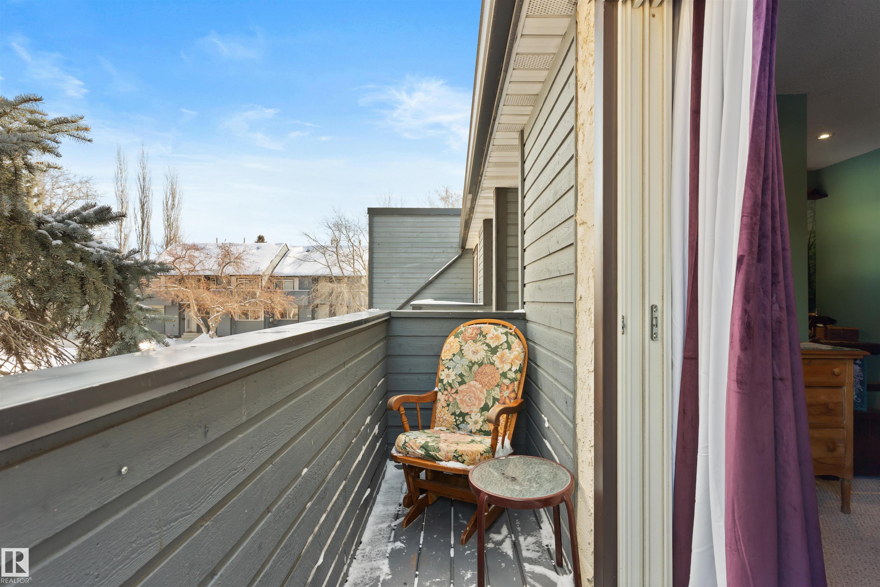 Welcome to this meticulously maintained two-story townhome nestled in the sought-after community of Grandin. Upon entering this charming home, you are greeted by a warm and inviting layout. The kitchen features two-tone cabinetry, a double oven for all your cooking needs, and a new stainless steel fridge. The spacious living room features a wood-burning fireplace and patio doors that lead to a spacious deck and fully fenced yard, complete with low-maintenance astroturf. Upstairs, you'll find three spacious bedrooms. The primary includes a cozy nook and a private balcony. The bathroom is finished with a rain shower for a spa-like touch. The basement provides plenty of storage, laundry, and a versatile flex space, perfect for guests or entertaining. Enjoy two powered parking stalls conveniently located directly in front of the unit. This well-maintained complex is situated close to parks, walking trails, and amenities, with quick access to Anthony Henday and 170th Street.