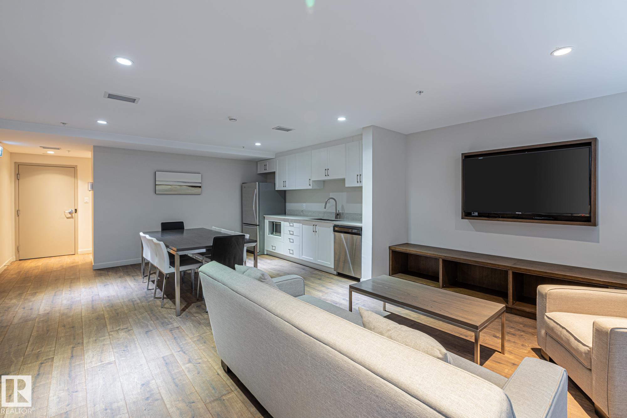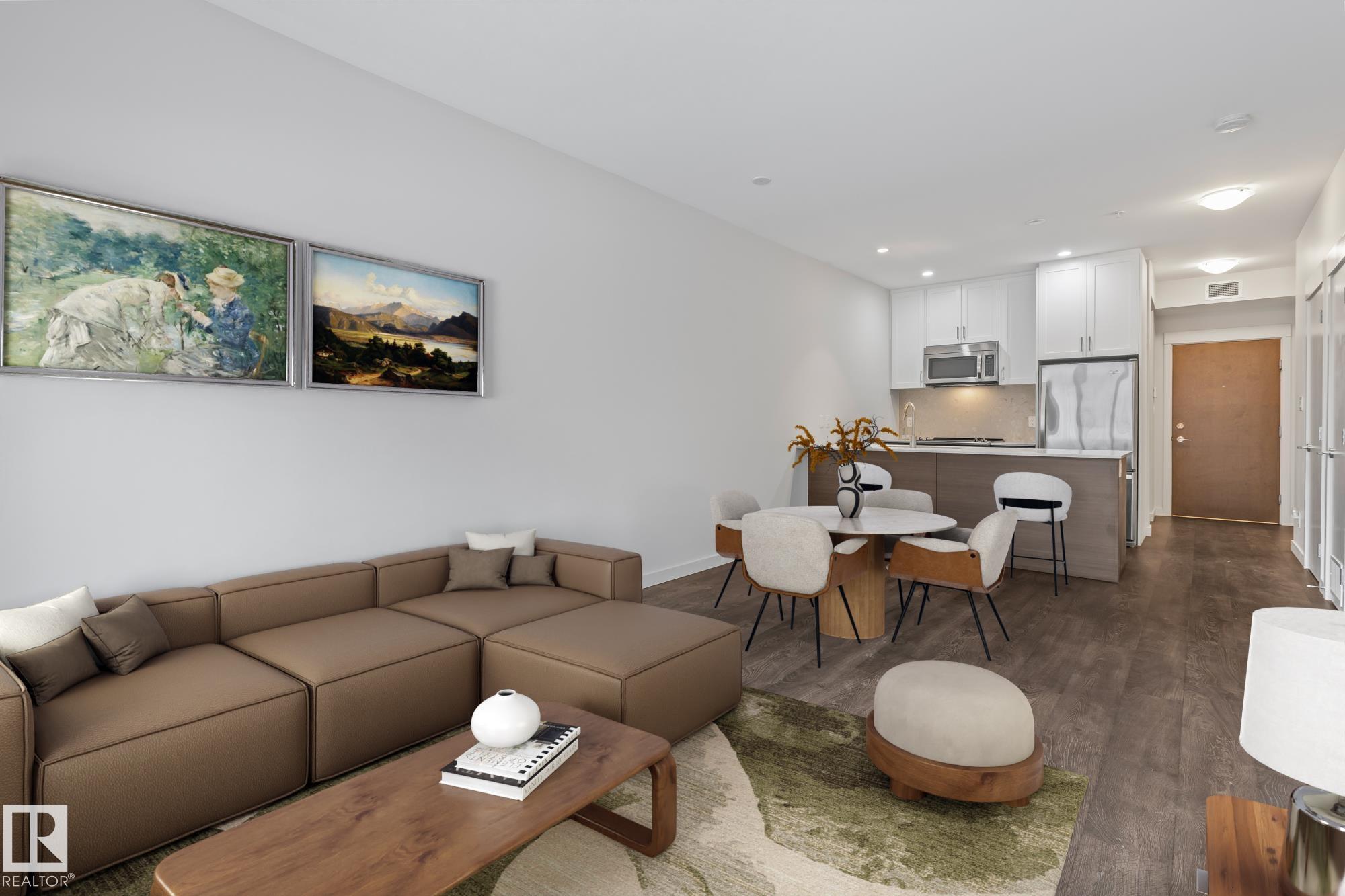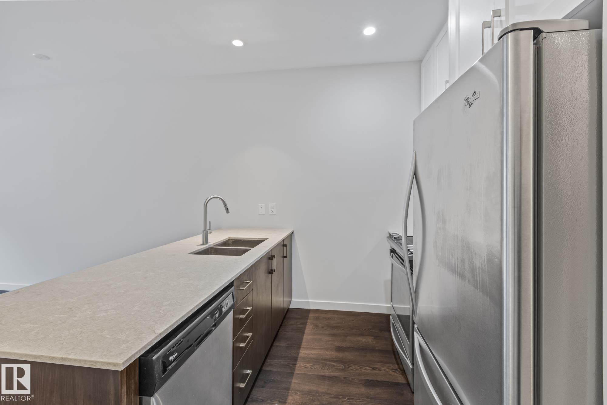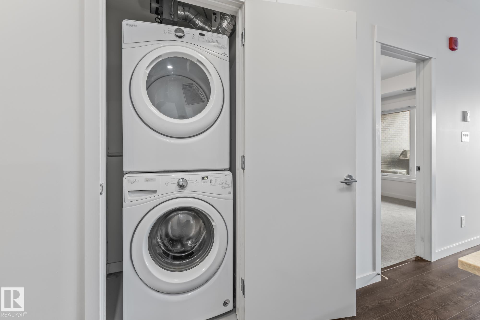 Main floor 1 bedroom, 1 bathroom condo in a prime St. Albert location just steps from Lions Park, the Sturgeon River trails, Farmers Market, and Downtown. This bright unit features 9 ft ceilings, quartz countertops, peninsula island, walk-through closet, in-suite laundry, and air conditioning. The patio door acts as your own private entrance for easy access. Includes 1 titled parking stall and storage cage. Pet friendly building with fitness room and party/entertainment room.