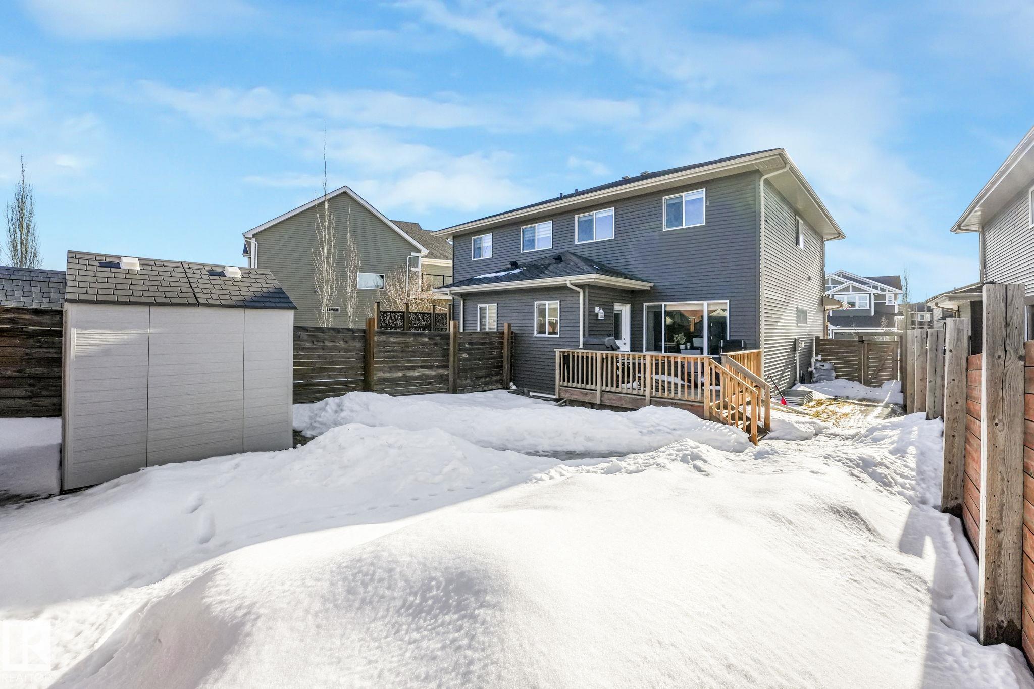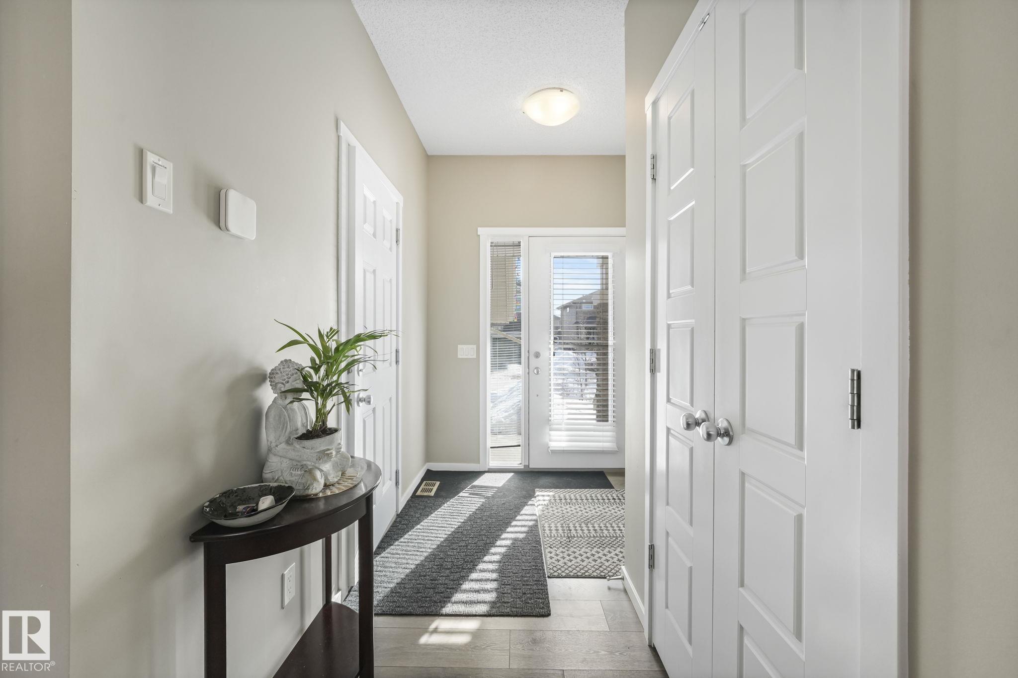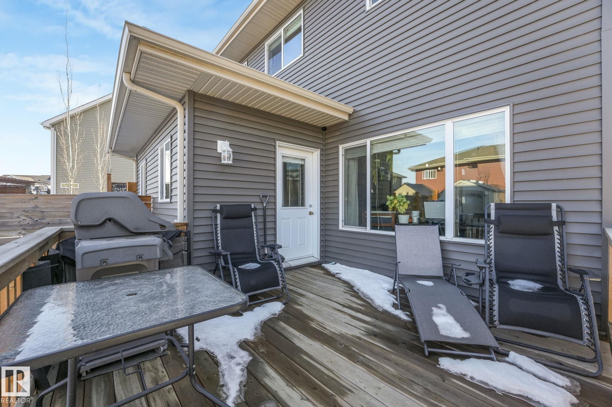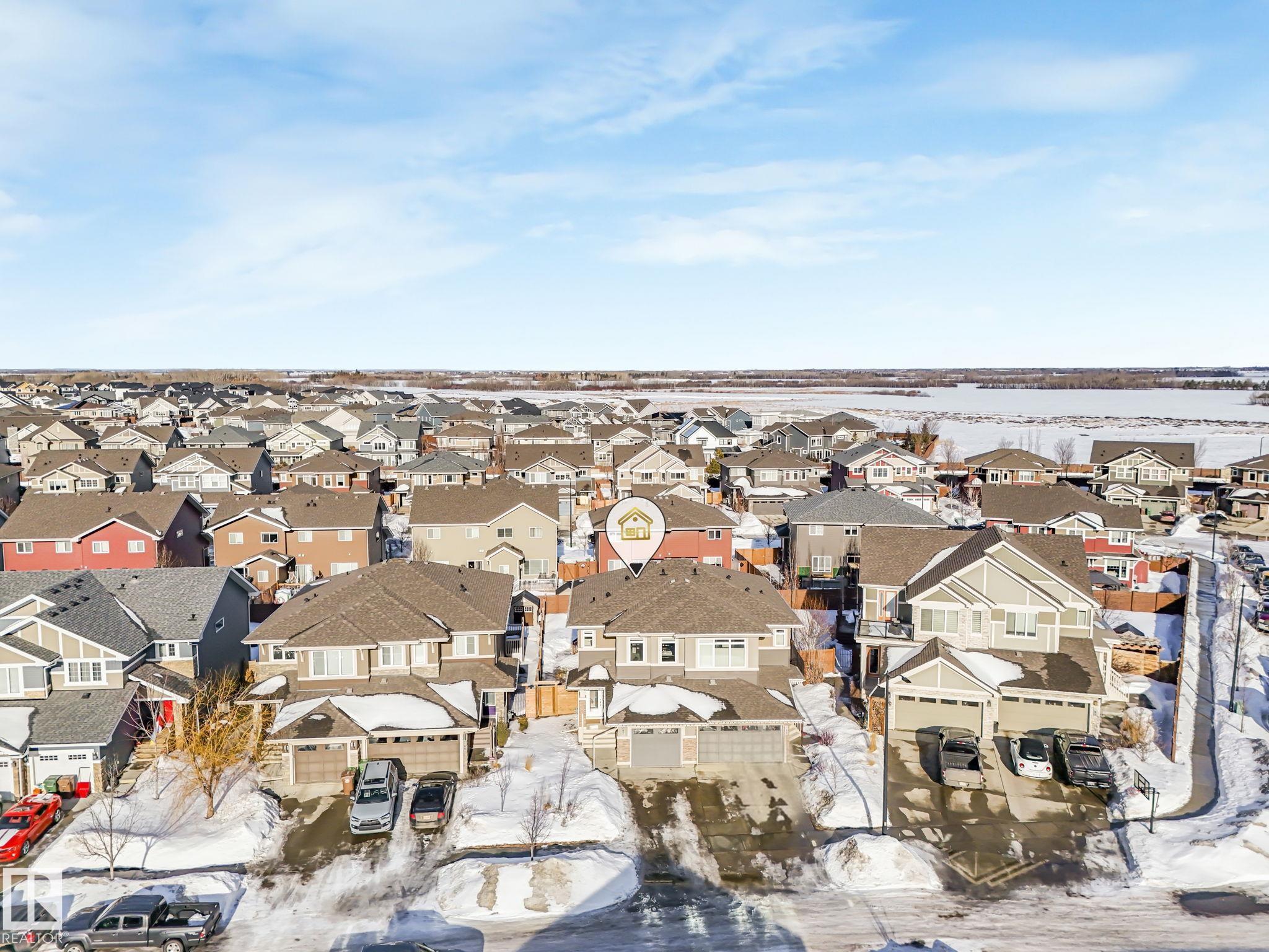 This beautifully maintained Daytona Homes half duplex offers +2100sqft of stylish living space in St. Albert's premier beach community. The bright, open main floor features a modern kitchen with ample cabinetry, pantry, and generous counter space flowing into the dining area and bright living room. A convenient half bath and rear entry with backyard access complete the main level. Upstairs offers 3 comfortable bedrooms, including a spacious primary retreat with walk-in closet and 3-piece ensuite, plus a full bathroom and convenient upper-floor laundry. The fully finished basement adds great flexibility with a 4th bedroom, another full bathroom, and two additional living spaces, perfect for relaxing or a home office. Outside, the yard is fully landscaped and fenced with a deck to enjoy summer evenings. Jensen Lakes amenities include a park, private beach with winter skating &ice fishing, BBQ area, new tennis courts coming this year, plus plenty of community events that make it easy to enjoy the outdoors!
