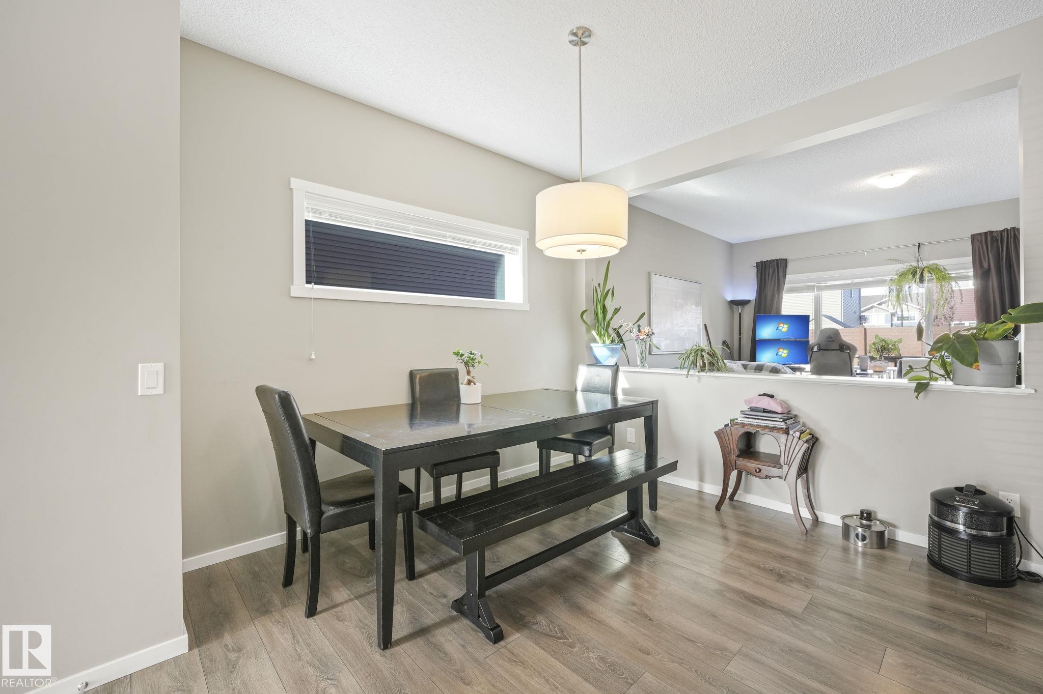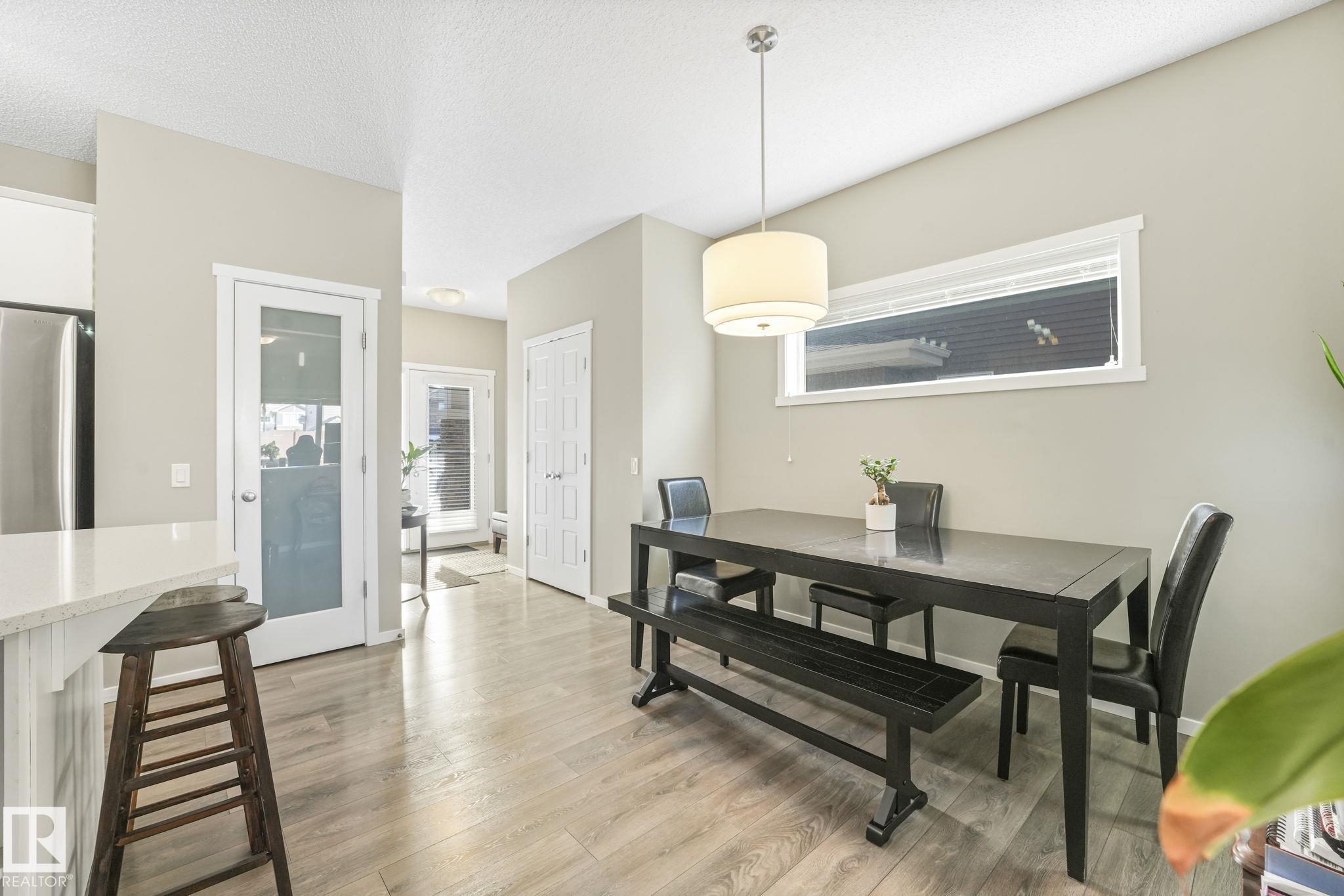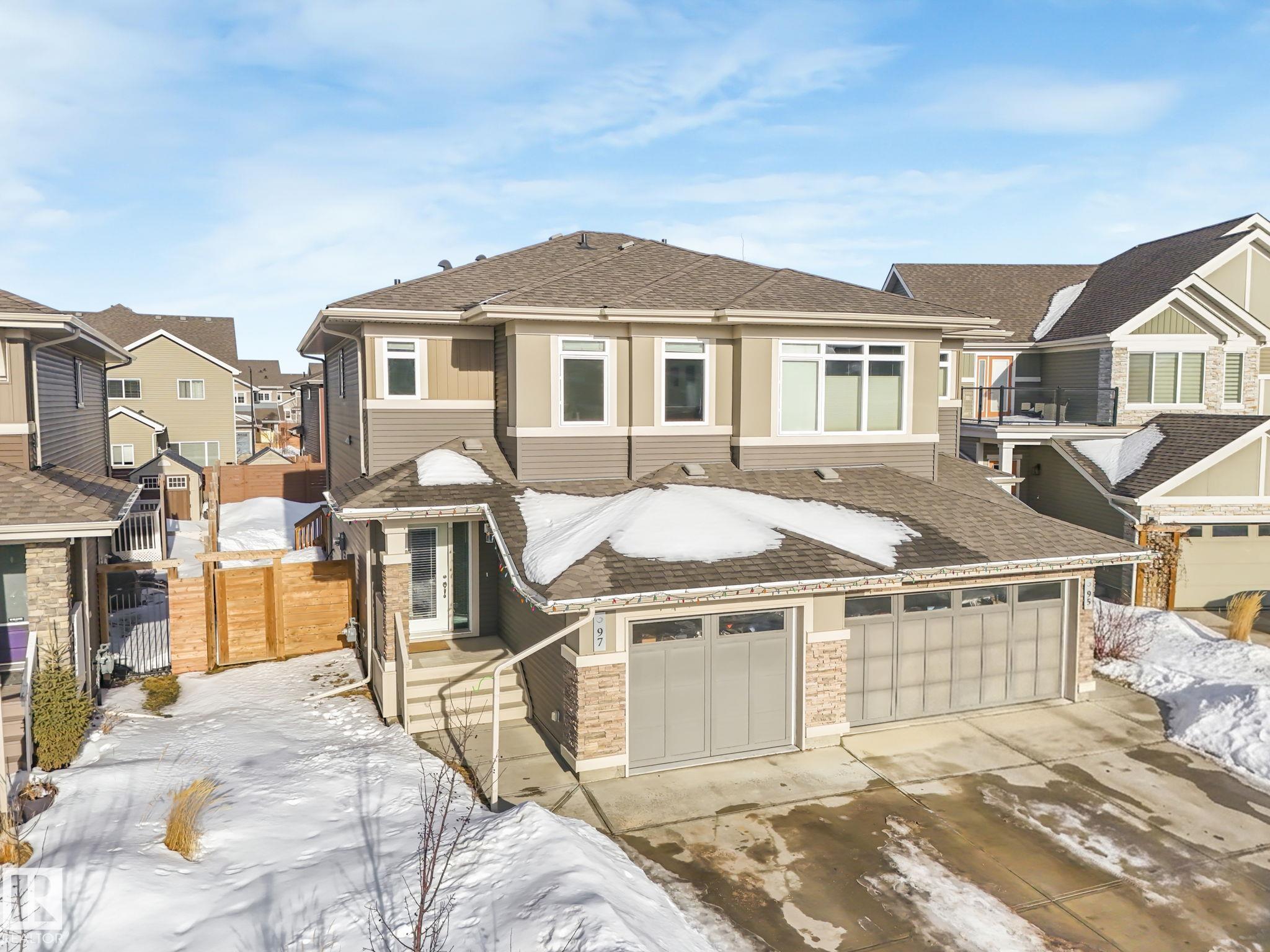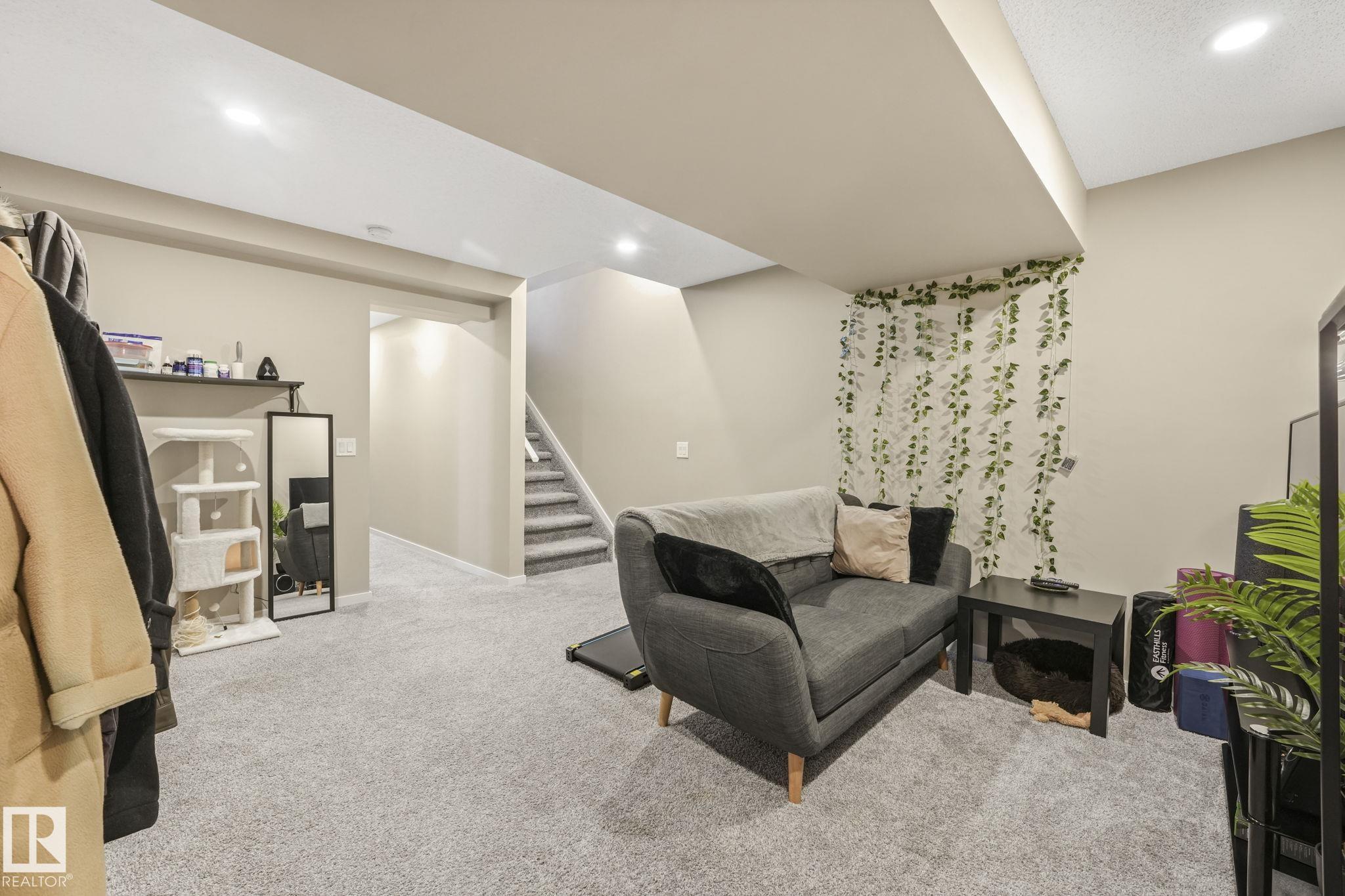 This beautifully maintained Daytona Homes half duplex offers +2100sqft of stylish living space in St. Albert's premier beach community. The bright, open main floor features a modern kitchen with ample cabinetry, pantry, and generous counter space flowing into the dining area and bright living room. A convenient half bath and rear entry with backyard access complete the main level. Upstairs offers 3 comfortable bedrooms, including a spacious primary retreat with walk-in closet and 3-piece ensuite, plus a full bathroom and convenient upper-floor laundry. The fully finished basement adds great flexibility with a 4th bedroom, another full bathroom, and two additional living spaces, perfect for relaxing or a home office. Outside, the yard is fully landscaped and fenced with a deck to enjoy summer evenings. Jensen Lakes amenities include a park, private beach with winter skating &ice fishing, BBQ area, new tennis courts coming this year, plus plenty of community events that make it easy to enjoy the outdoors!